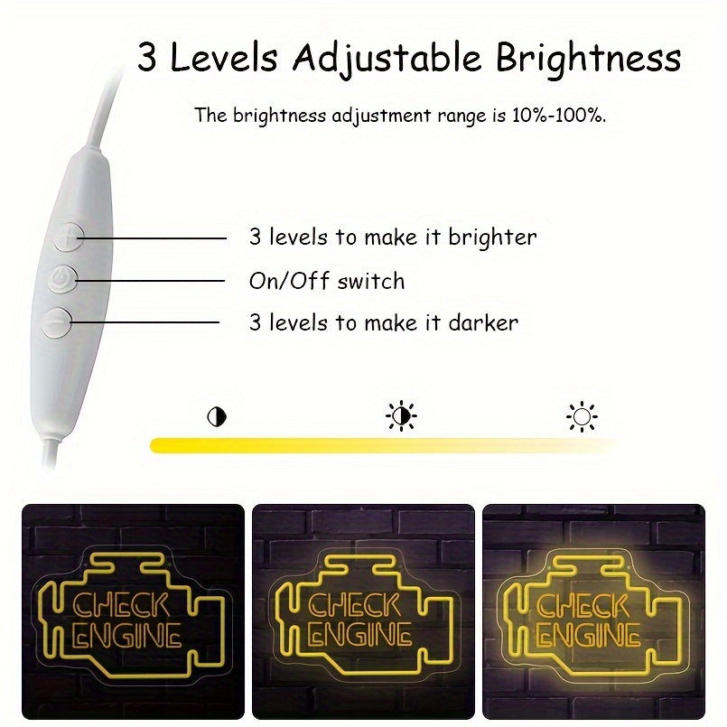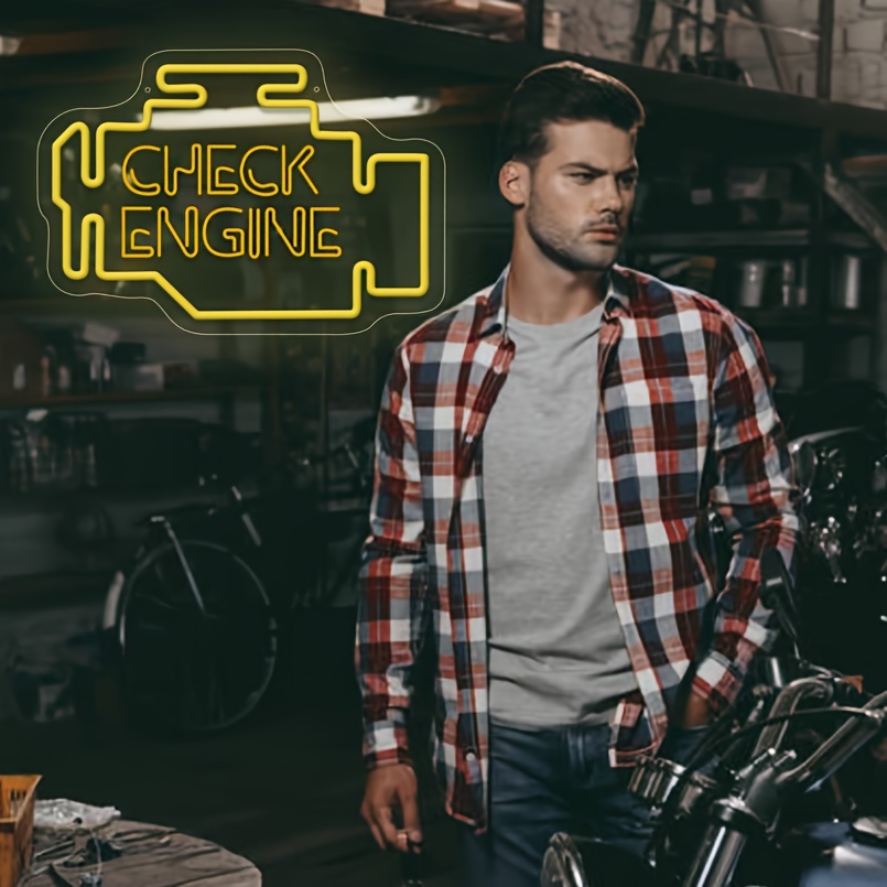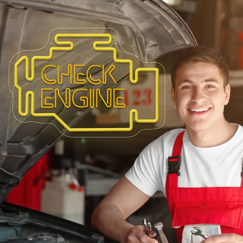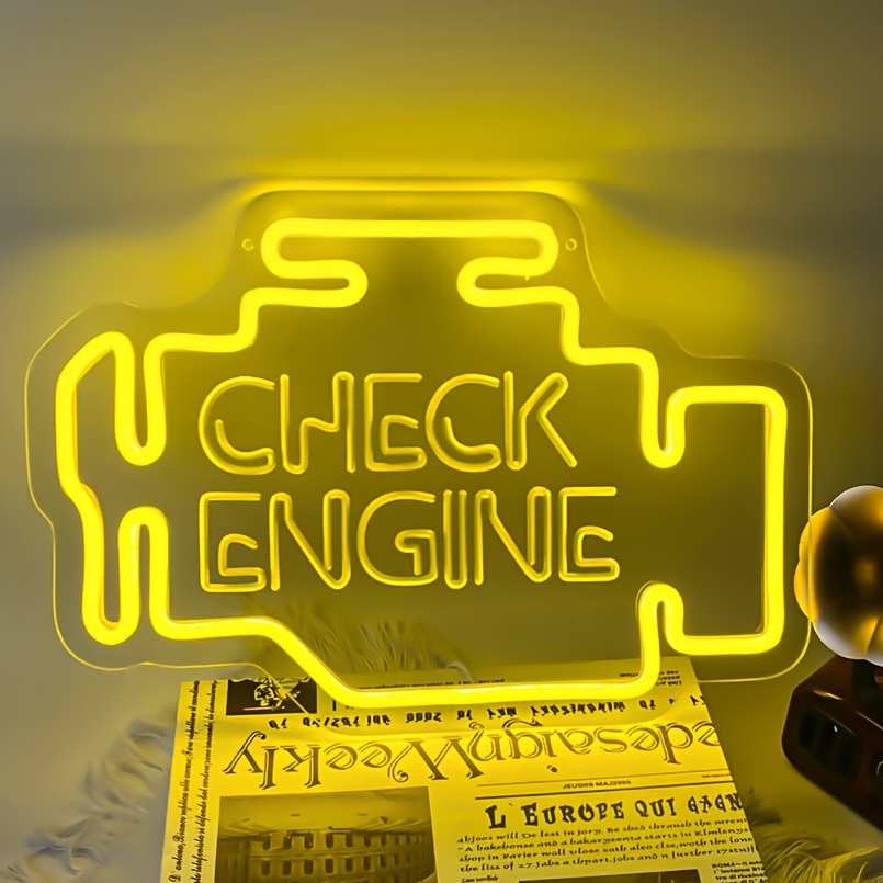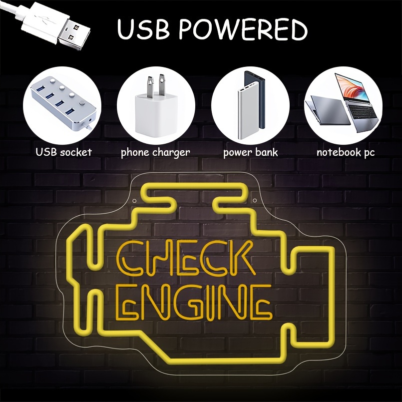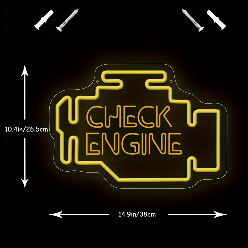 1 pc Check Engine LED Neon Sign, 3D Engraving, Ambient Wall Decoration Neon Sign for Garage, Salon, Bar, Car Theme Party, Office, Home, Club, Living Room, Bedroom and Home Wall Decoration, Preferred as Birthday, Holiday Gift for Friends and Family, USB Powered Illuminated Sign Hanging Unit, 5V USB Power Supply