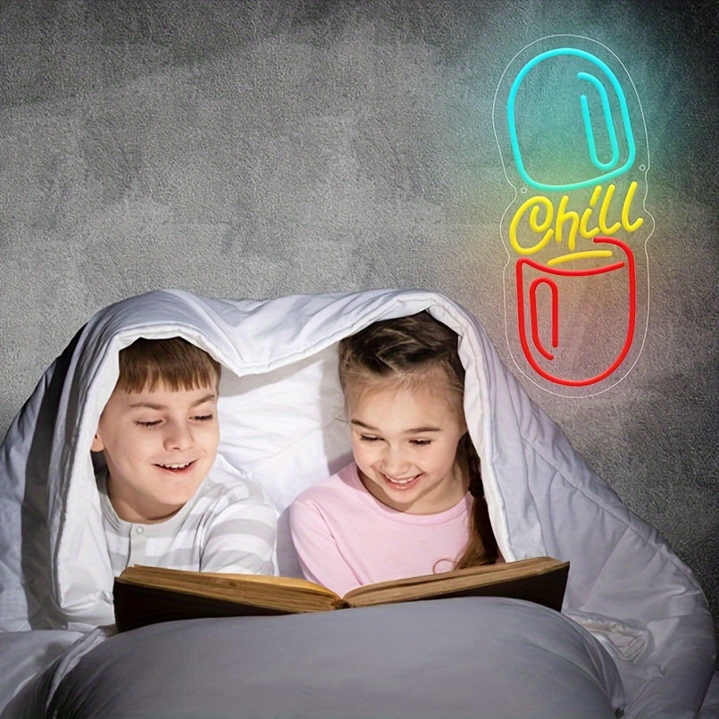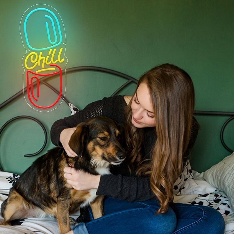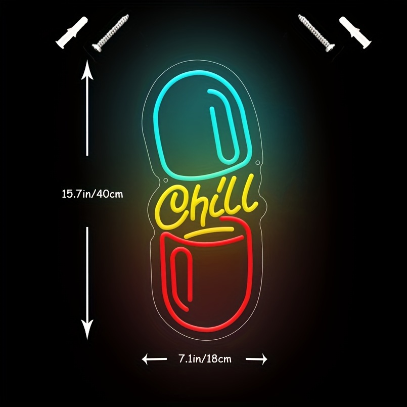 1 pc chill pill LED neon sign, ambient wall decor neon sign for party, living room, office, bar, club, bedroom and home wall decor neon sign, 5 V USB power supply