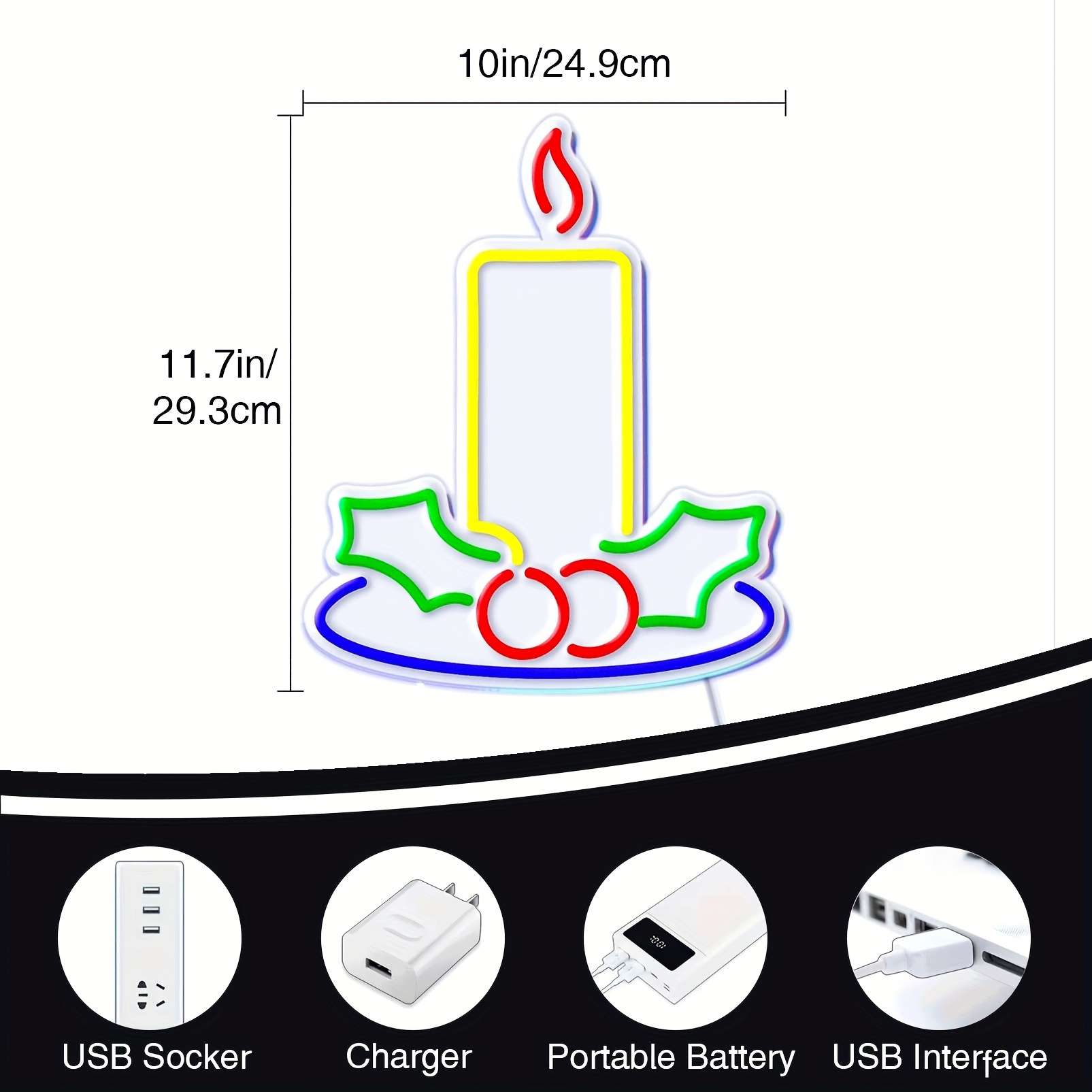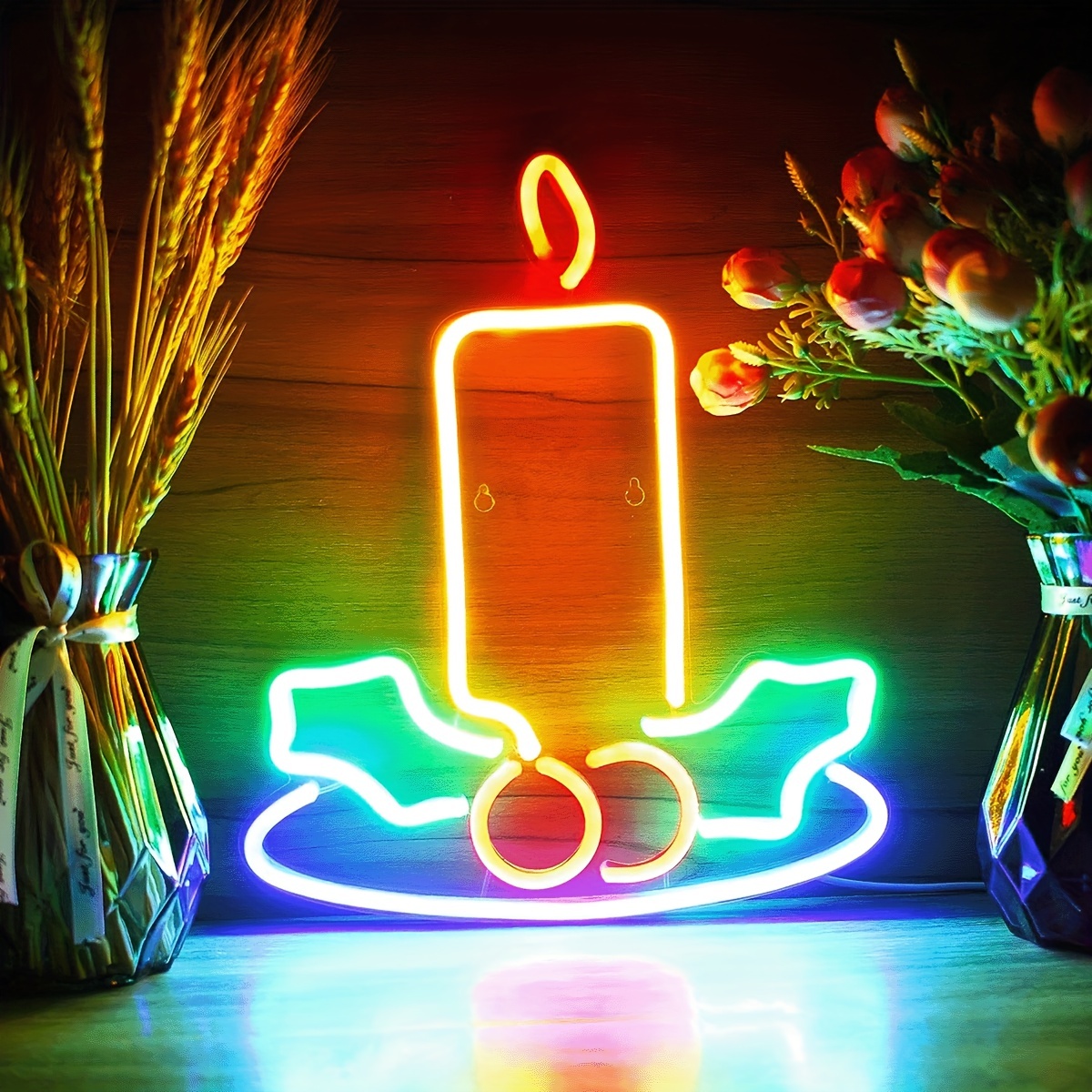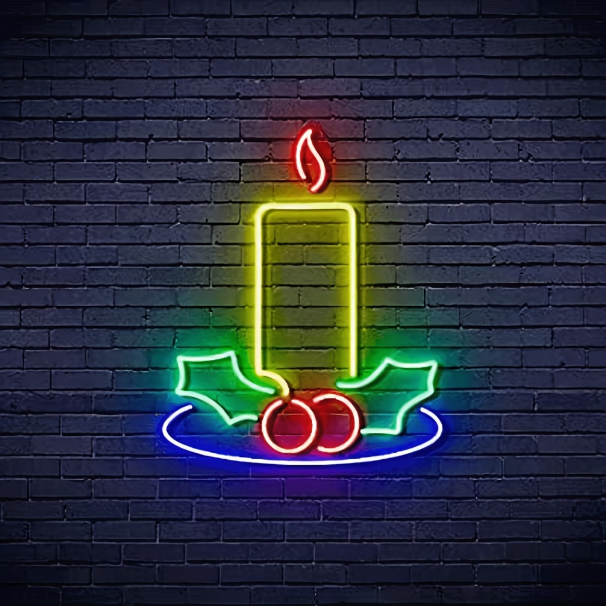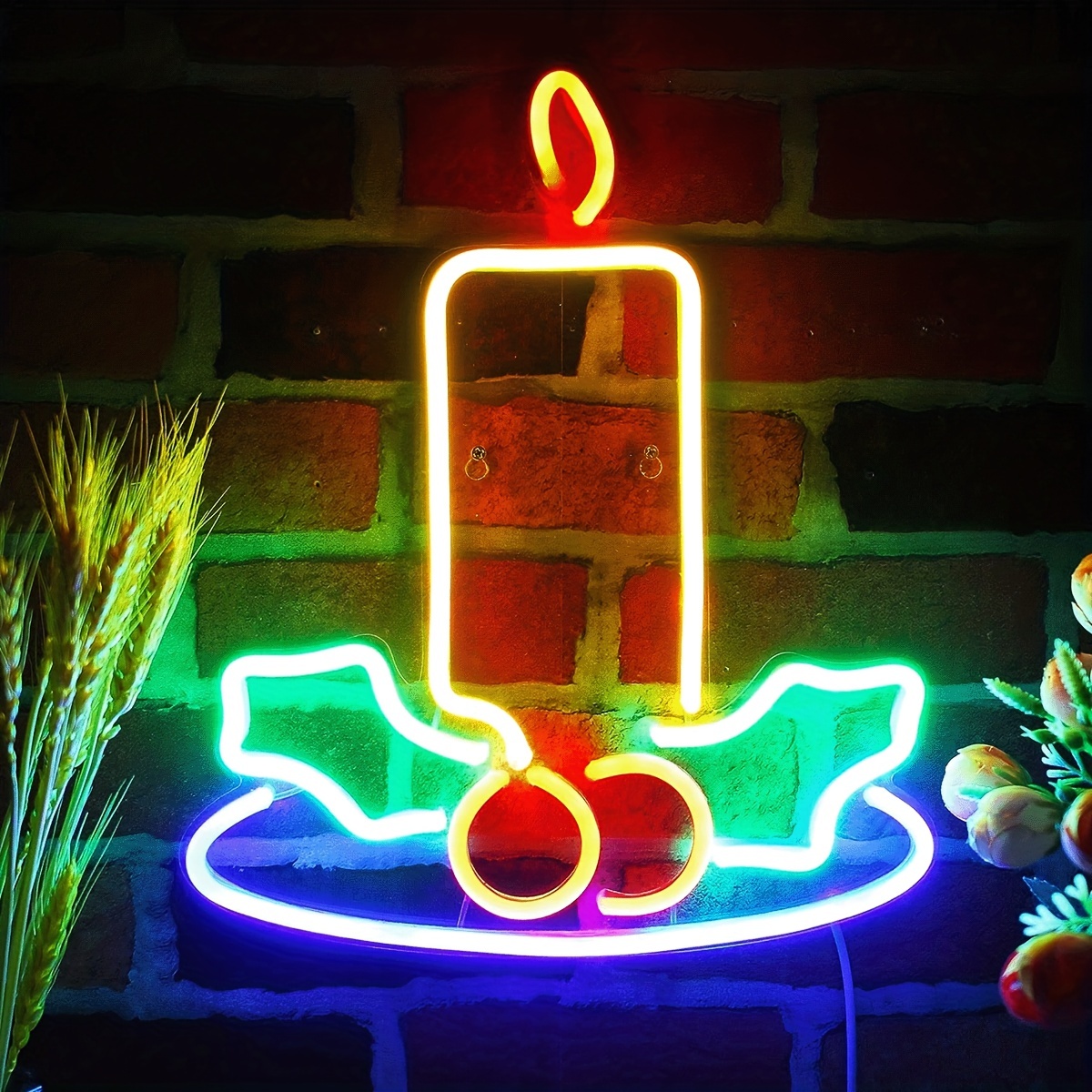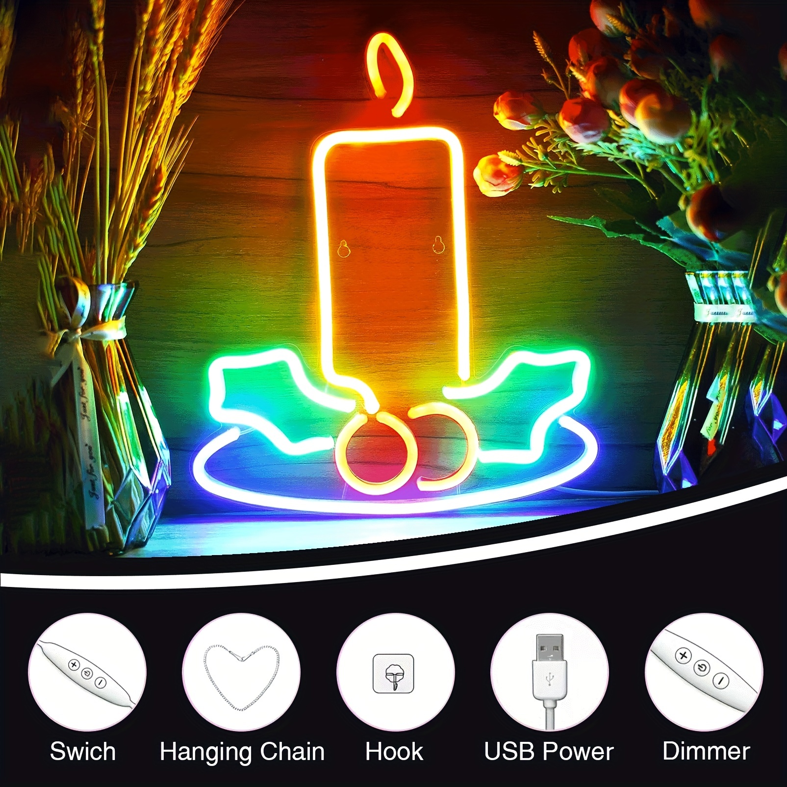 1 pc Christmas Candle Wall Neon Sign, Dimmable LED Christmas Atmosphere Wall Decor Neon Sign, Perfect for Christmas Parties, Bedrooms, Birthday Parties, Bars, Shops, Game Rooms, Clubs, Rooms, Friends Gatherings Wall Decor, Top Choice as Birthday or Christmas Gift for Friends and Family, USB-Powered Illuminated Sign Hanging Kit, 5V USB Power Supply