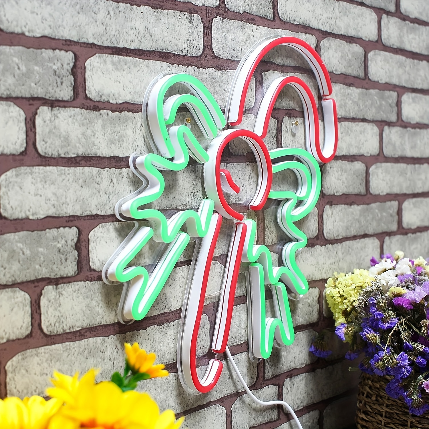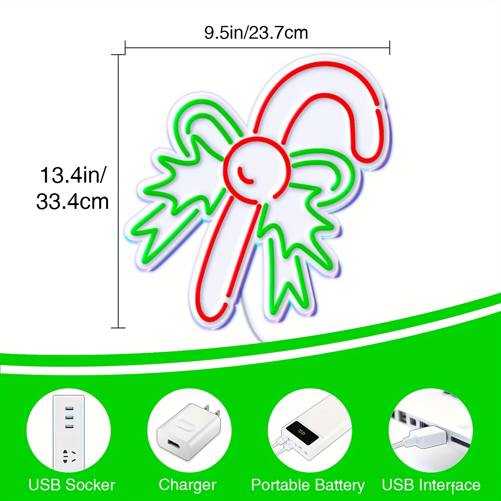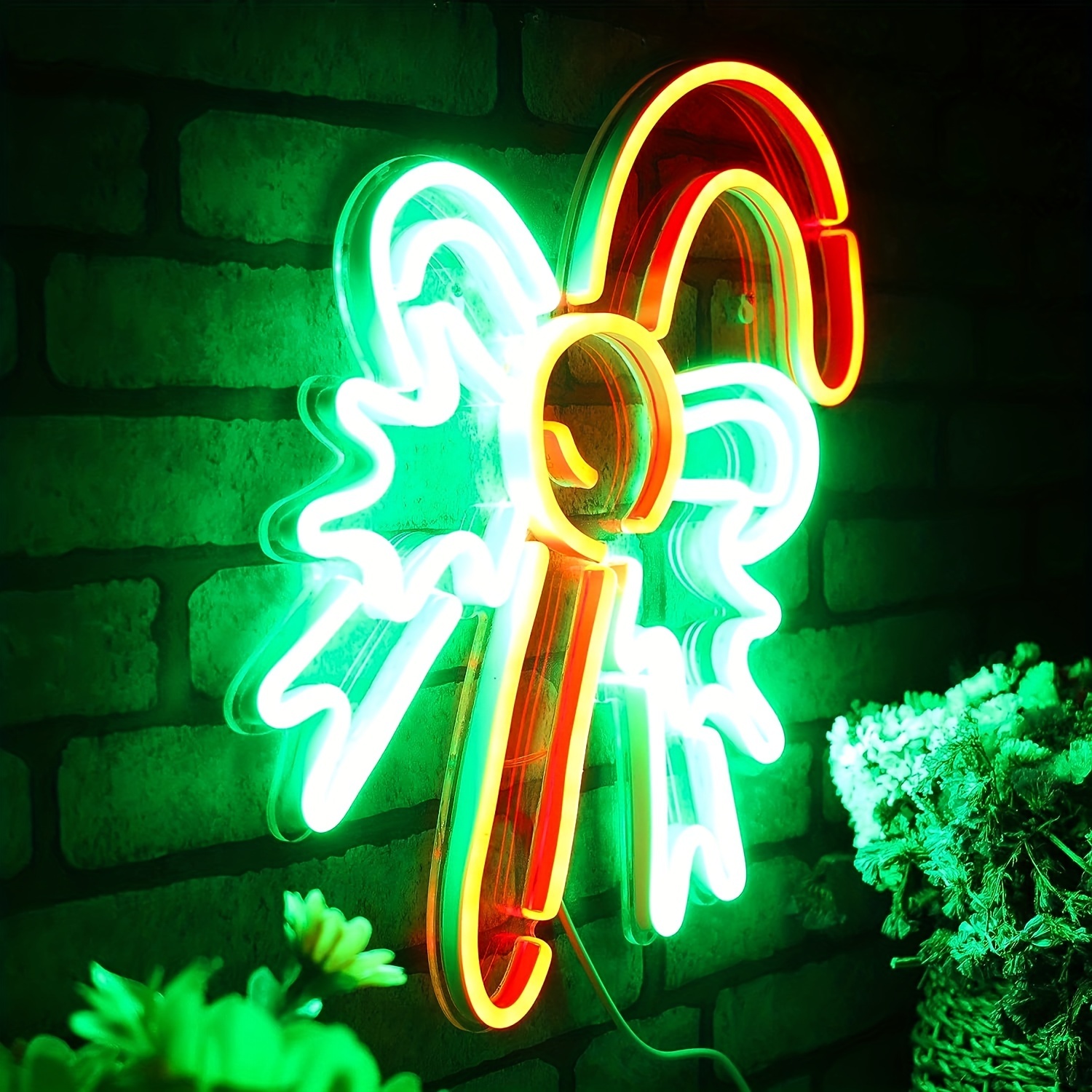 1 pc Christmas Candy Cane Wall Neon Decoration, Dimmable LED Christmas Ambiance Wall Decoration Neon Sign, great for Christmas parties, bedrooms, birthday parties, pubs, shops, games rooms, clubs, rooms, friends party wall decorations, as a friends family birthday, Christmas gifts preferred, USB powered light up sign hanging device, 5V USB power supply