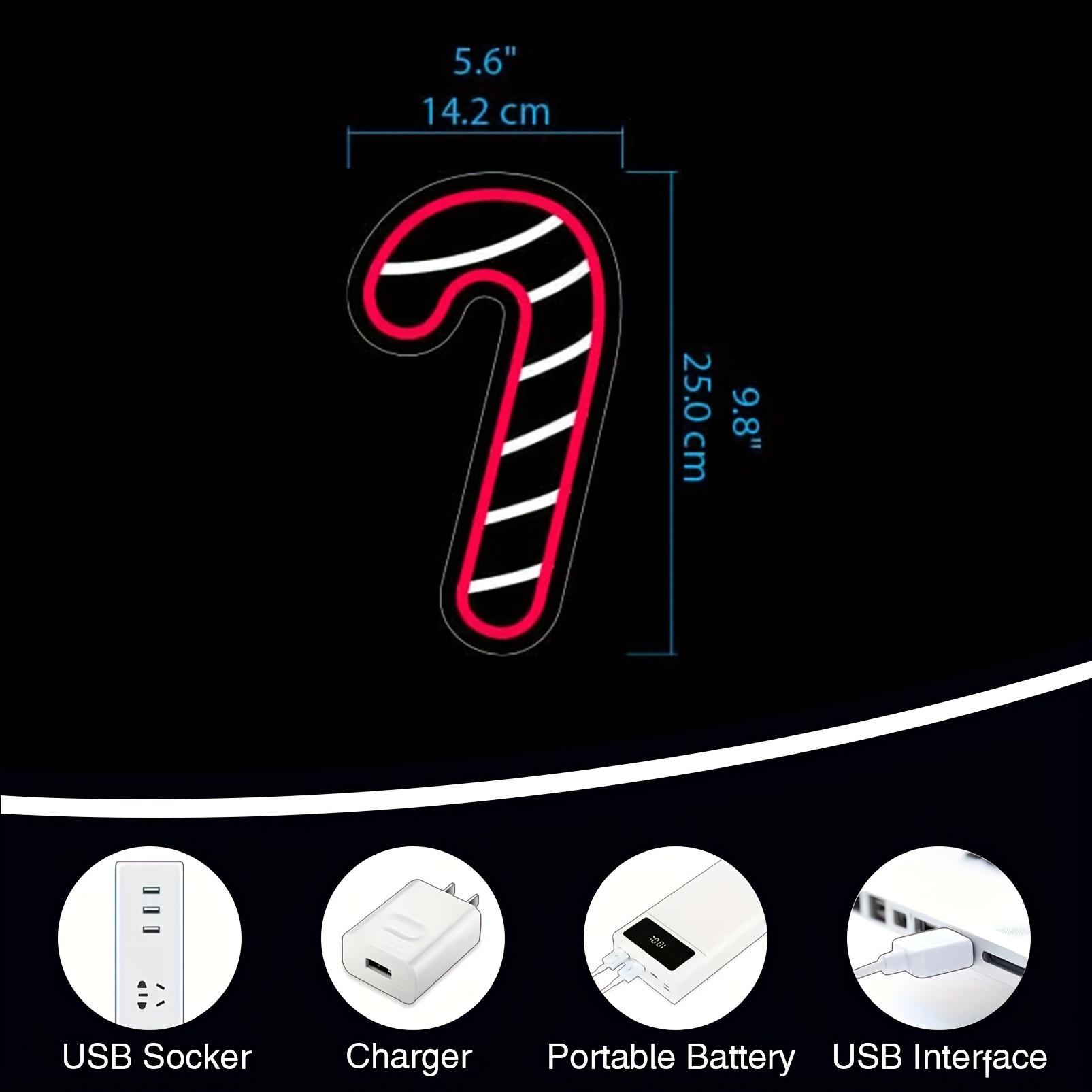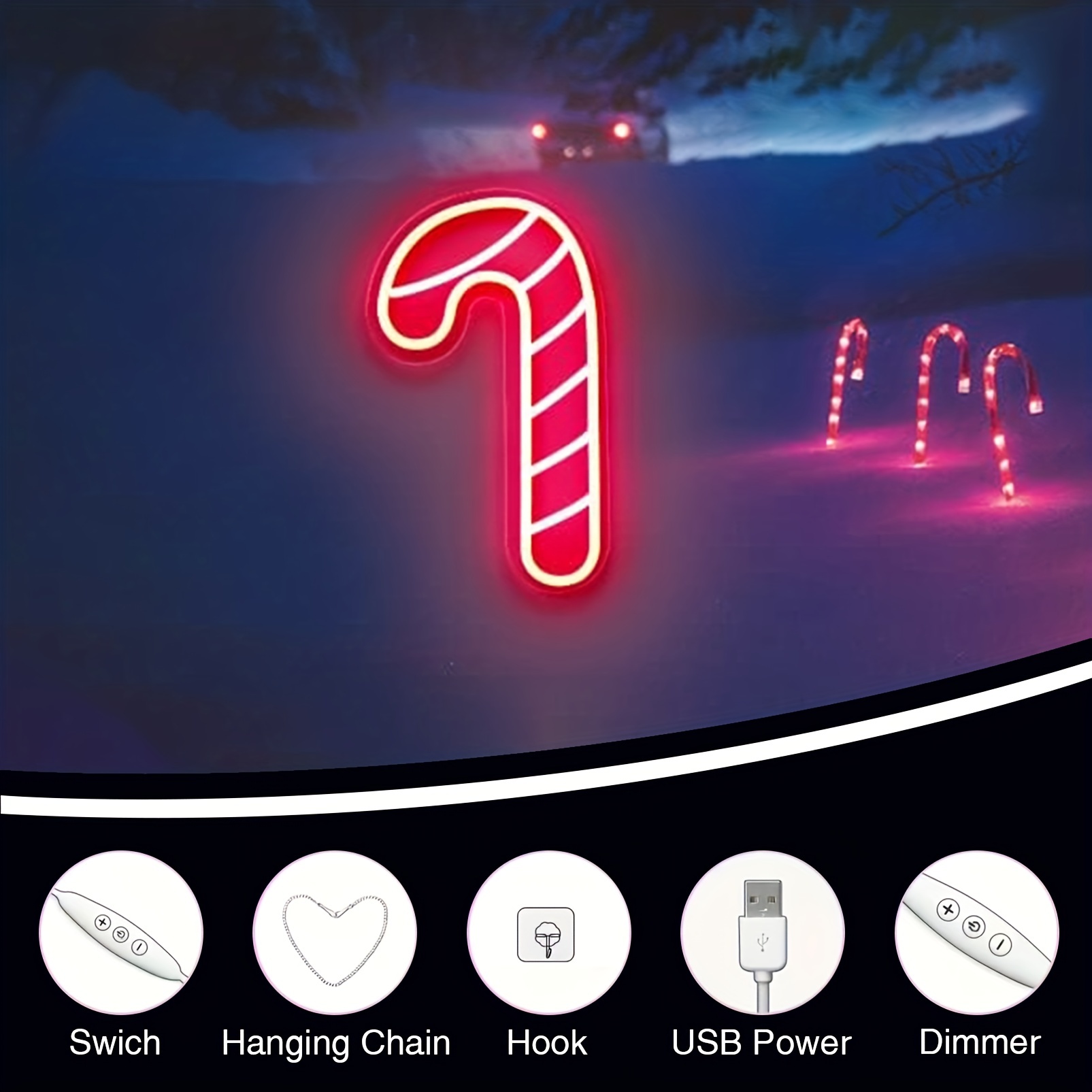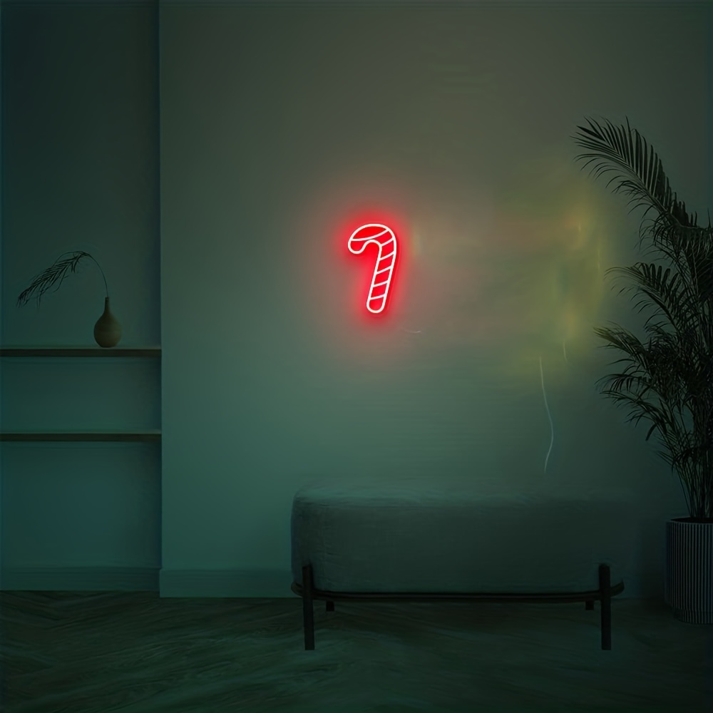 1 pc Christmas Candy Cane Wall Neon Sign, Dimmable LED Christmas Atmosphere Wall Decor Neon Sign, Perfect for Christmas Parties, Bedrooms, Birthday Parties, Bars, Shops, Game Rooms, Clubs, Rooms, Friends Gatherings Wall Decor, Top Choice as Birthday or Christmas Gift for Friends and Family, USB-Powered Illuminated Sign Hanging Kit, 5V USB Power Supply