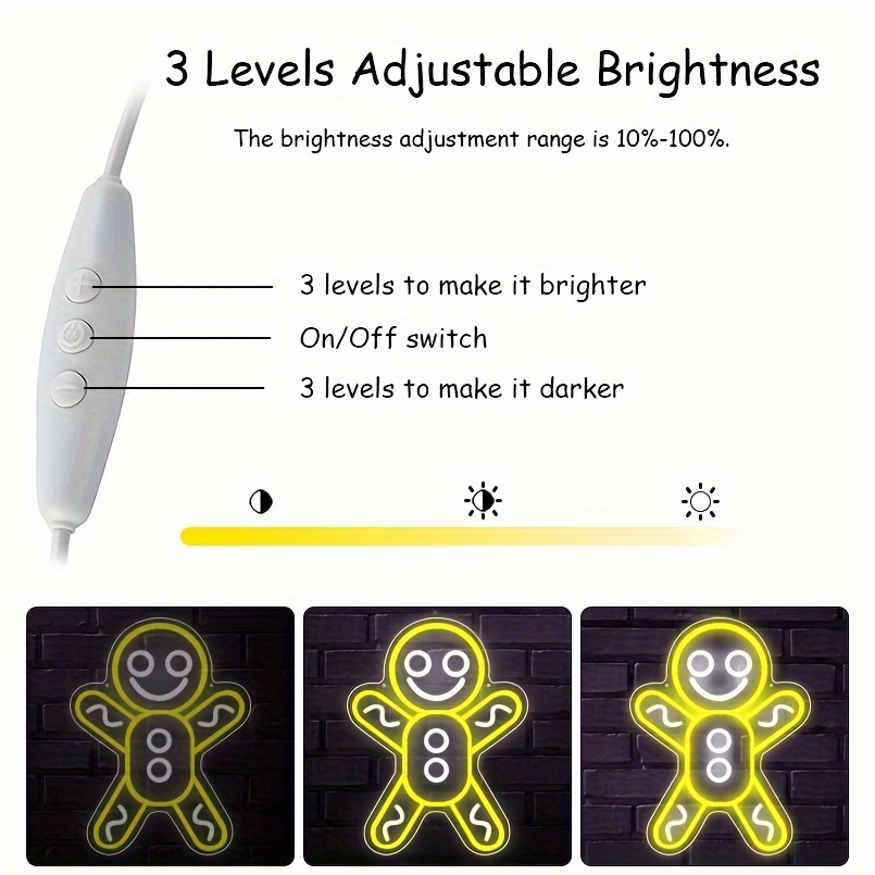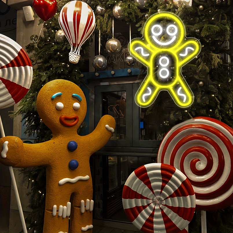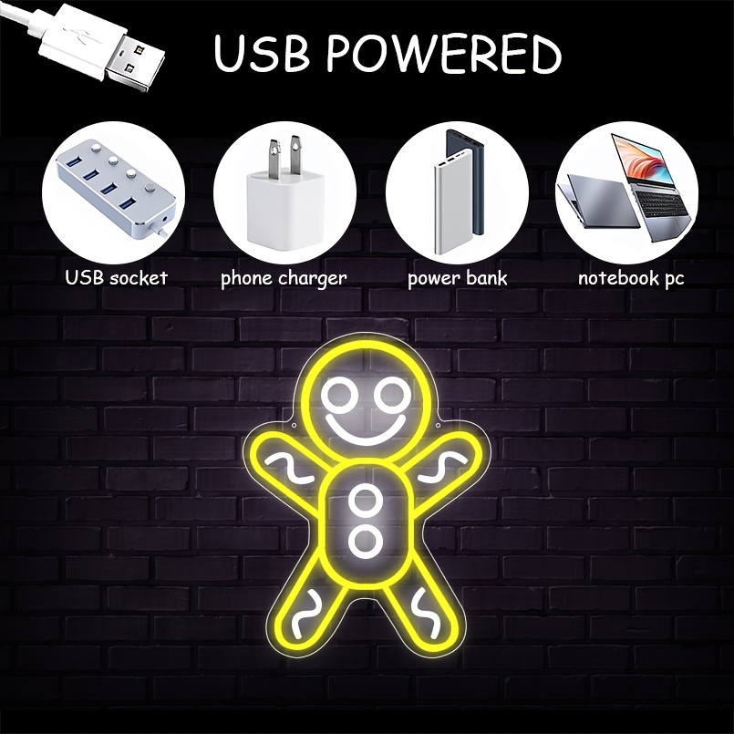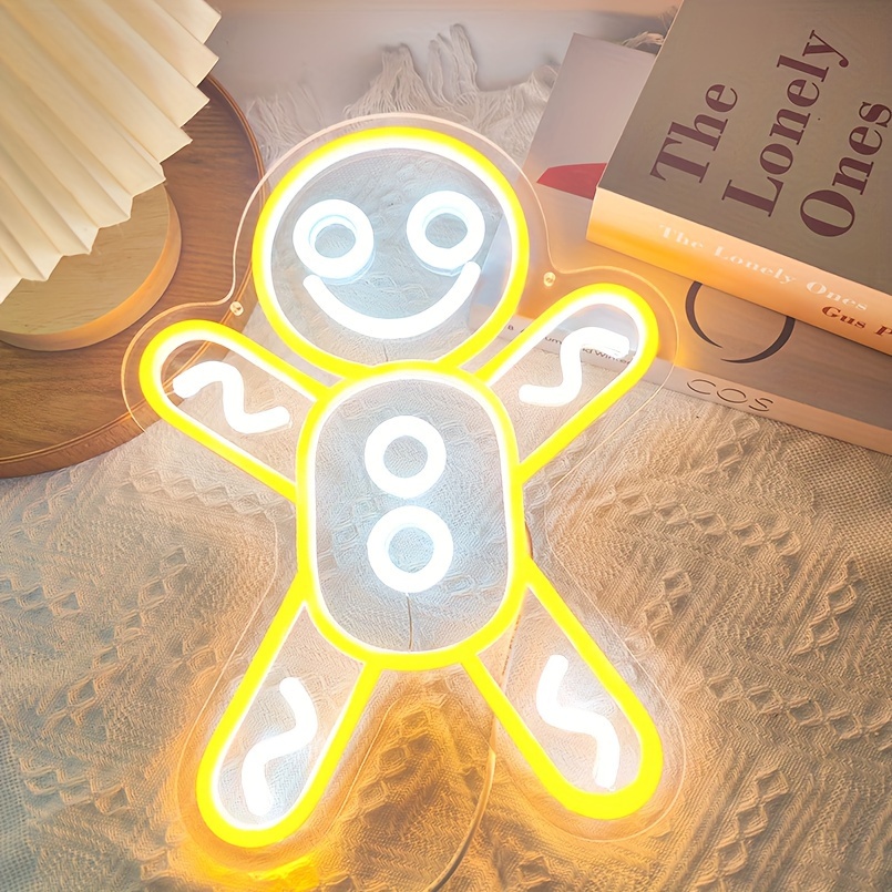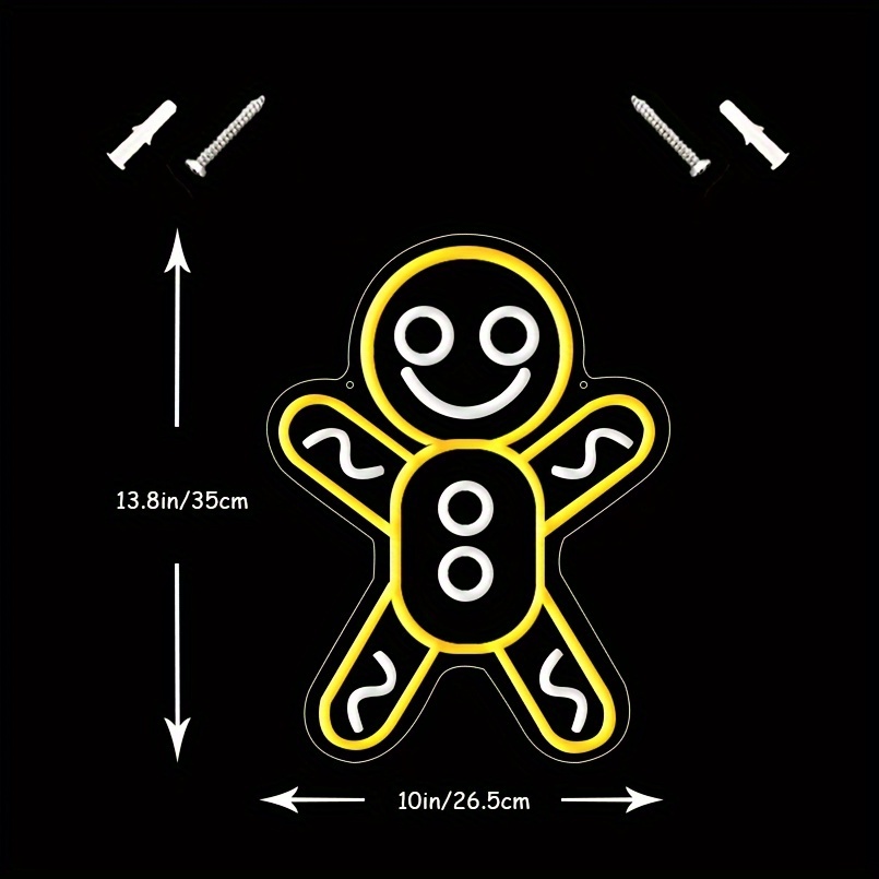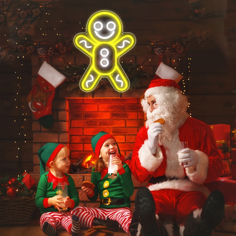 1 pc Christmas Gingerbread Man Wall Neon Sign Decoration, Dimmable LED Christmas Atmosphere Wall Decor Neon Sign, Perfect for Christmas Parties, Bedrooms, Birthday Parties, Bars, Shops, Game Rooms, Clubs, Rooms, Friends Gatherings Wall Decor, Top Choice as a Gift for Friends’ Birthdays or Christmas, USB-powered illuminated sign hanging kit, 5V USB power supply