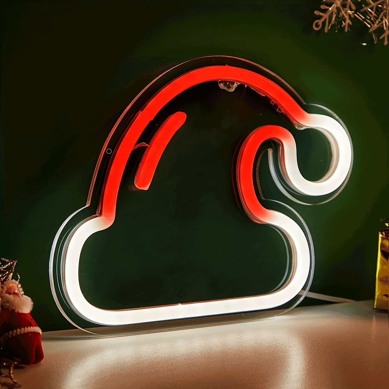 1 pc Christmas hat wall neon decoration, dimmable LED Christmas ambience wall decoration neon sign, perfect for Christmas party, bedroom, birthday party, bar, shop, game room, club, room, friends party wall decoration, as friends family birthday, Christmas gift preferred, USB powered light up sign hanging device, 5V USB power supply