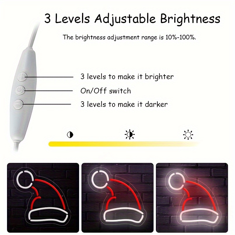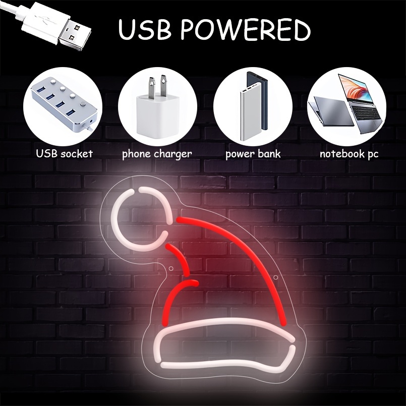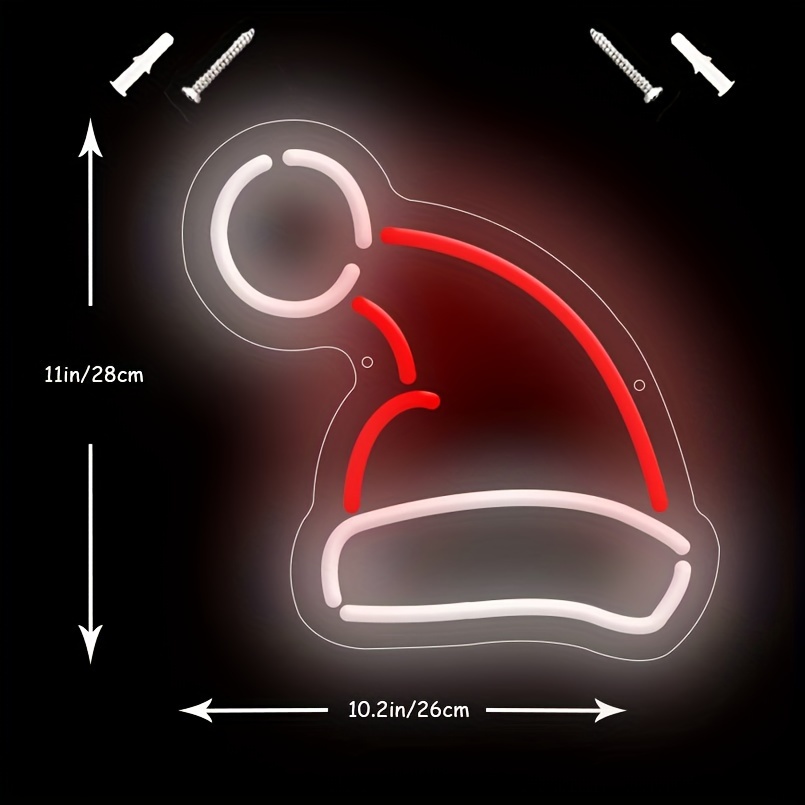 1 pc Christmas Hat Wall Neon Sign, Dimmable LED Christmas Atmosphere Wall Decor Neon Sign, Perfect for Christmas Parties, Bedrooms, Birthday Parties, Bars, Shops, Game Rooms, Clubs, Rooms, Friends Gatherings Wall Decor, Top Choice as Birthday or Christmas Gift for Friends and Family, USB-powered illuminated sign hanging kit, 5V USB power supply