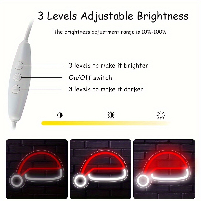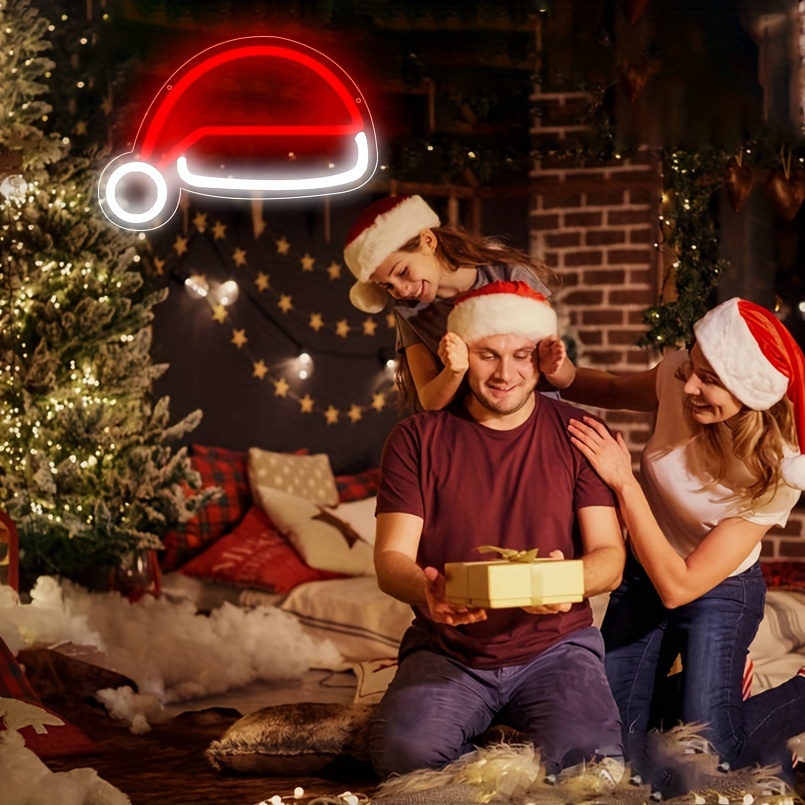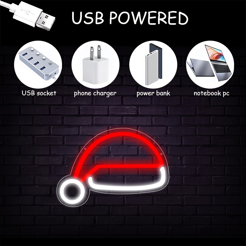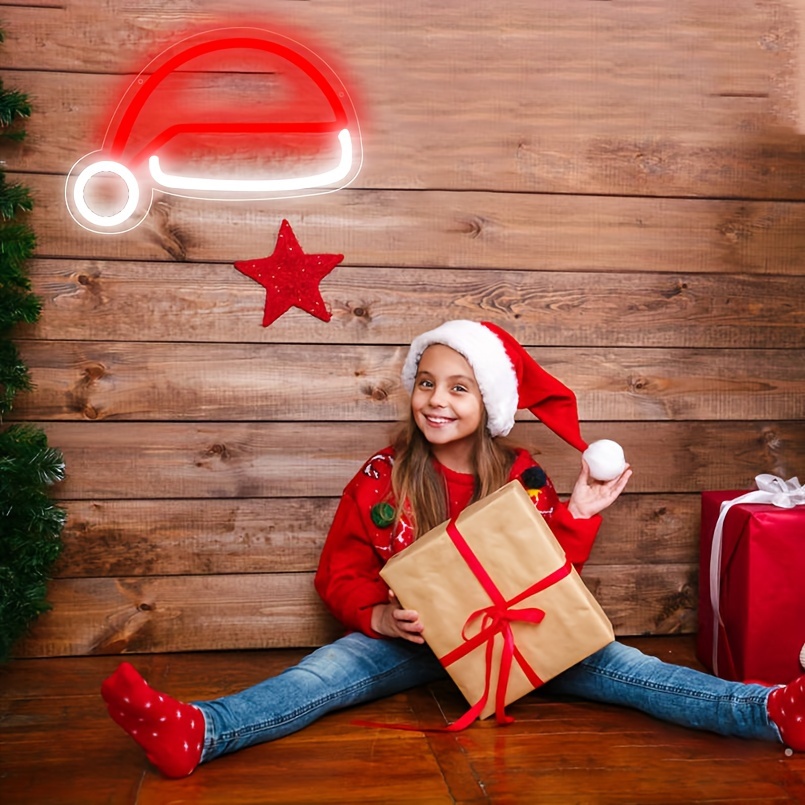 1 pc Christmas Hat Wall Neon Sign, Dimmable LED Christmas Atmosphere Wall Decor Neon Sign, Perfect for Christmas Parties, Bedrooms, Birthday Parties, Bars, Shops, Game Rooms, Clubs, Rooms, Friends Gatherings Wall Decor, Top Choice as Birthday or Christmas Gift for Friends and Family, USB-Powered Illuminated Sign Hanging Kit, 5V USB Power Supply