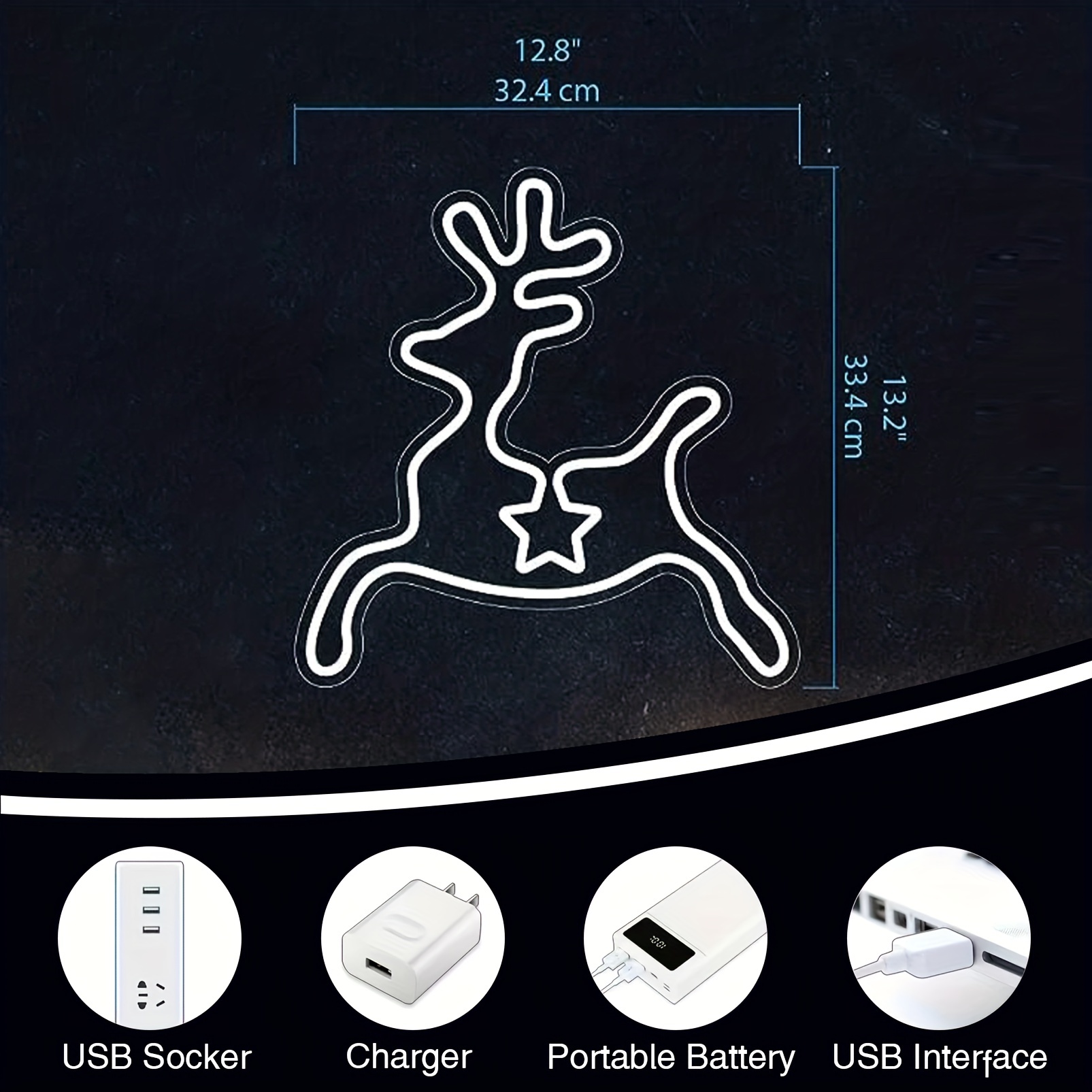 1 pc Christmas Reindeer Wall Neon Decoration, Dimmable LED Christmas Ambiance Wall Decoration Neon Sign, great for Christmas parties, bedrooms, birthday parties, pubs, shops, games rooms, clubs, rooms, friends party wall decorations, as a friends family birthday, Christmas gift first choice, USB powered light up sign hanging device, 5V USB power supply