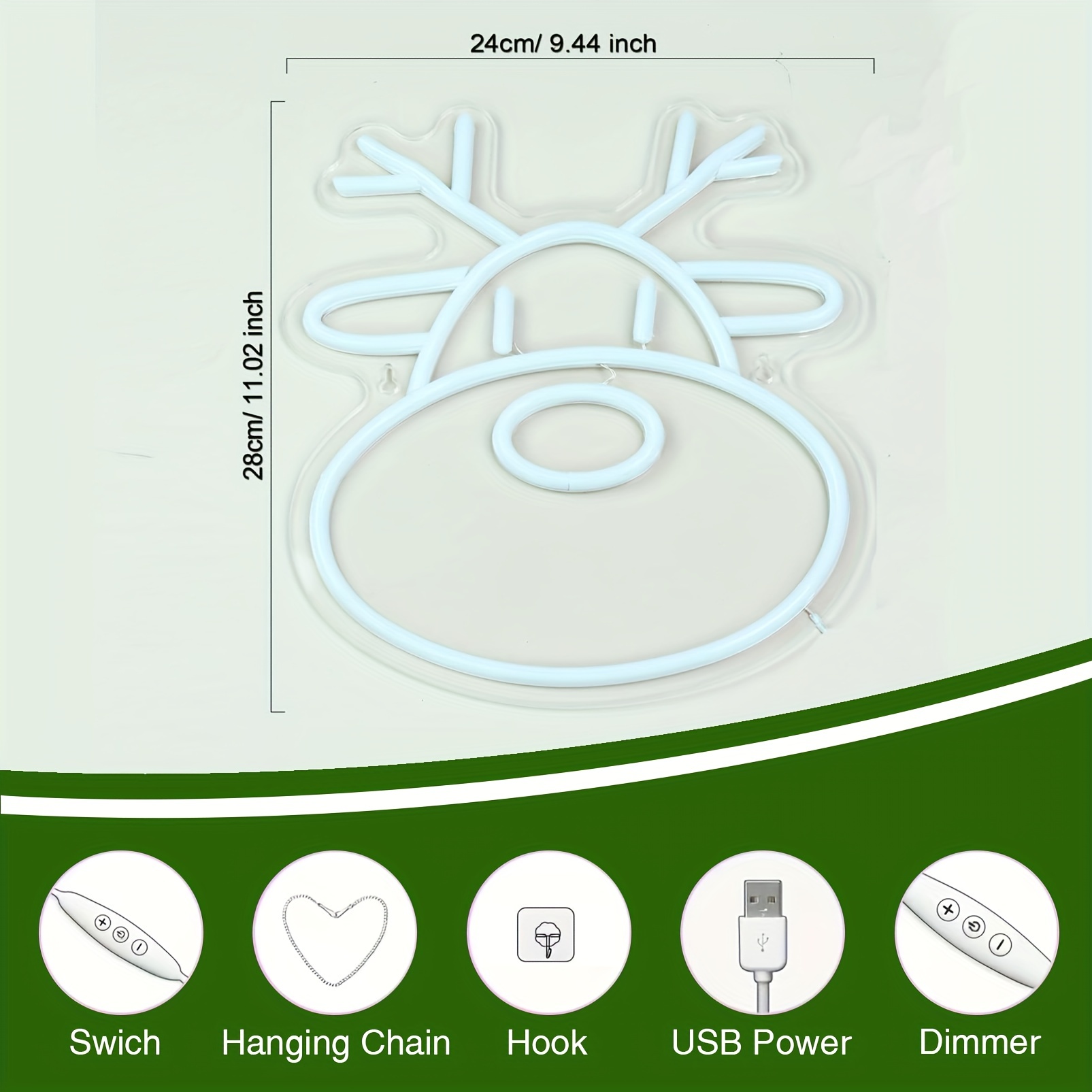 成为第一个“1 pc Christmas Reindeer Wall Neon Sign, Dimmable LED Christmas Atmosphere Wall Decor Neon Sign, Perfect for Christmas Parties, Bedrooms, Birthday Parties, Bars, Shops, Game Rooms, Clubs, Rooms, Friends Gatherings Wall Decor, Top Choice as Birthday or Christmas Gift for Friends and Family, USB-powered illuminated sign hanging kit, 5V USB power supply” 的评价者