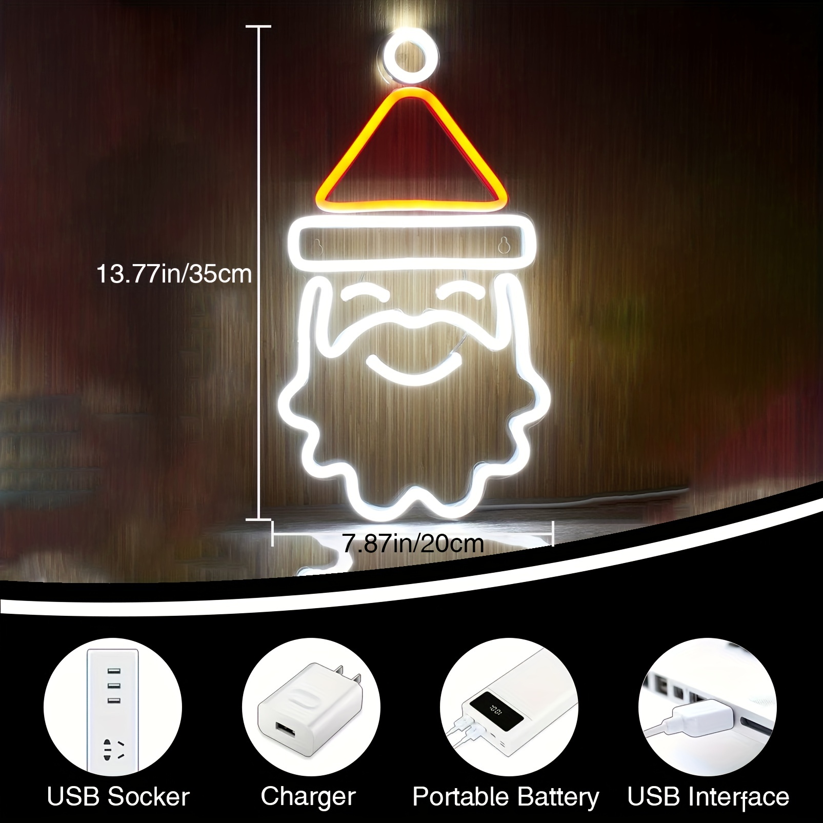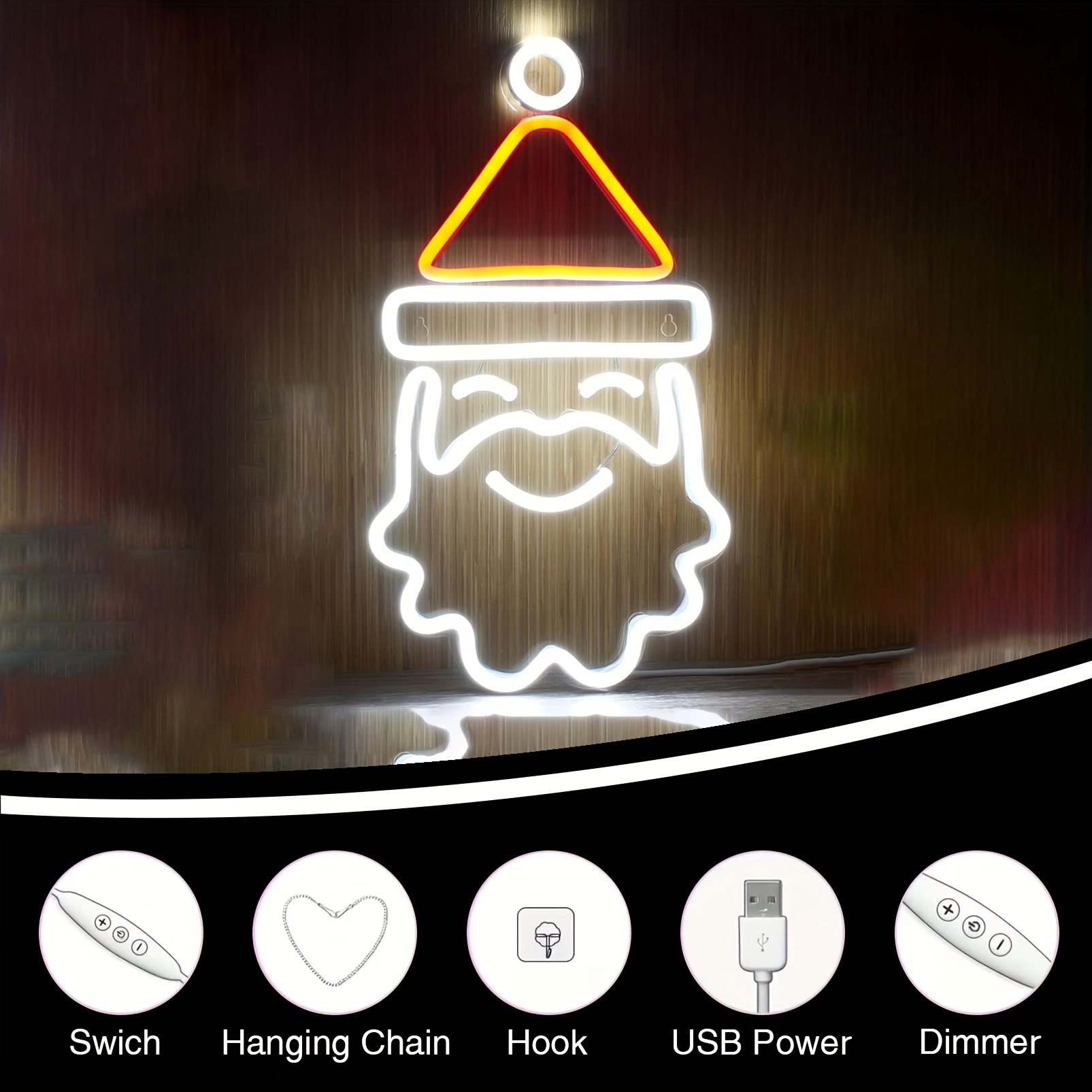 1 pc Christmas Santa Claus Wall Neon Decoration, Dimmable LED Christmas Ambiance Wall Decoration Neon Sign, Perfect for Christmas Party, Bedroom, Birthday Party, Pubs, Shops, Games Room, Clubs, Rooms, Friends Gathering Wall Decorations, Preferred as a Birthday or Christmas Gift for Friends’ Families, USB Powered Illuminated Sign Hanging Unit, 5V USB Power Supply