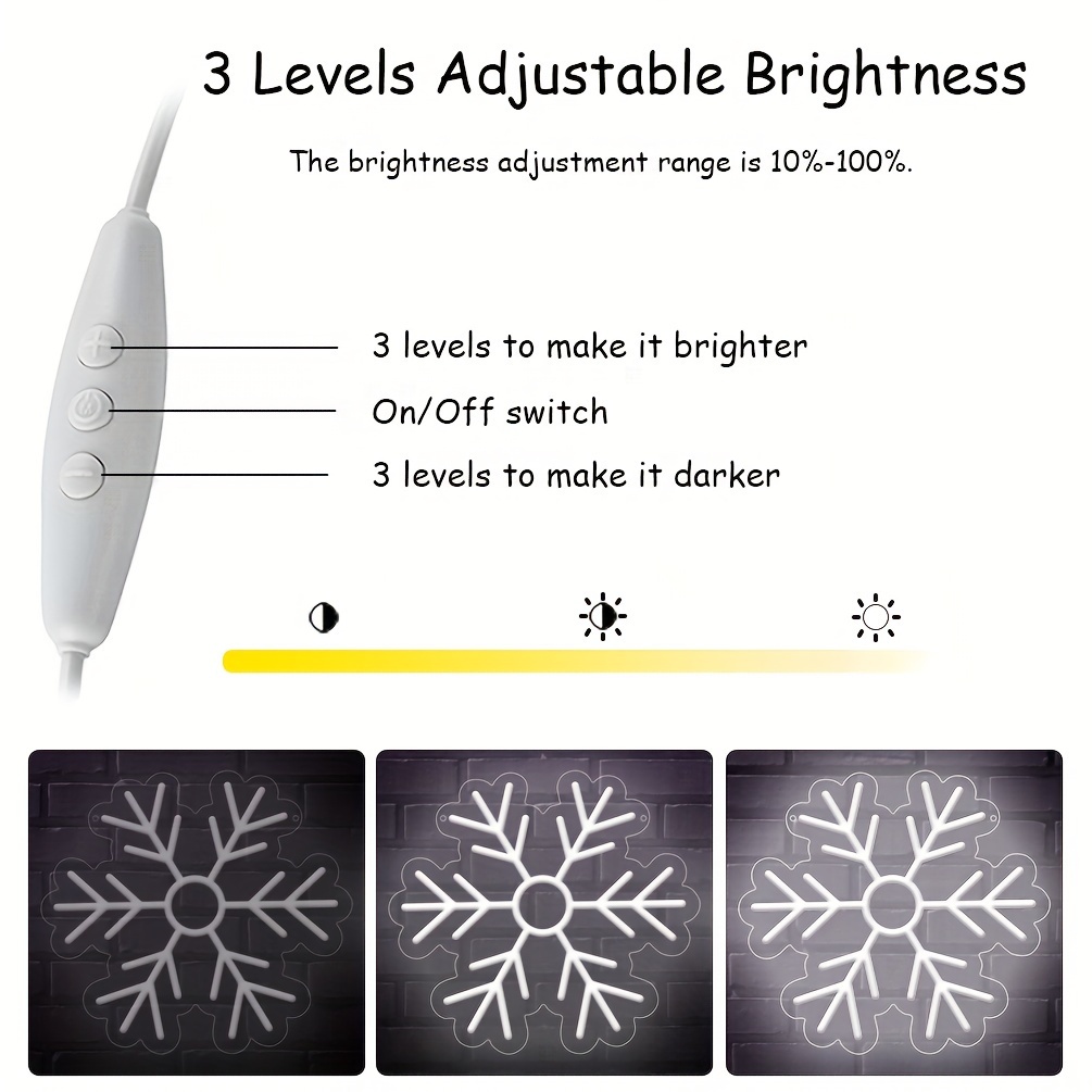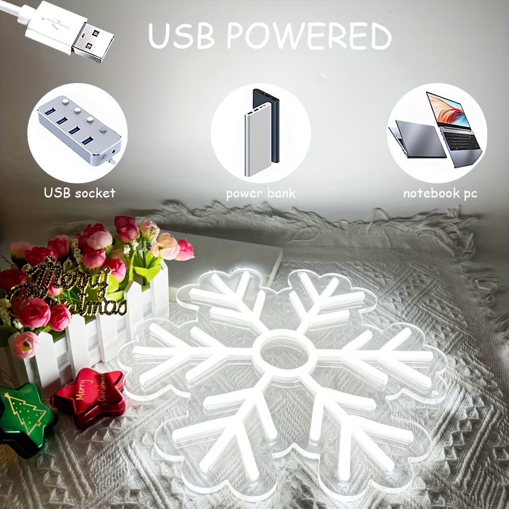 1 pc Christmas Snowflake Wall Neon Sign Decoration, Dimmable LED Christmas Atmosphere Wall Decor Neon Sign, Perfect for Christmas Parties, Bedrooms, Birthday Parties, Bars, Shops, Game Rooms, Clubs, Rooms, Friends Gatherings Wall Decor, Top Choice as a Gift for Friends’ Birthdays or Christmas, USB-powered illuminated sign hanging kit, 5V USB power supply