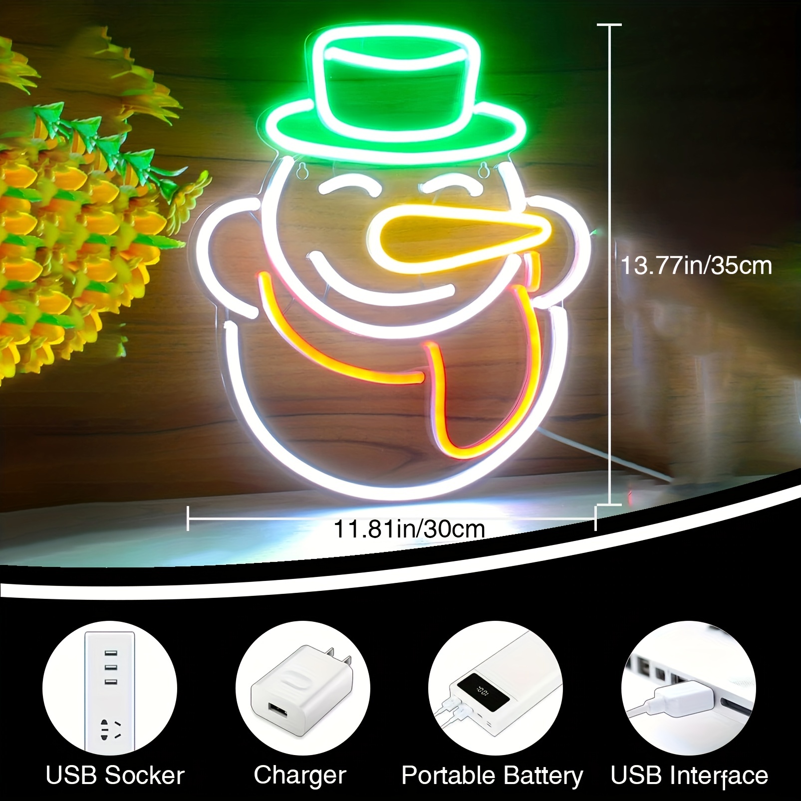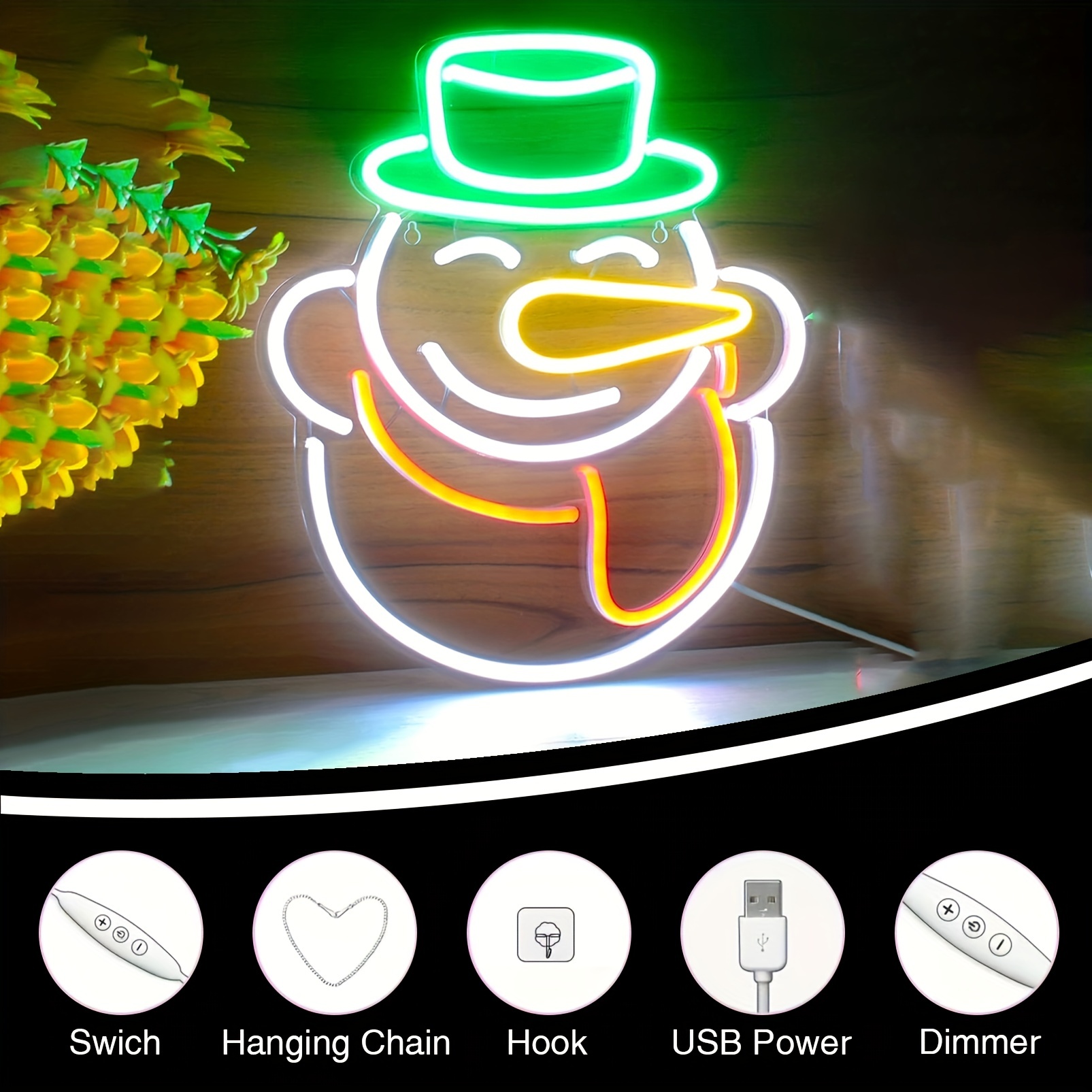 1 pc Christmas Snowman Wall Neon Sign, Dimmable LED Christmas Atmosphere Wall Decor Neon Sign, Perfect for Christmas Parties, Bedrooms, Birthday Parties, Bars, Shops, Game Rooms, Clubs, Rooms, Friends Gatherings Wall Decor, Top Choice as Birthday or Christmas Gift for Friends and Family, USB-powered illuminated sign hanging kit, 5V USB power supply