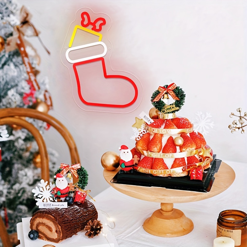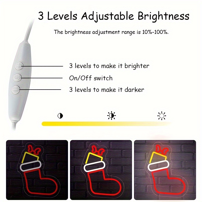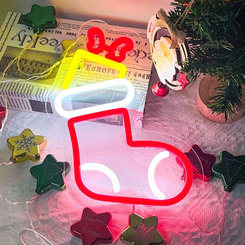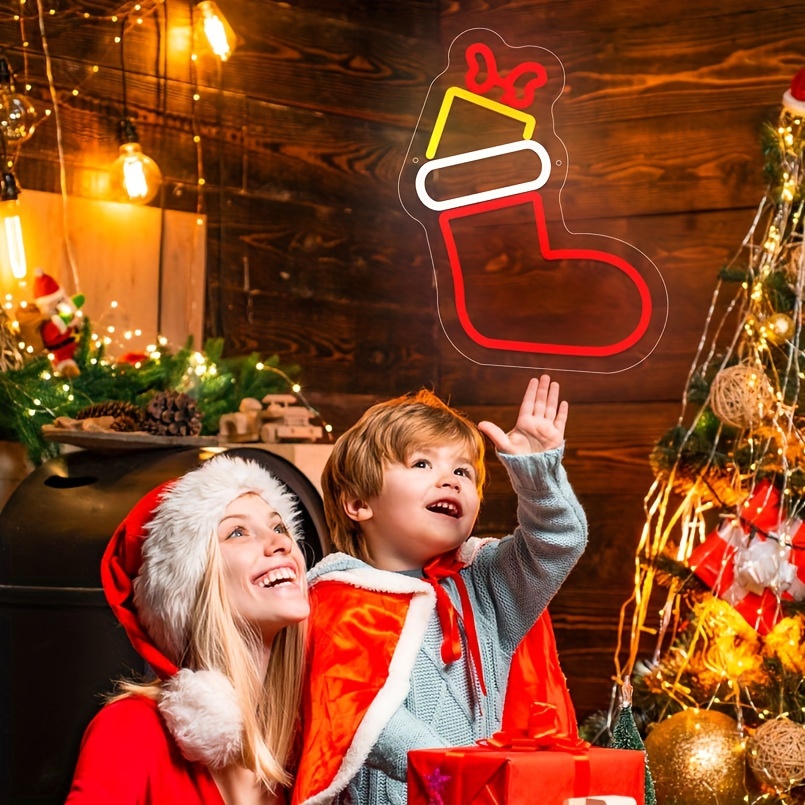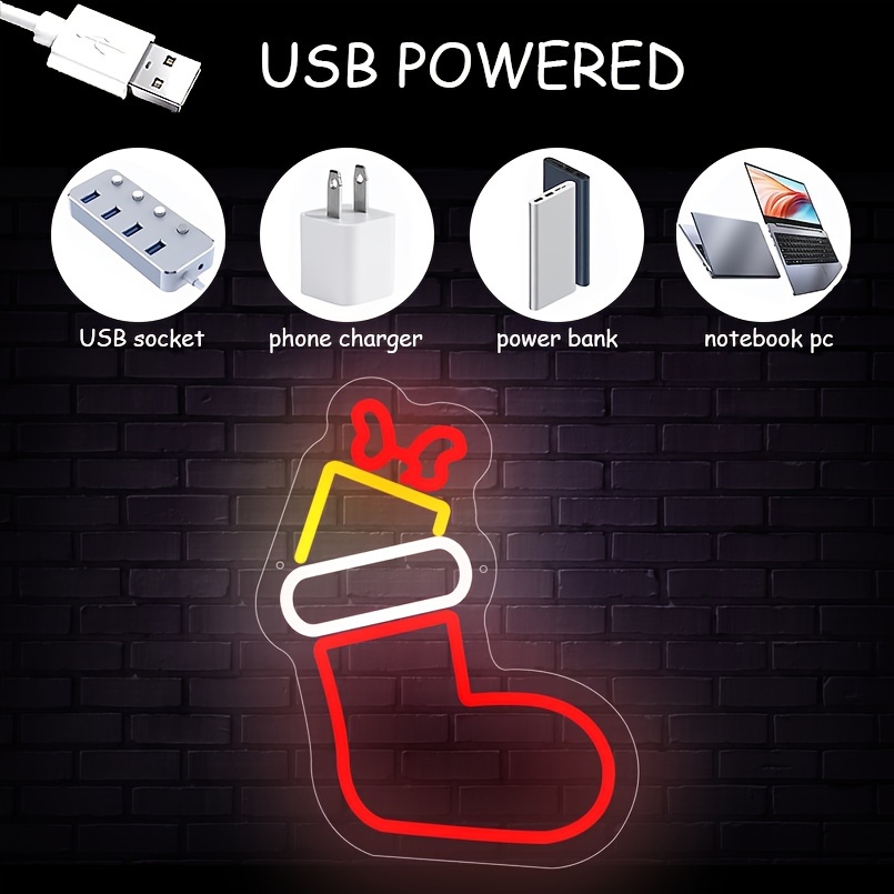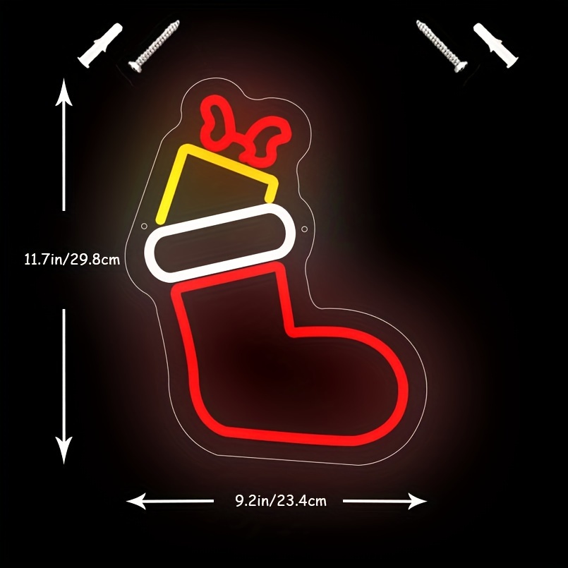 1 pc Christmas Socking Wall Neon Sign, Dimmable LED Christmas Atmosphere Wall Decor Neon Sign, Perfect for Christmas Parties, Bedrooms, Birthday Parties, Bars, Shops, Game Rooms, Clubs, Rooms, Friends Gatherings Wall Decor, Top Choice as Birthday or Christmas Gift for Friends and Family, USB-powered illuminated sign hanging kit, 5V USB power supply