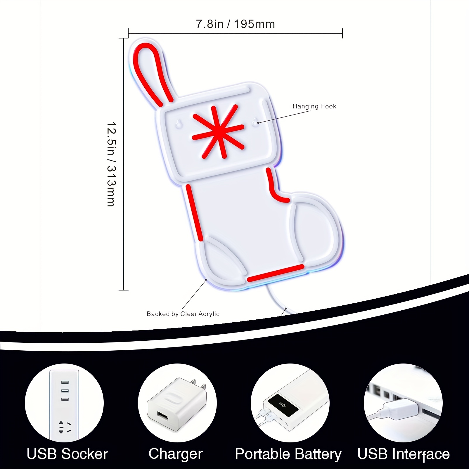成为第一个“1 pc Christmas Stocking Wall Neon Decoration, Dimmable LED Christmas Ambiance Wall Decoration Neon Sign, perfect for Christmas parties, bedrooms, birthday parties, pubs, shops, games rooms, clubs, rooms, friends party wall decorations, as a friend’s family birthday, Christmas gift preferred, USB powered light up sign hanging device, 5V USB power supply” 的评价者