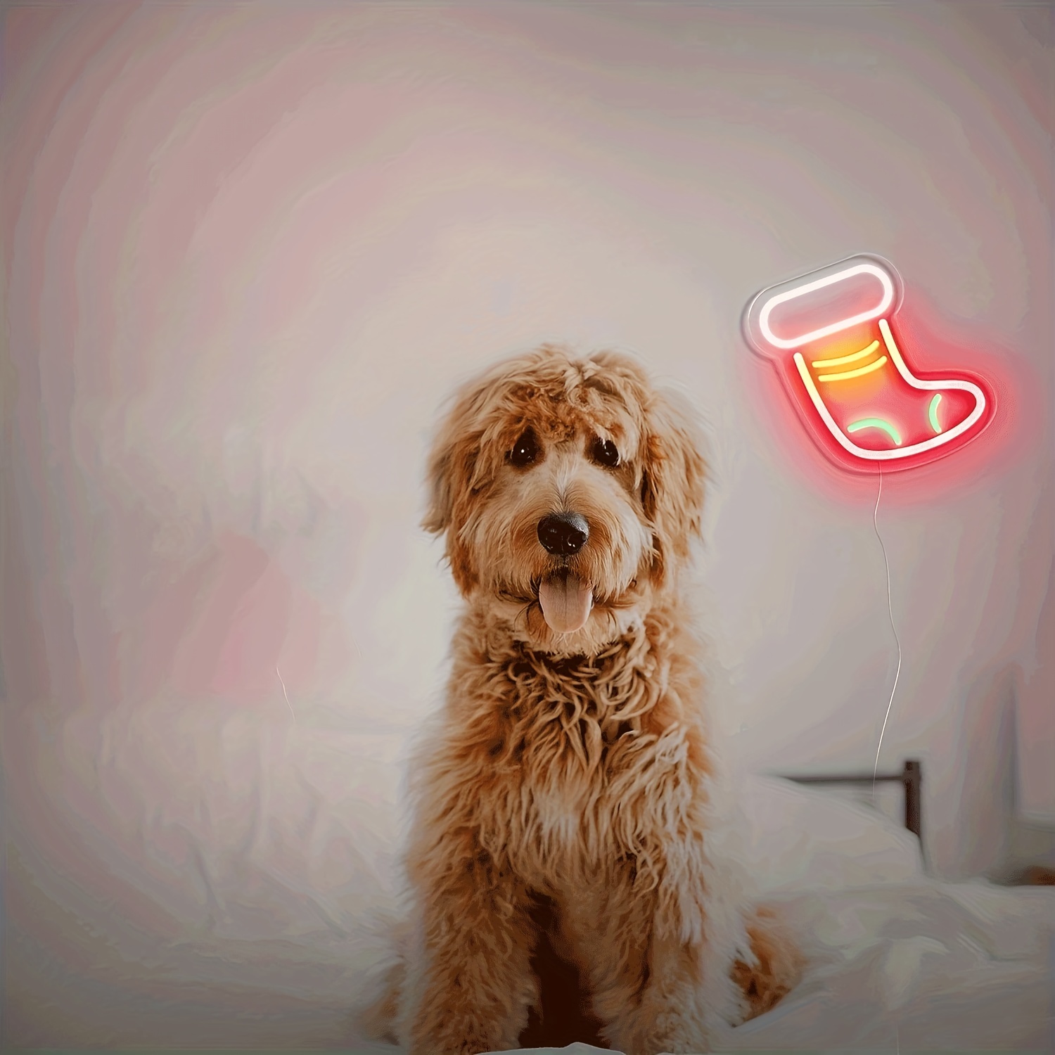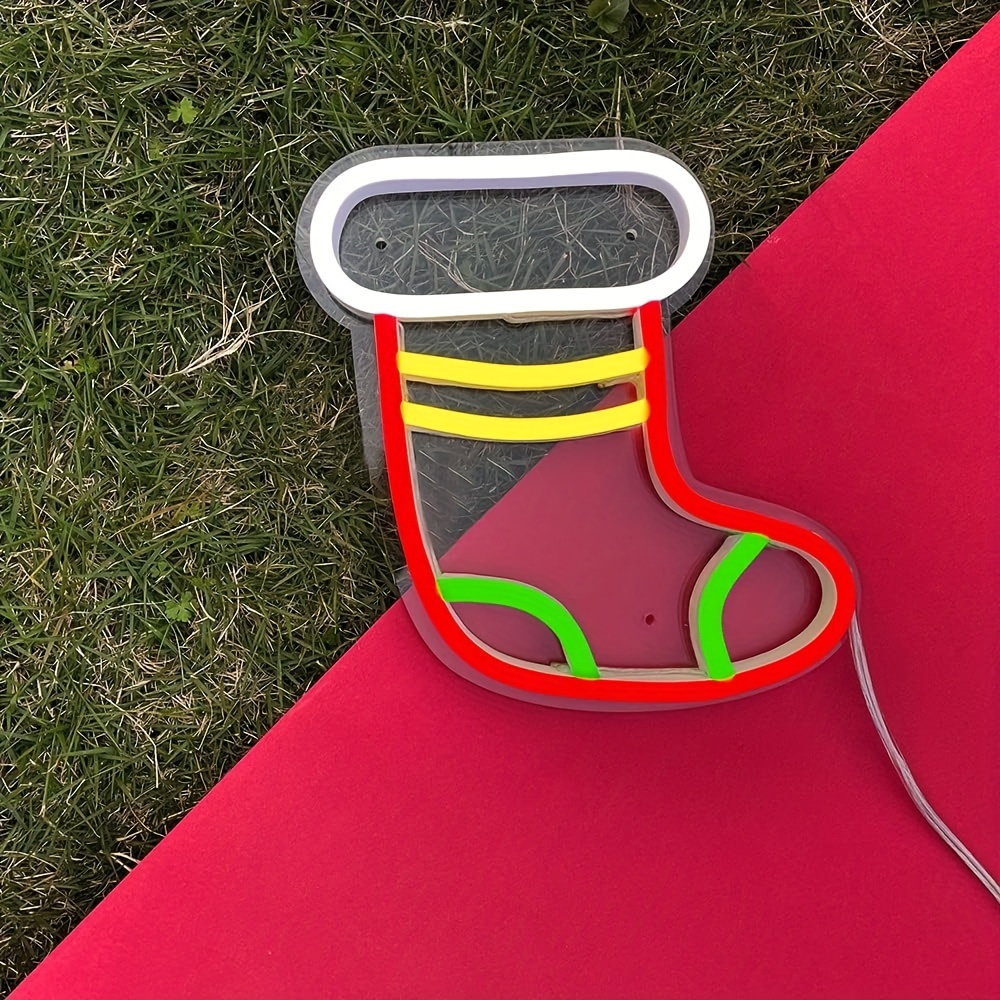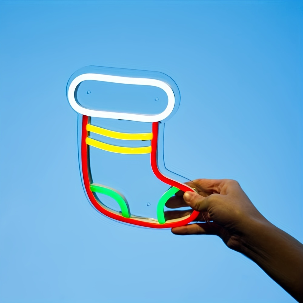 1 pc Christmas Stocking Wall Neon Decoration, Dimmable LED Christmas Ambiance Wall Decoration Neon Sign, perfect for Christmas parties, bedrooms, birthday parties, pubs, shops, games rooms, clubs, rooms, friends party wall decorations, as a friend’s family birthday, Christmas gift preferred, USB powered light up sign hanging device, 5V USB power supply