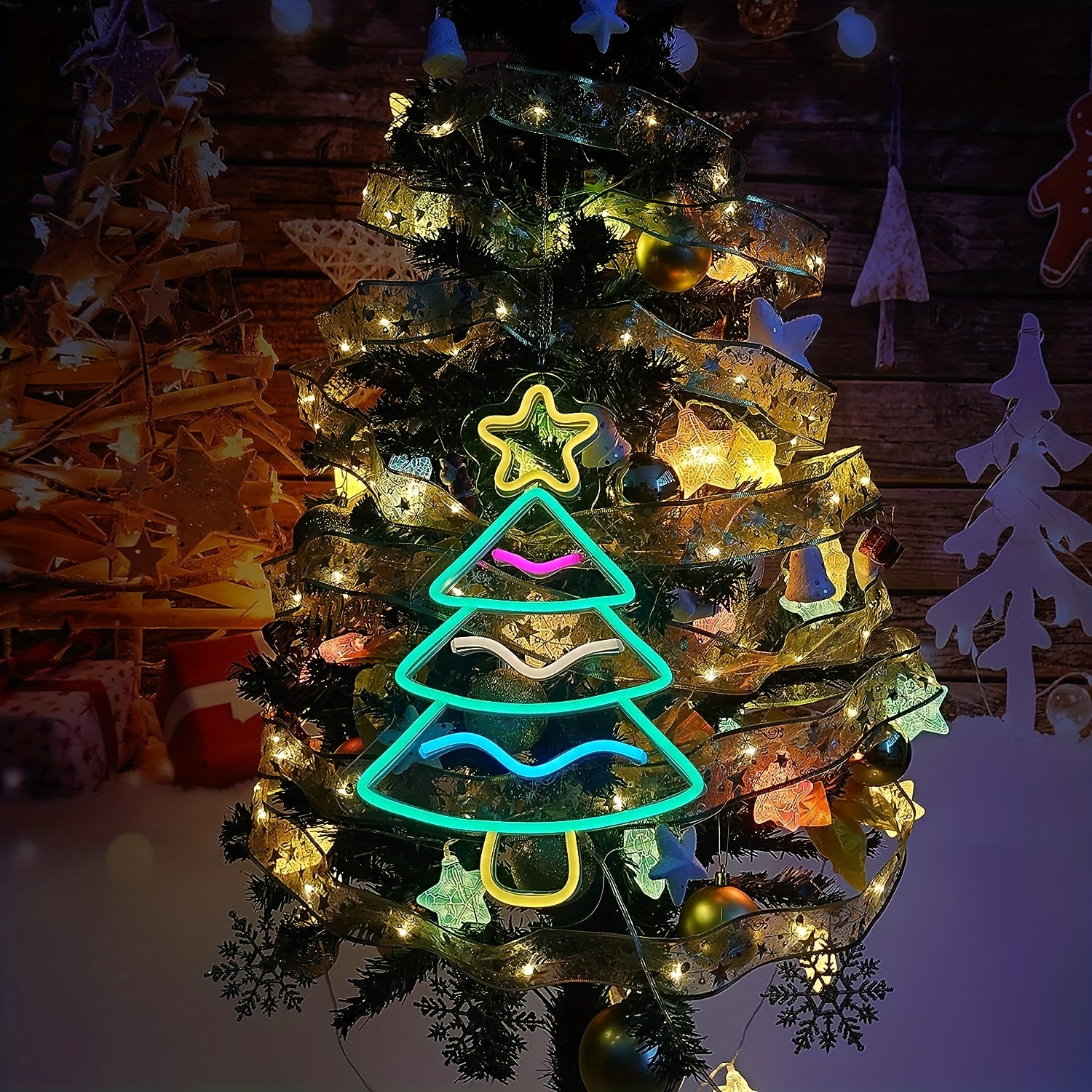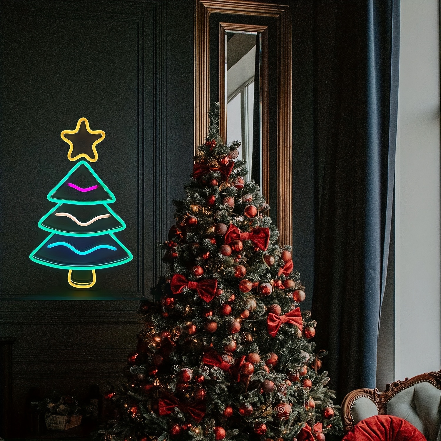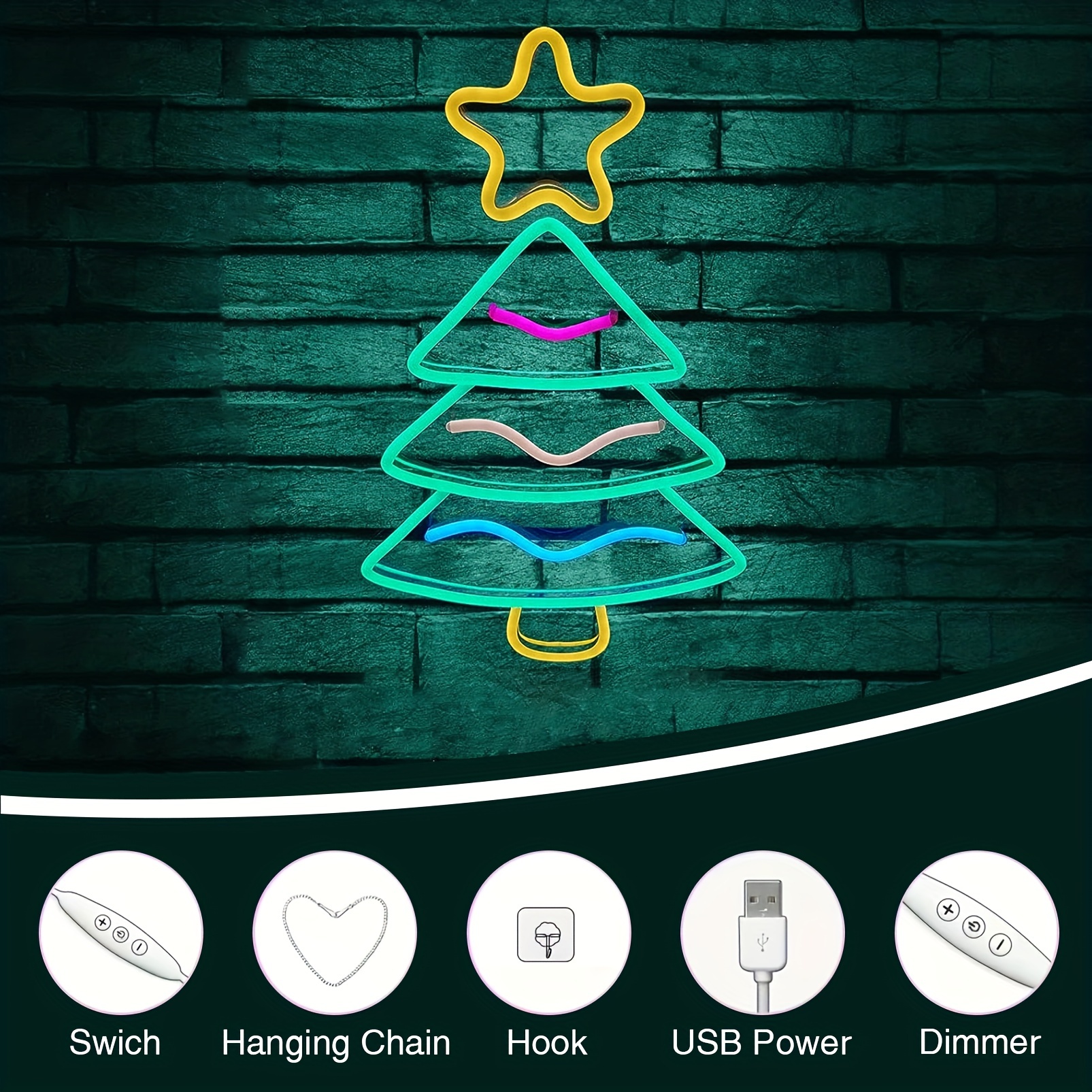 1 pc Christmas Tree Wall Neon Sign Decoration, Dimmable LED Christmas Atmosphere Wall Decor Neon Sign, Perfect for Christmas Parties, Bedrooms, Birthday Parties, Bars, Shops, Game Rooms, Clubs, Rooms, Friends Gatherings Wall Decor, Top Choice as a Gift for Friends’ Birthdays or Christmas, USB-powered illuminated sign hanging kit, 5V USB power supply