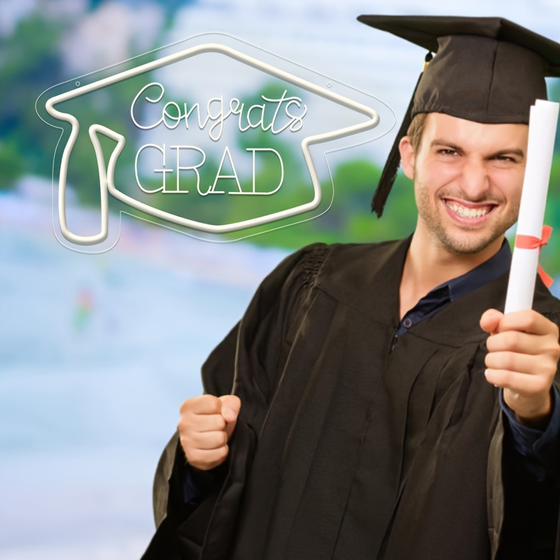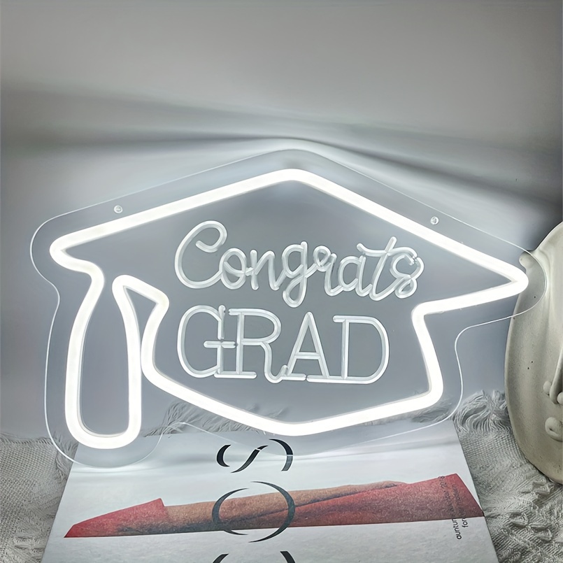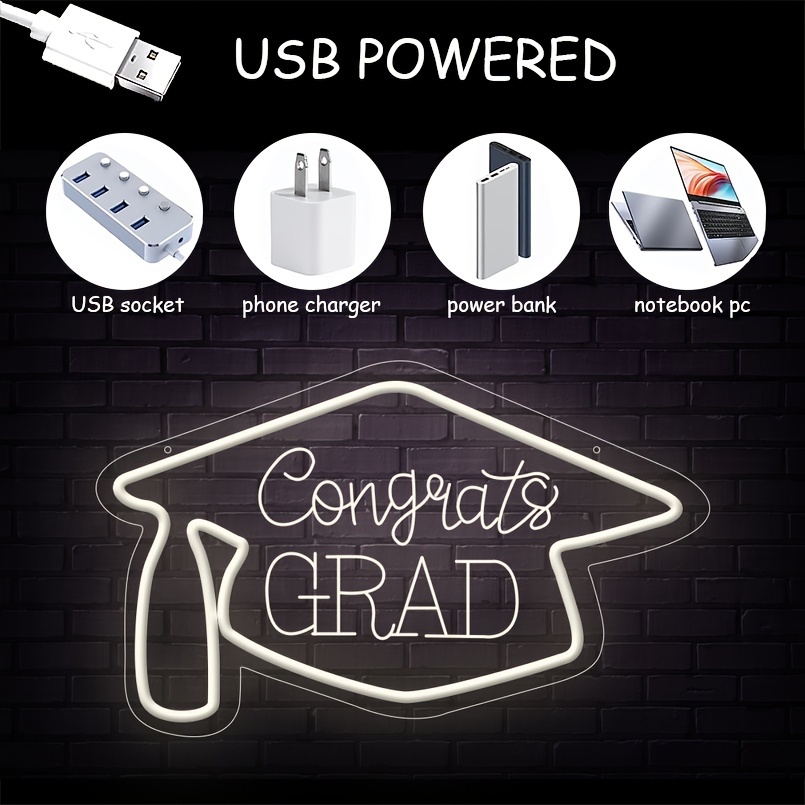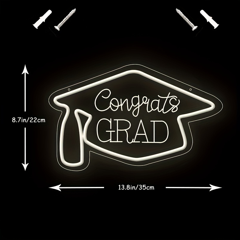 1 pc Congrats Grad LED Neon Sign, 3D Engraving, Graduation Season Ambiance Wall Decoration Neon Sign for Shop, Graduation Party, Graduation Ceremony, Office, Home, Club, Living Room, Bedroom and Home Wall Decoration, Preferred as Birthday and Holiday Gift for Friends and Family, USB Powered Illuminated Sign Hanging Unit, 5V USB Power Supply