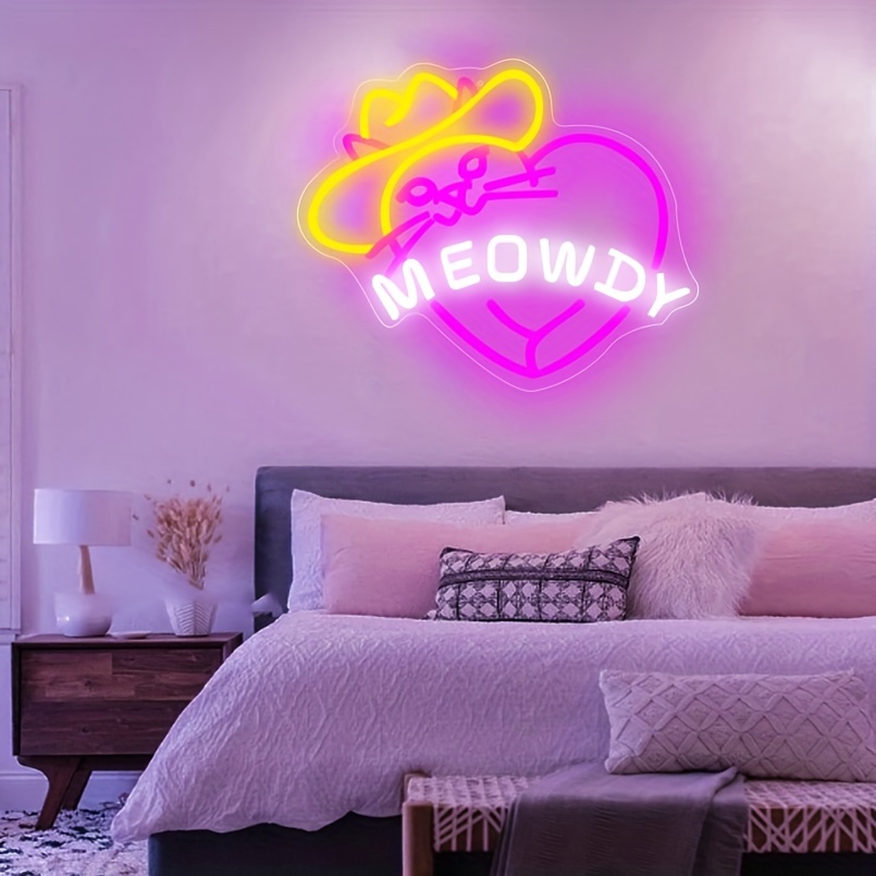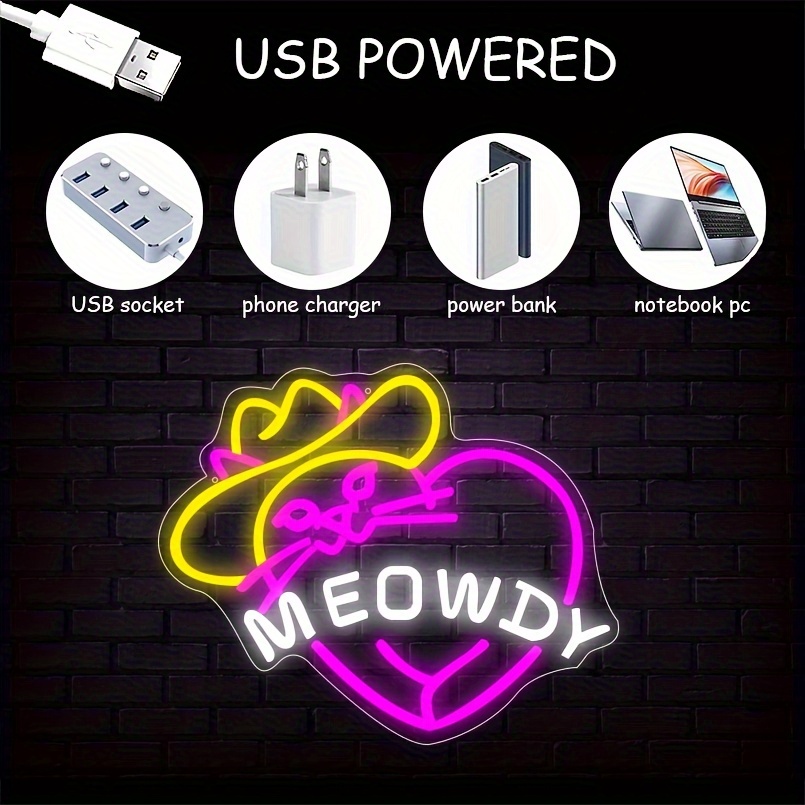 1 pc Cowboy Cat LED Neon Sign, Ambient Wall Decoration Neon Sign for parties, game rooms, homes, clubs, living rooms, bars, bedrooms and home wall decorations, preferred as birthday and holiday gifts for friends and family, USB powered light up sign hanging device, 5V USB power supply