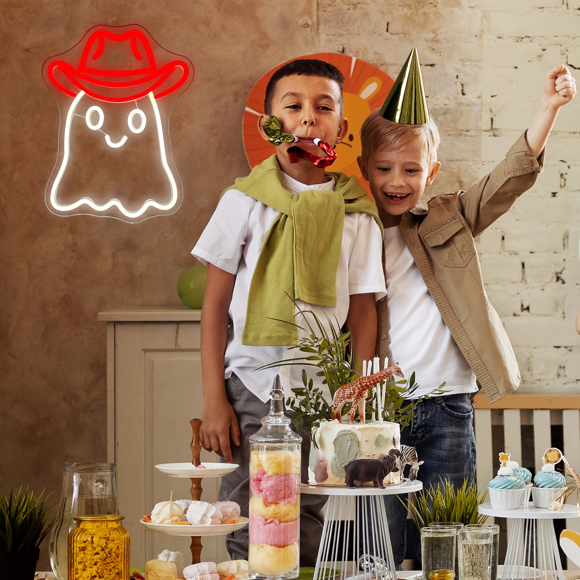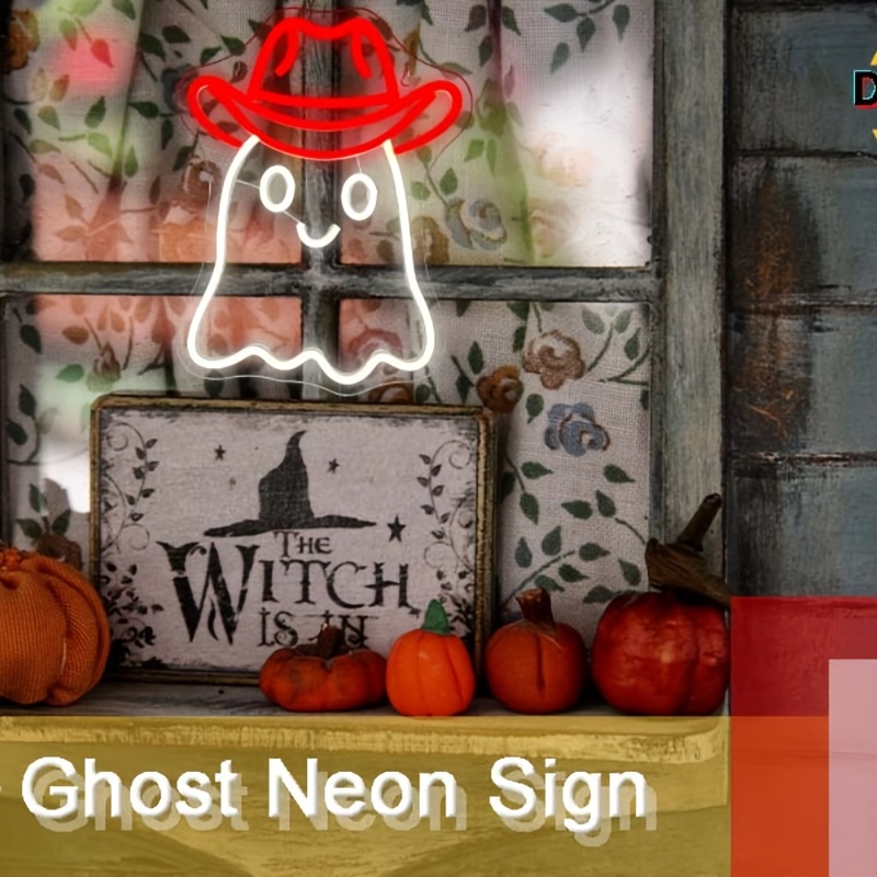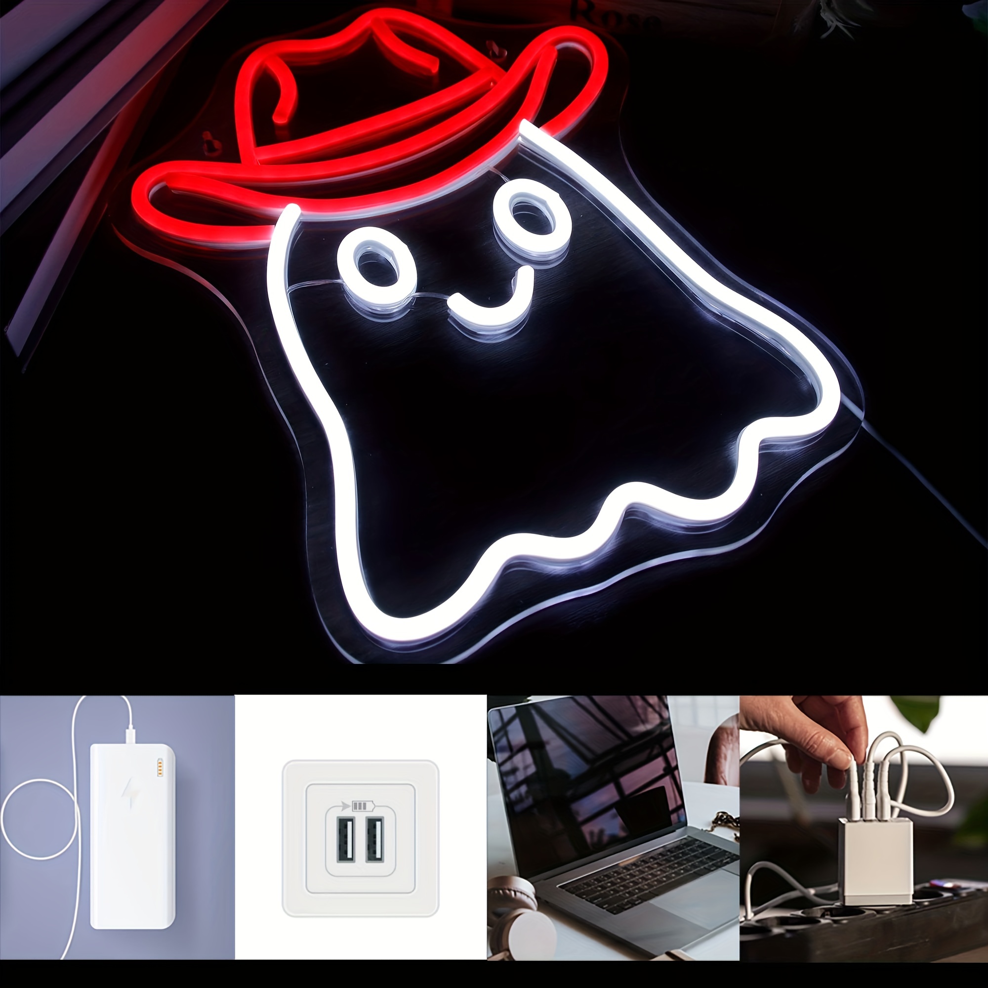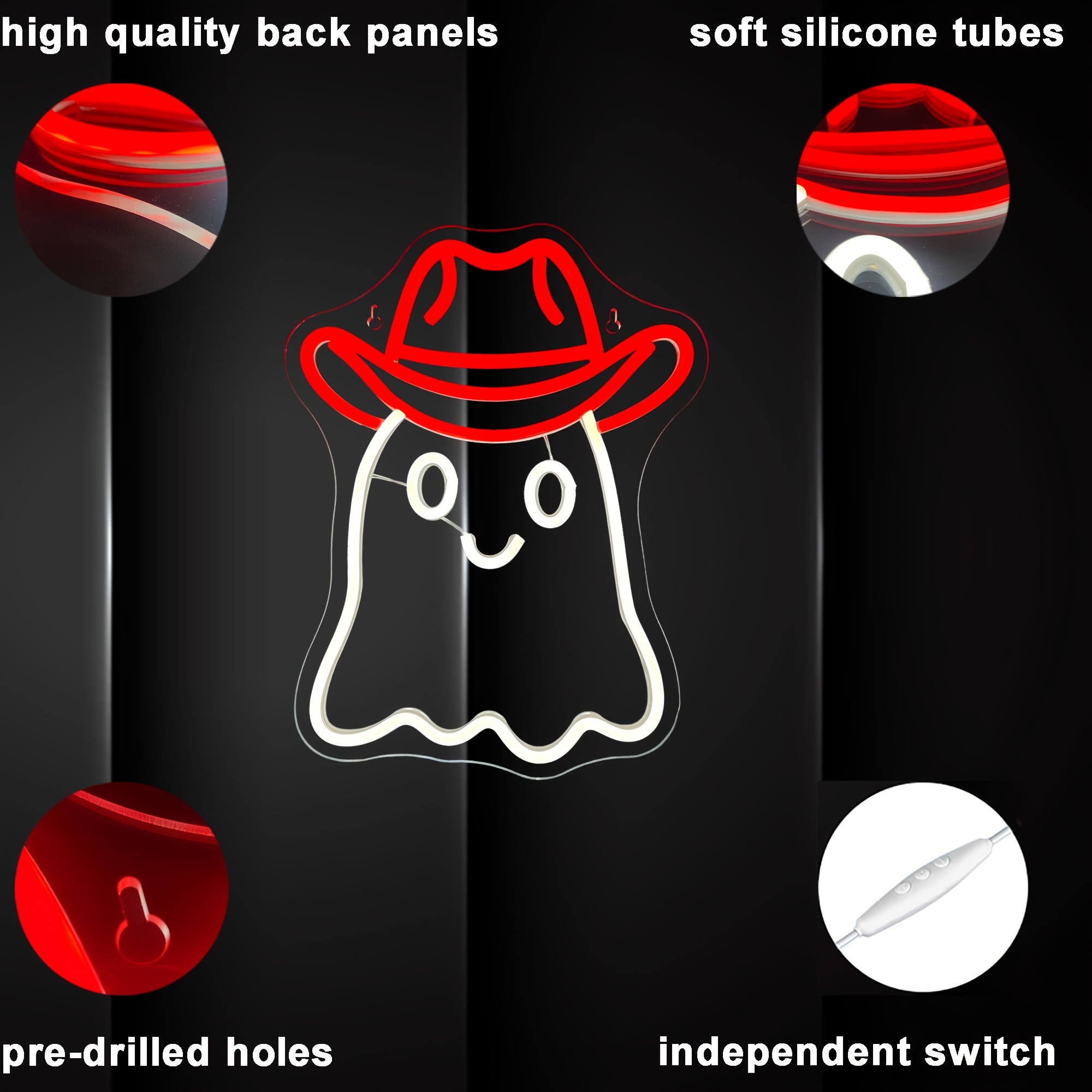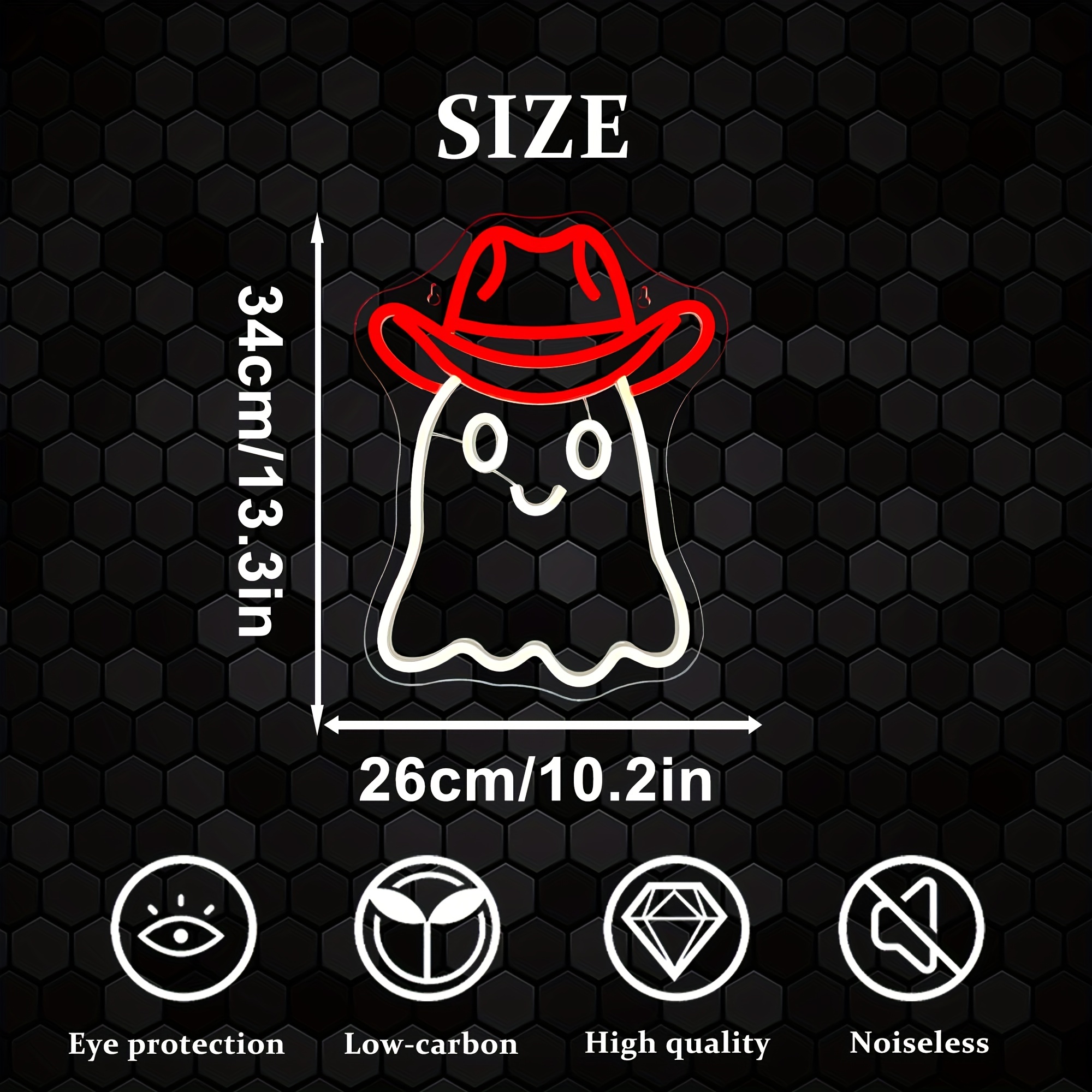 1 pc Cowboy Ghost Halloween Wall Neon Decoration, Dimmable LED Halloween Ambiance Wall Decoration Neon Sign, great for Halloween parties, bedrooms, birthday parties, pubs, shops, games rooms, clubs, rooms, friends party wall decorations, as a friend’s family birthday, Halloween gift first choice, USB powered light up sign hanging unit, 5V USB power supply