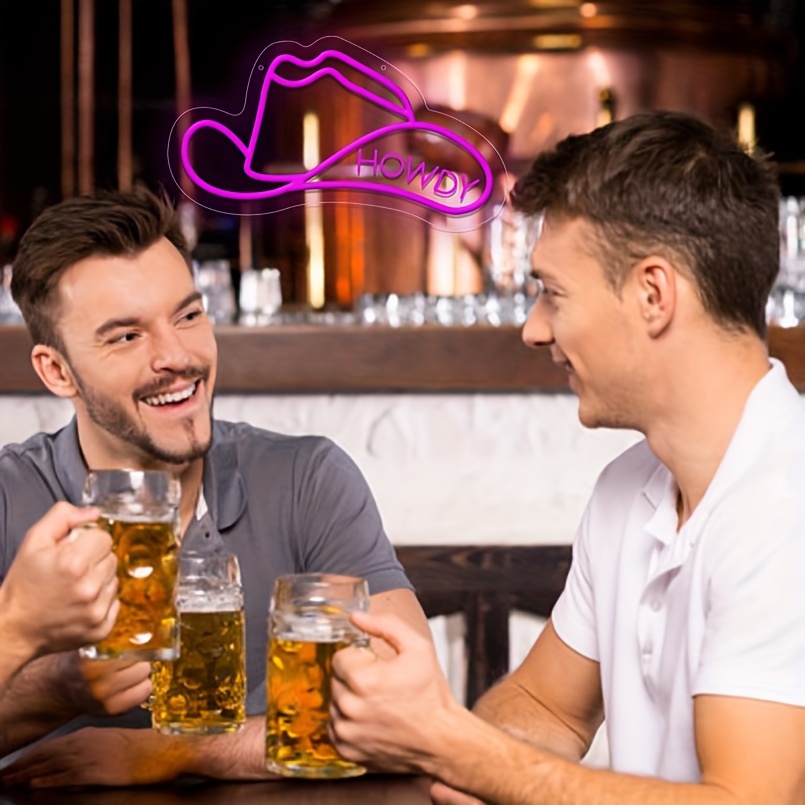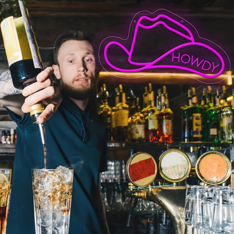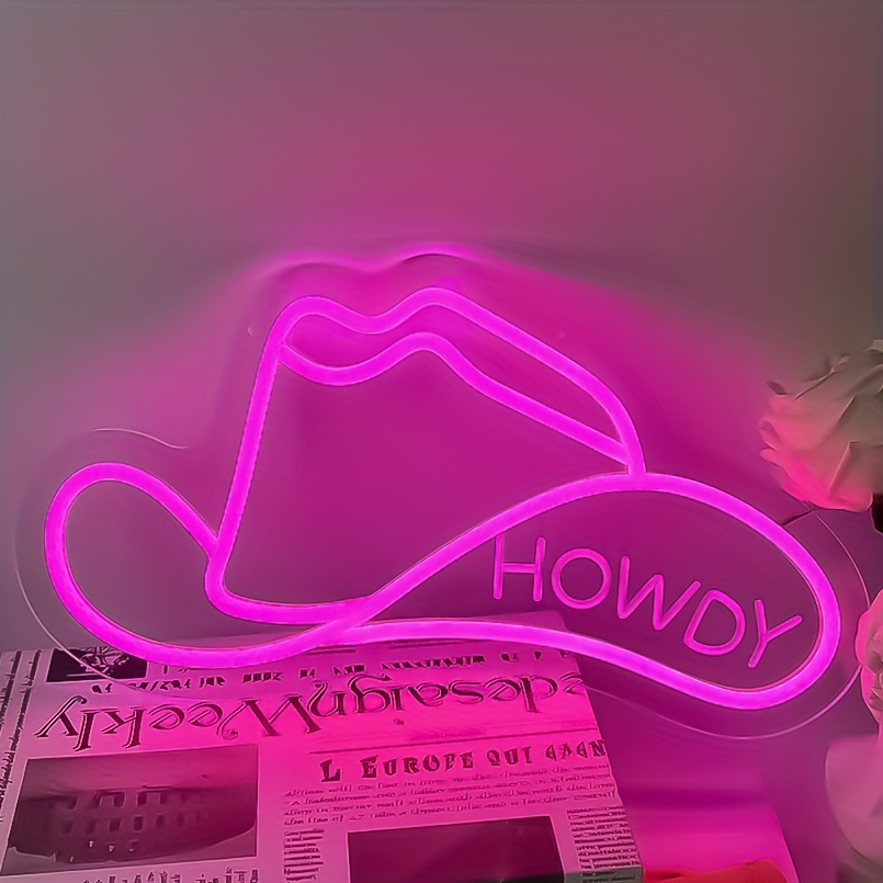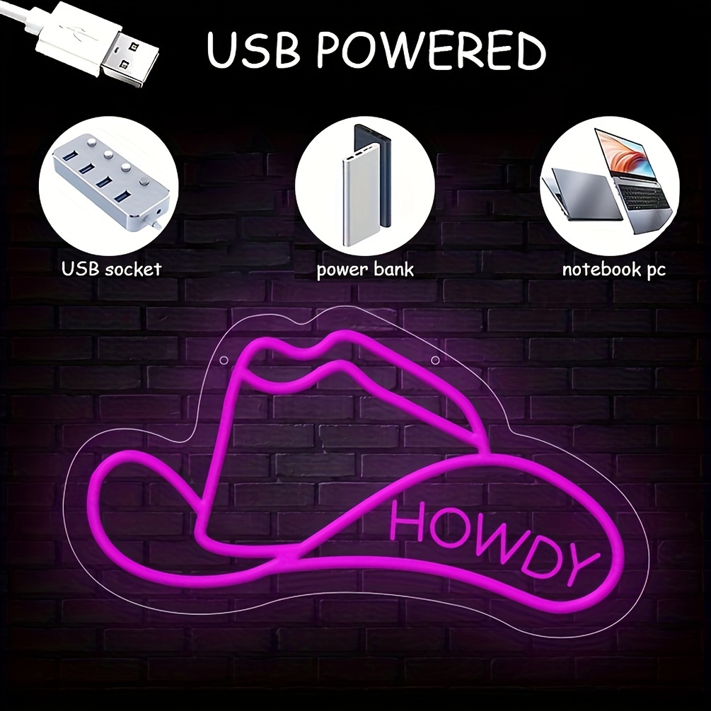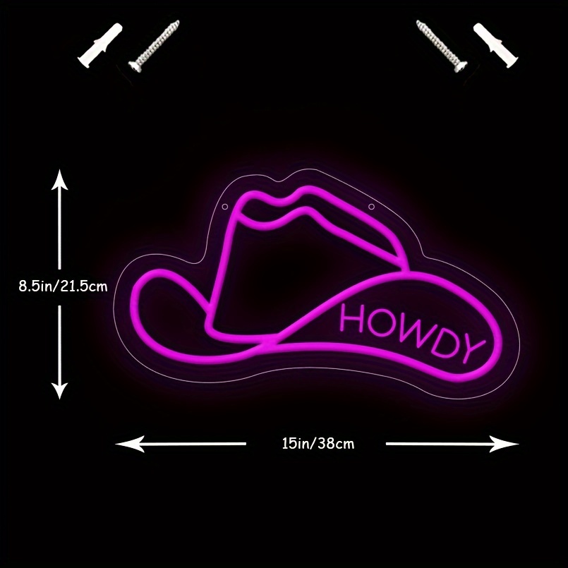 1 pc Cowboy Hat LED Neon Sign, 3D Engraving, Ambient Wall Decoration Neon Sign for AV Room, Party, Office, Game Room, Home, Club, Living Room, Bar, Bedroom and Home Wall Decoration, Preferred as Birthday and Holiday Gift for Friends and Family, USB Powered Illuminated Sign Hanging Unit, 5V USB Power Supply