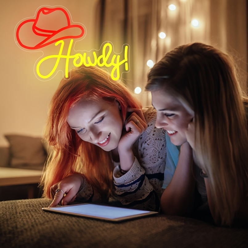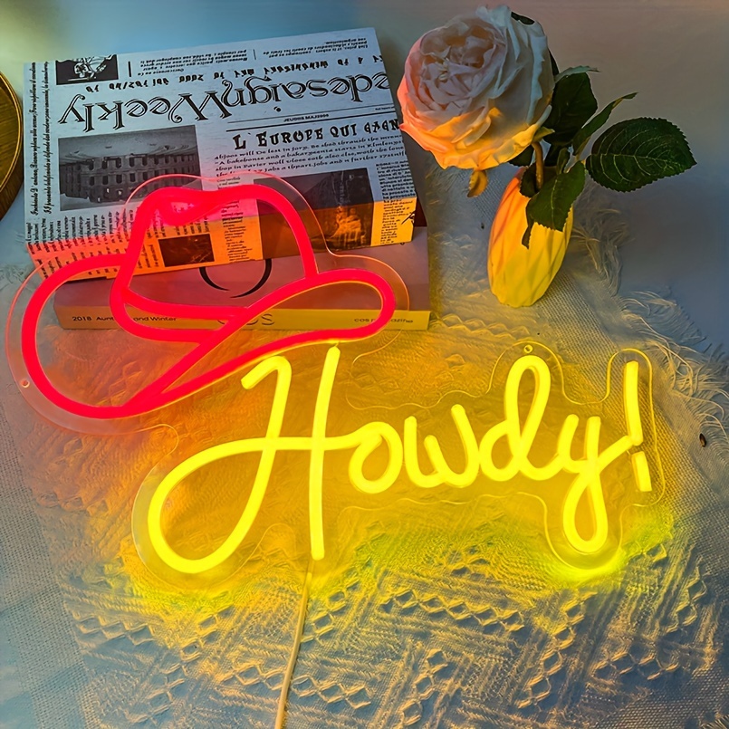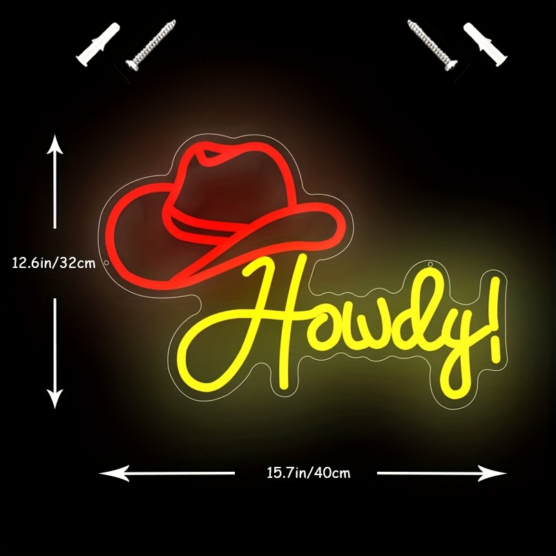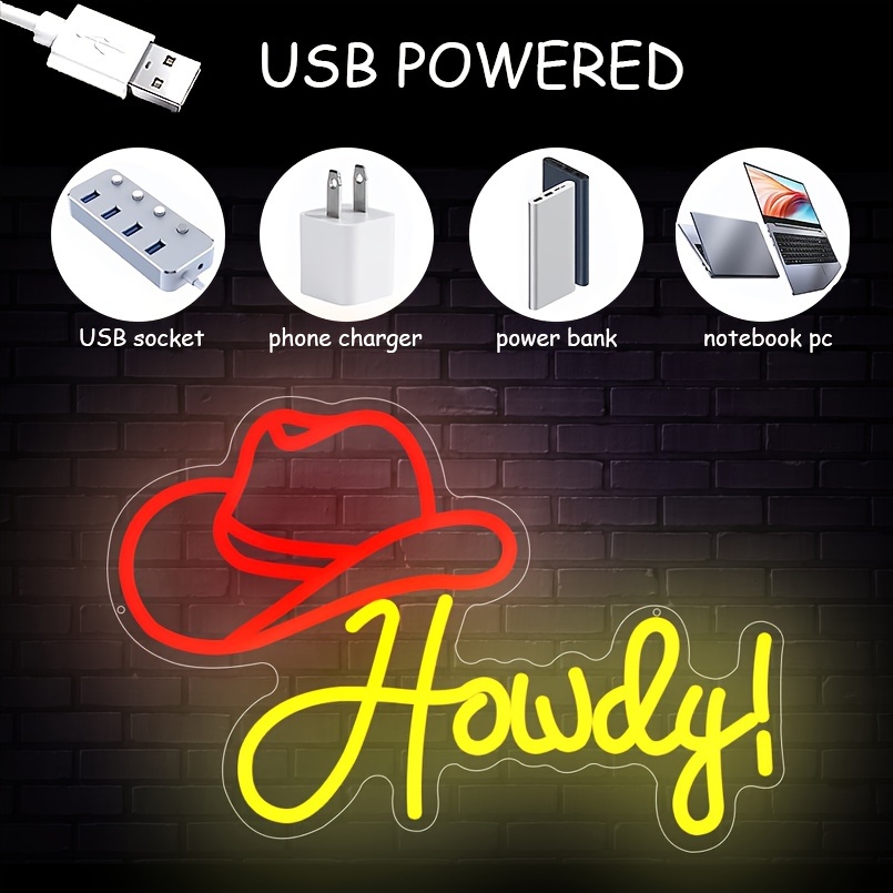 1 pc Cowboy Hat LED Neon Sign, Ambient Wall Decoration Neon Sign for Theme Parties, Offices, Shops, Game Rooms, Families, Clubs, Living Rooms, Bars, Bedrooms and Home Wall Decorations, Preferred as Friends and Family’s Birthdays, Thanksgiving Gifts, USB Powered Illuminated Sign Hanging Unit, 5V USB Power Supply