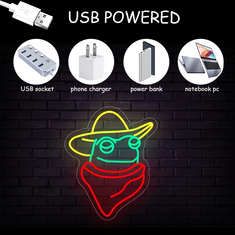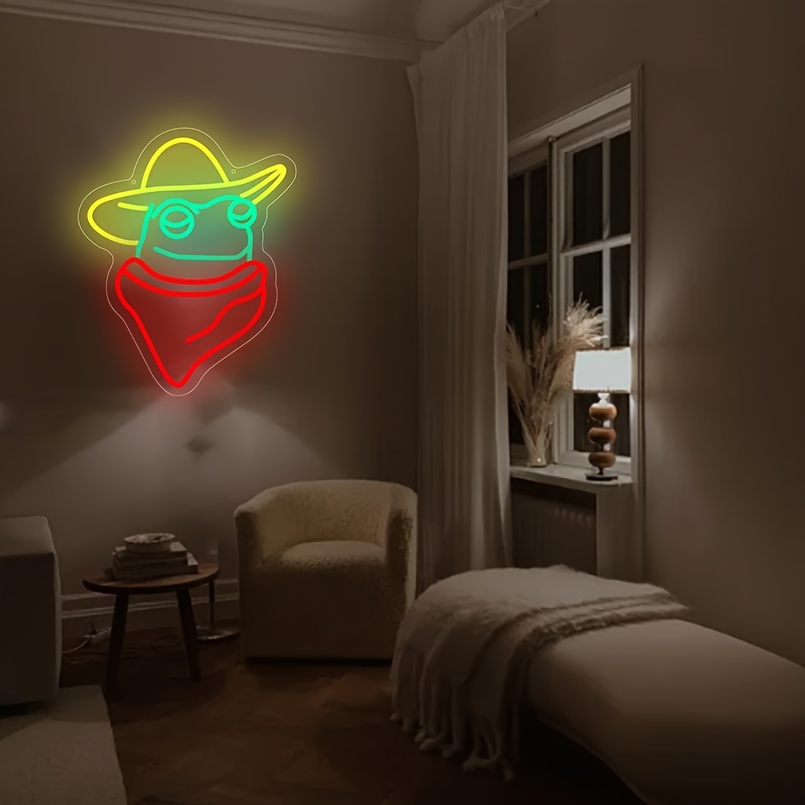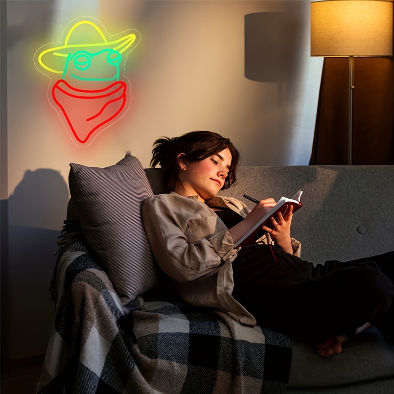 1 pc Cowboy Scarf Frog LED Neon Sign, Ambient Wall Decoration Neon Sign for Party, Office, Game Room, Home, Club, Living Room, Bar, Bedroom and Home Wall Decoration, Preferred for Friends and Family’s Birthday, Holiday Gift, USB Powered Illuminated Sign Hanging Unit, 5V USB Power Supply