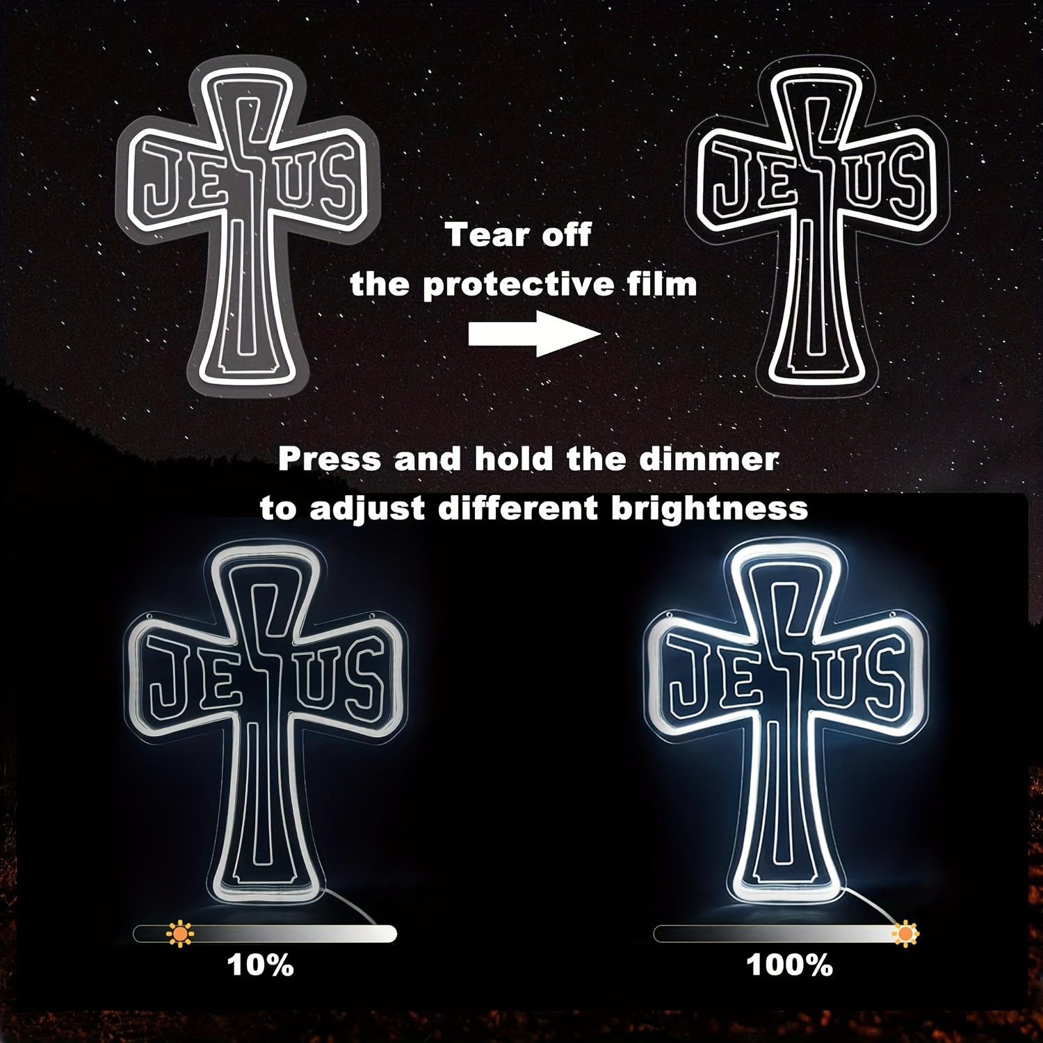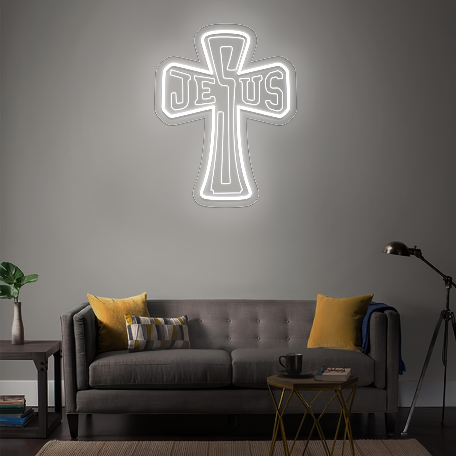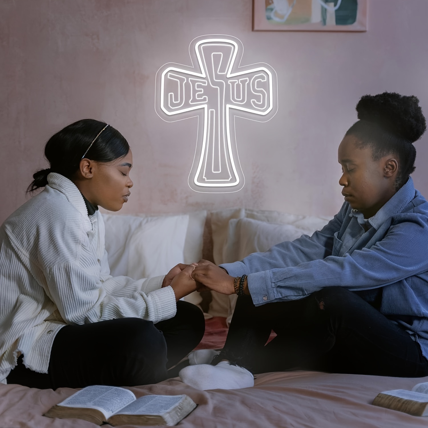 1 pc Cross LED Neon Sign, 3D Engraving, Ambient Wall Decoration Neon Sign for Wedding, Party, Christmas, Easter, Bar, Office, Home, Club, Living Room, Bedroom and Home Wall Decoration, Preferred as Birthday, Holiday Gift for Friends and Family, USB Powered Illuminated Sign Hanging Unit, 5V USB Power Supply