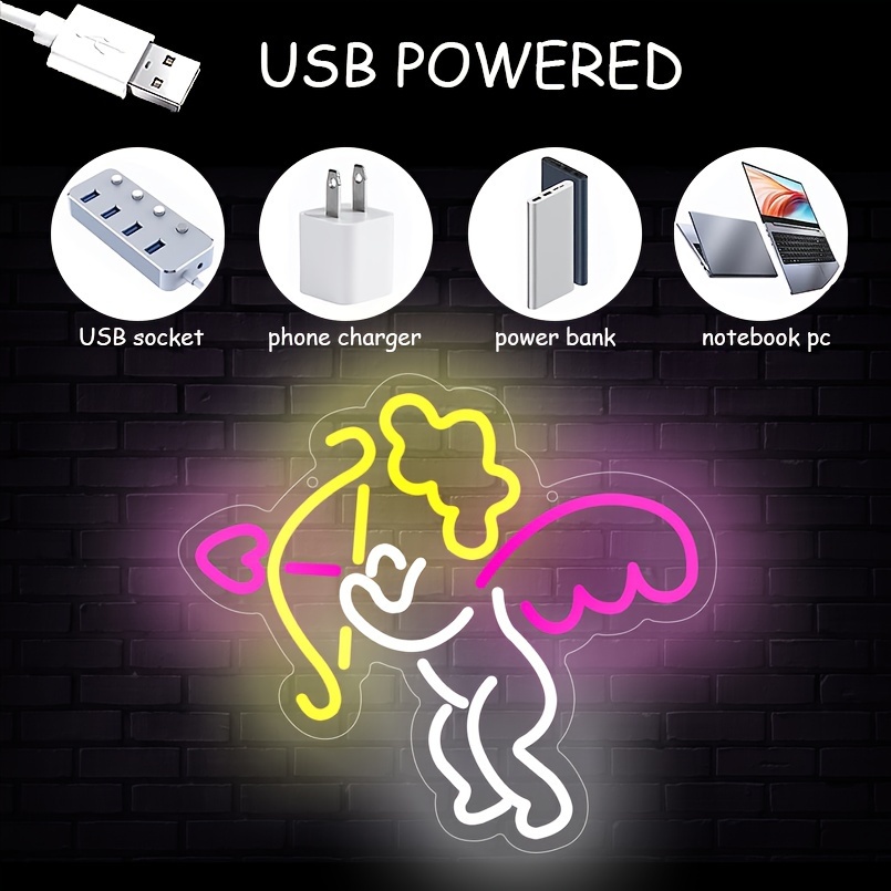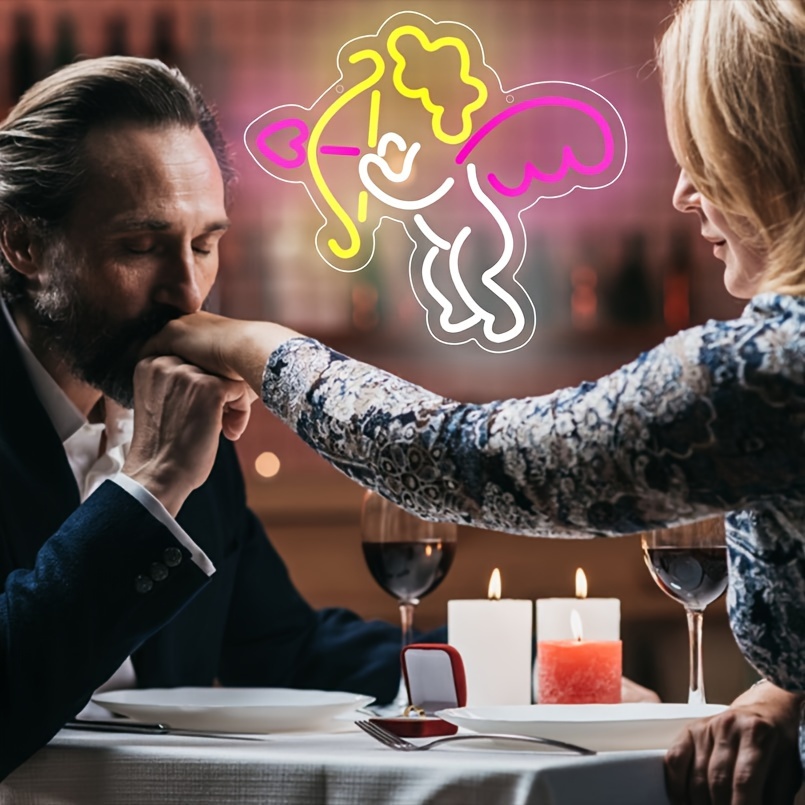 1 pc Cupid Angel LED neon sign, ambient wall decoration neon sign for parties, weddings, homes, clubs, living rooms, bars, bedrooms and home wall decorations, preferred as birthday and holiday gifts for friends and family, USB powered illuminated sign hanging device, 5V USB power supply
