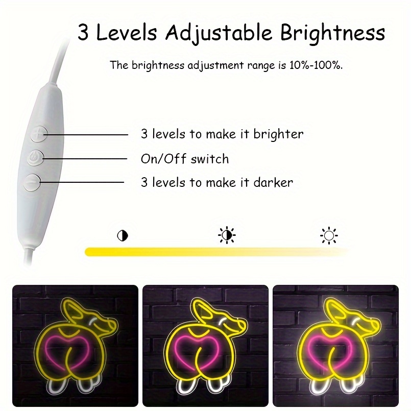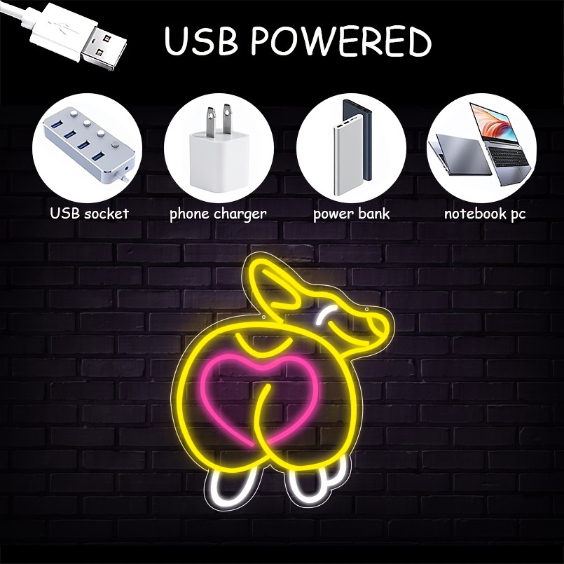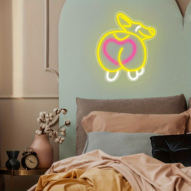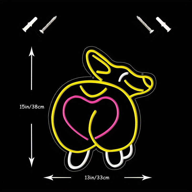 1 pc Cute Corgi Butt LED Neon Sign, Ambient Wall Decoration Neon Sign for Pet Shop, Party, Game Room, Family, Living Room, Bar, Club, Bedroom and Home Wall Decoration, Preferred as Birthday and Holiday Gifts for Friends and Family, USB Powered Illuminated Sign Hanging Unit, 5V USB Power Supply