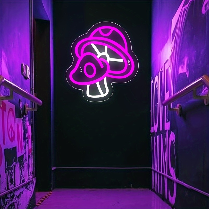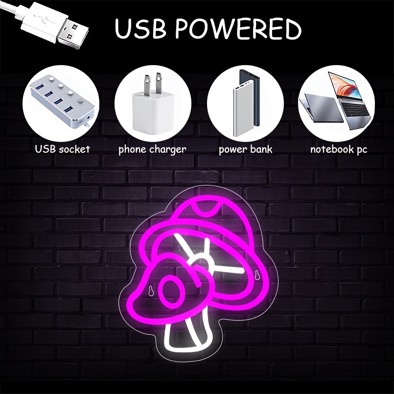 1 pc Cute Mushroom LED Neon Sign, Ambient Wall Decoration Neon Sign for parties, game rooms, homes, clubs, living rooms, bars, bedrooms and home wall decorations, preferred as birthday and holiday gifts for friends and family, USB Powered Illuminated Sign Hanging Unit, 5V USB Power Supply