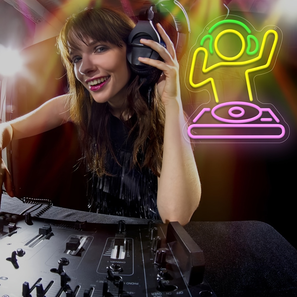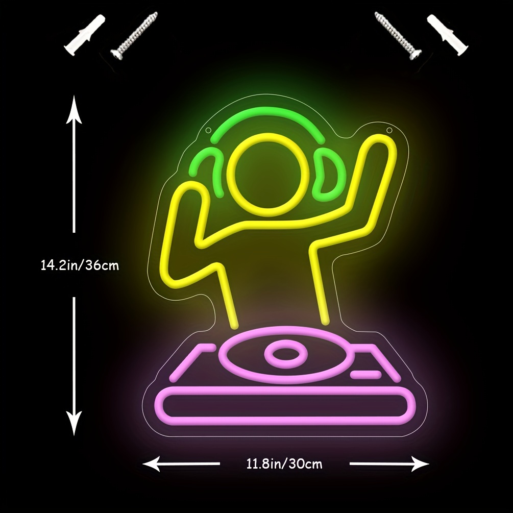 1 pc DJ player neon LED sign, Men’s cave neon sign for bars, Cute anime dimmable LED neon lights, great for parties, bedrooms, bars, shops, rooms, friends party wall decorations, USB powered illuminated sign hanging device, 5V USB power supply
