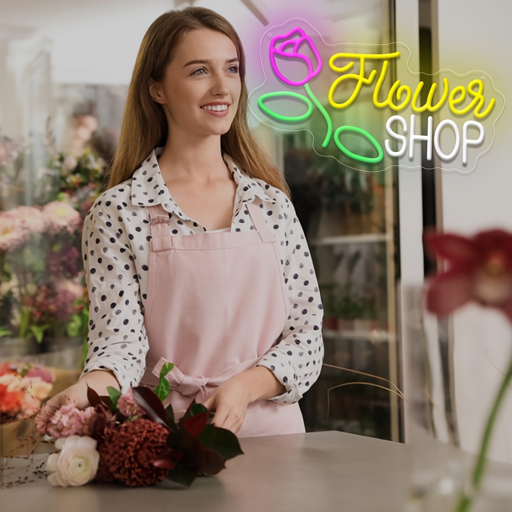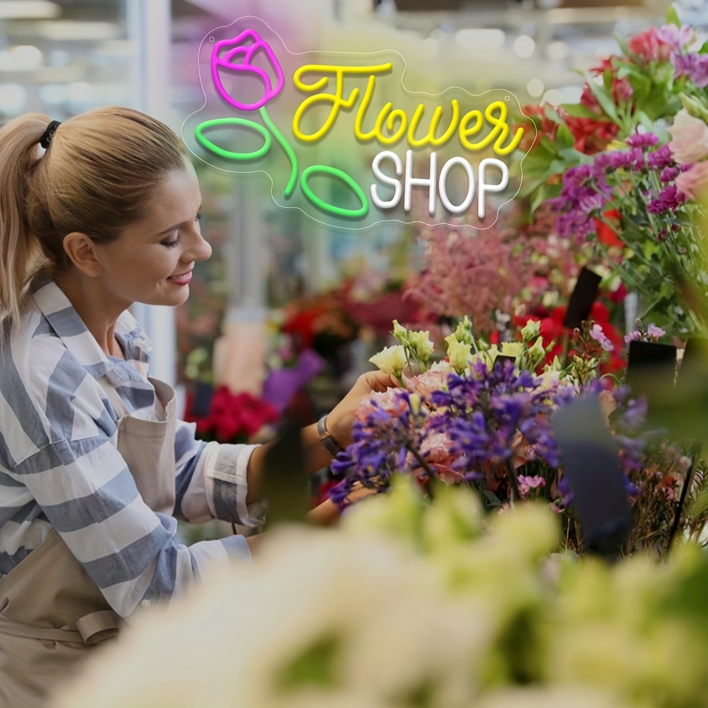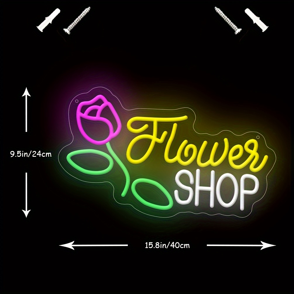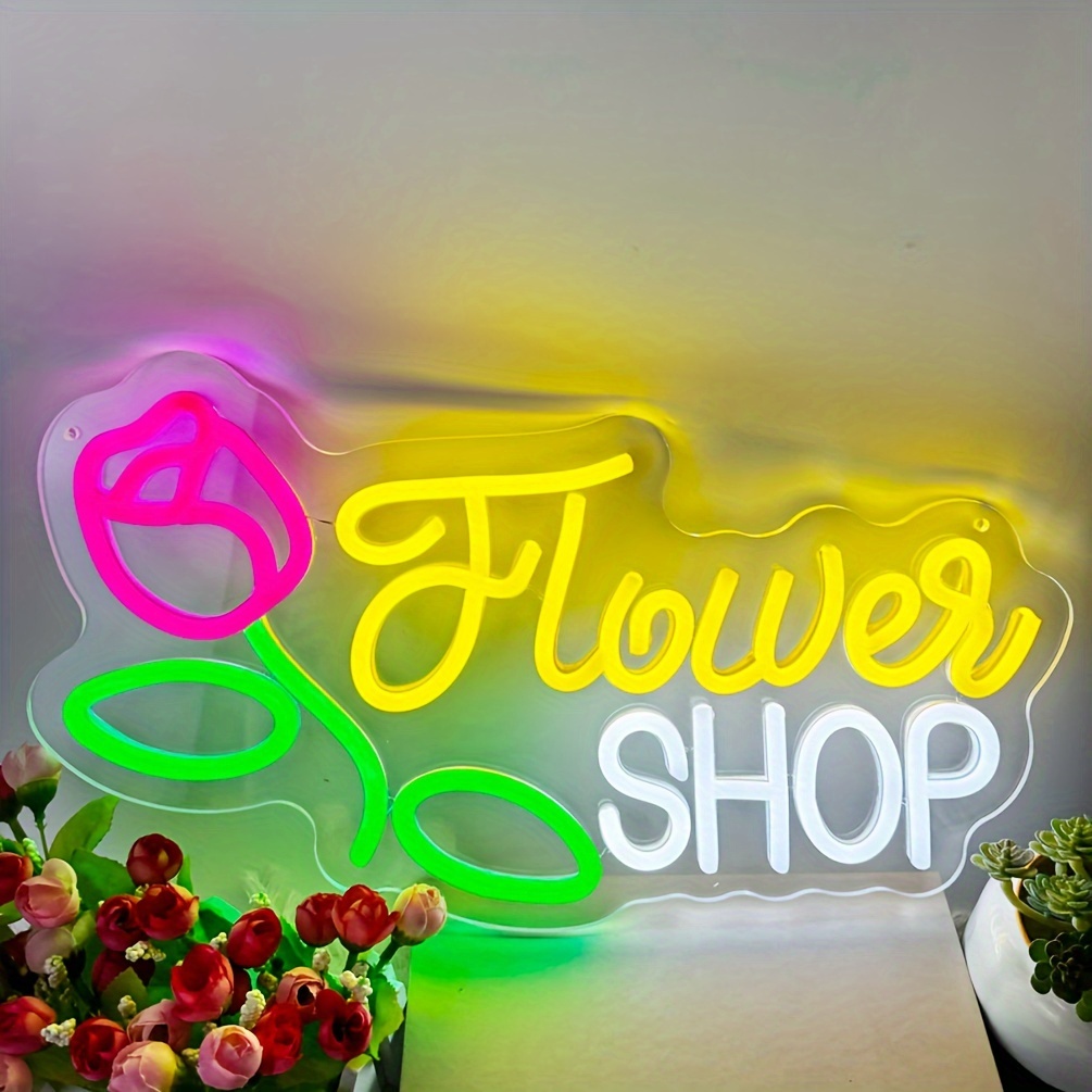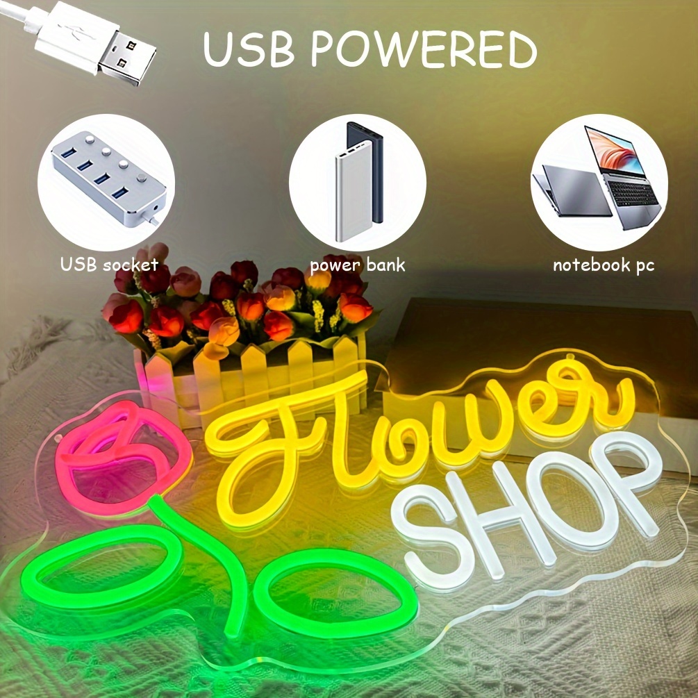 1 pc Flower Shop Decorative Wall Art Neon LED Sign, great for party, bedroom, cave beer bar, restaurant, shop, room, friends gathering wall decoration, USB powered light up sign hanging device, wall mounted LED lights, 5V USB power supply