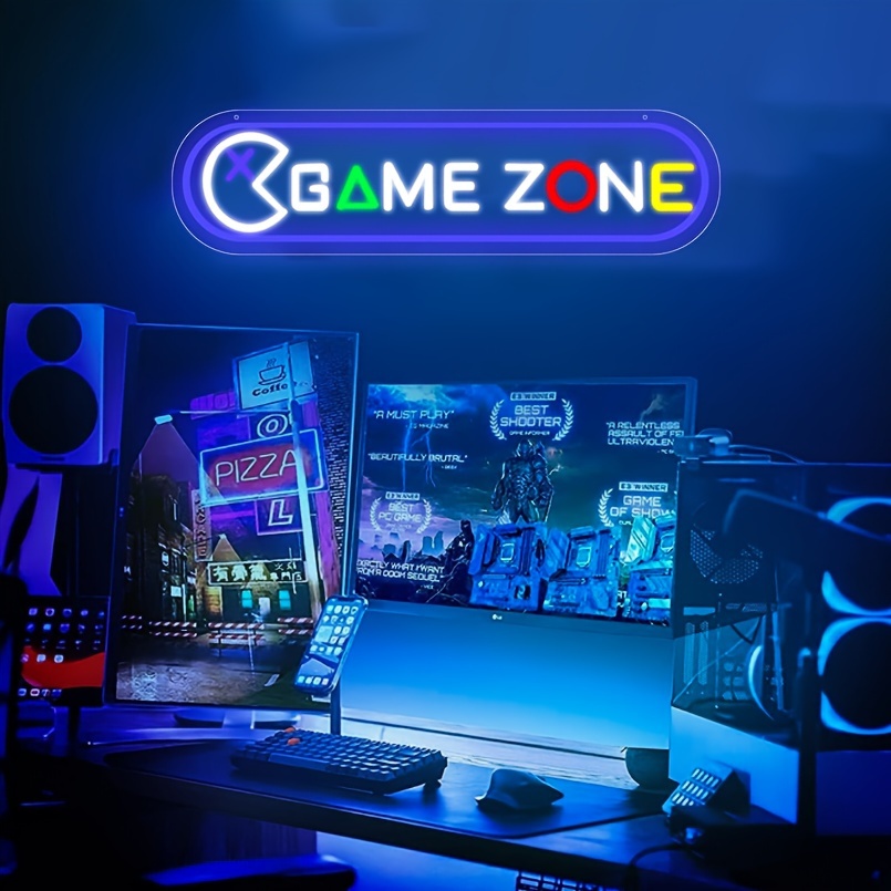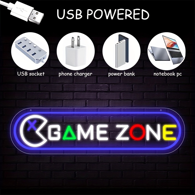 1 PC GAME ZONE LED NEON SIGN, WALL DECOR NEON SIGN FOR HOME, LIVING ROOM, GAME ROOM, BIRTHDAY PARTY GIFTS, BEDROOM AND HOME WALL DECOR, 5 V USB POWER SUPPLY