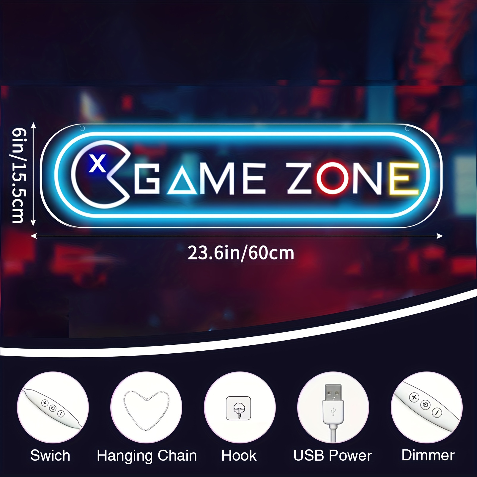 1 pc Game Zone LED Neon Sign, Wall Decor Neon Sign for Home, Living Room, Game Room, Birthday Party Gifts, Bedroom and Home Wall Decor, 5 V USB Power Supply