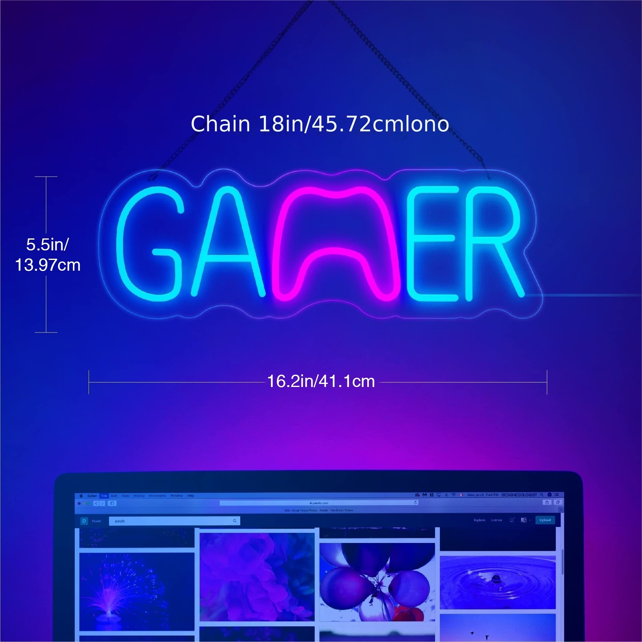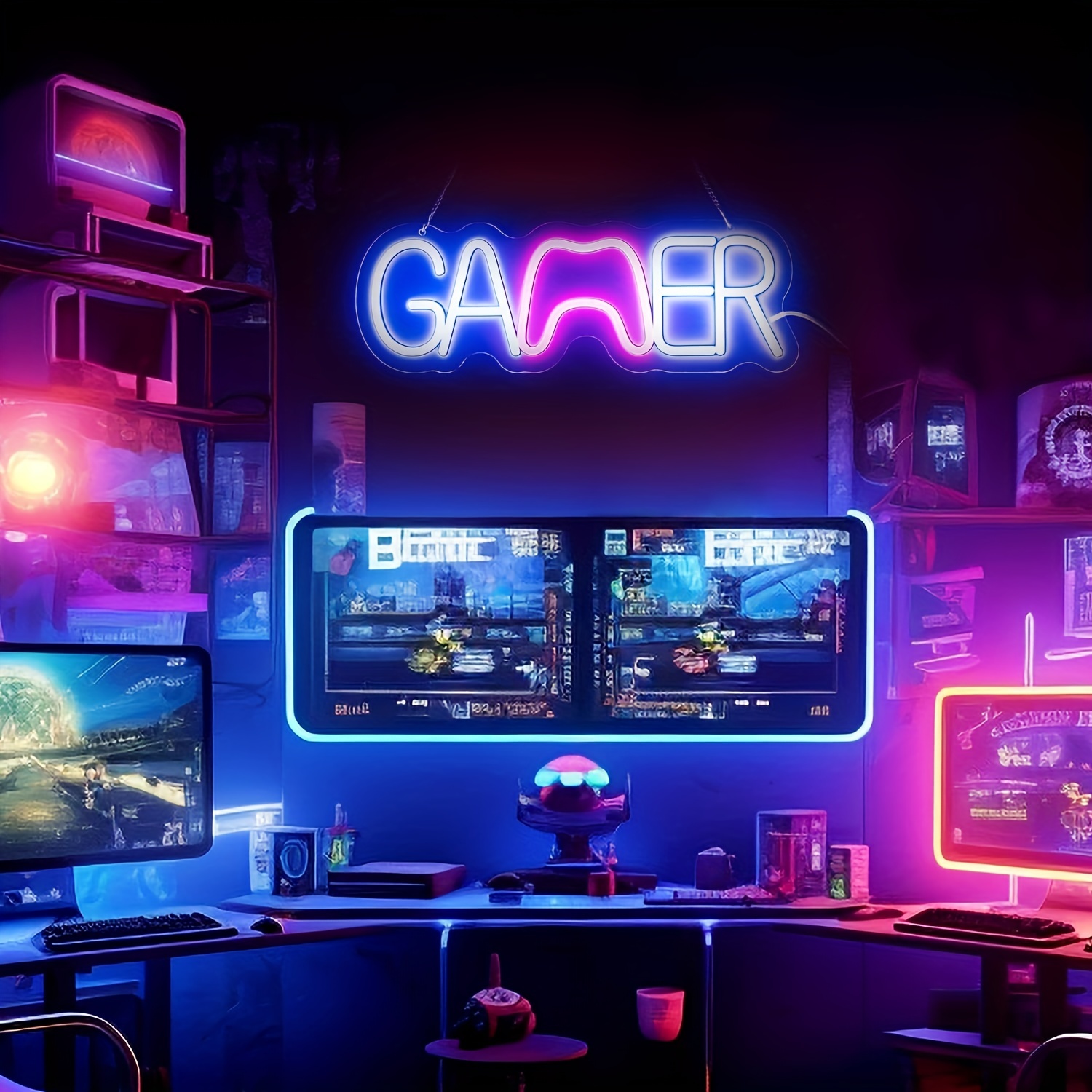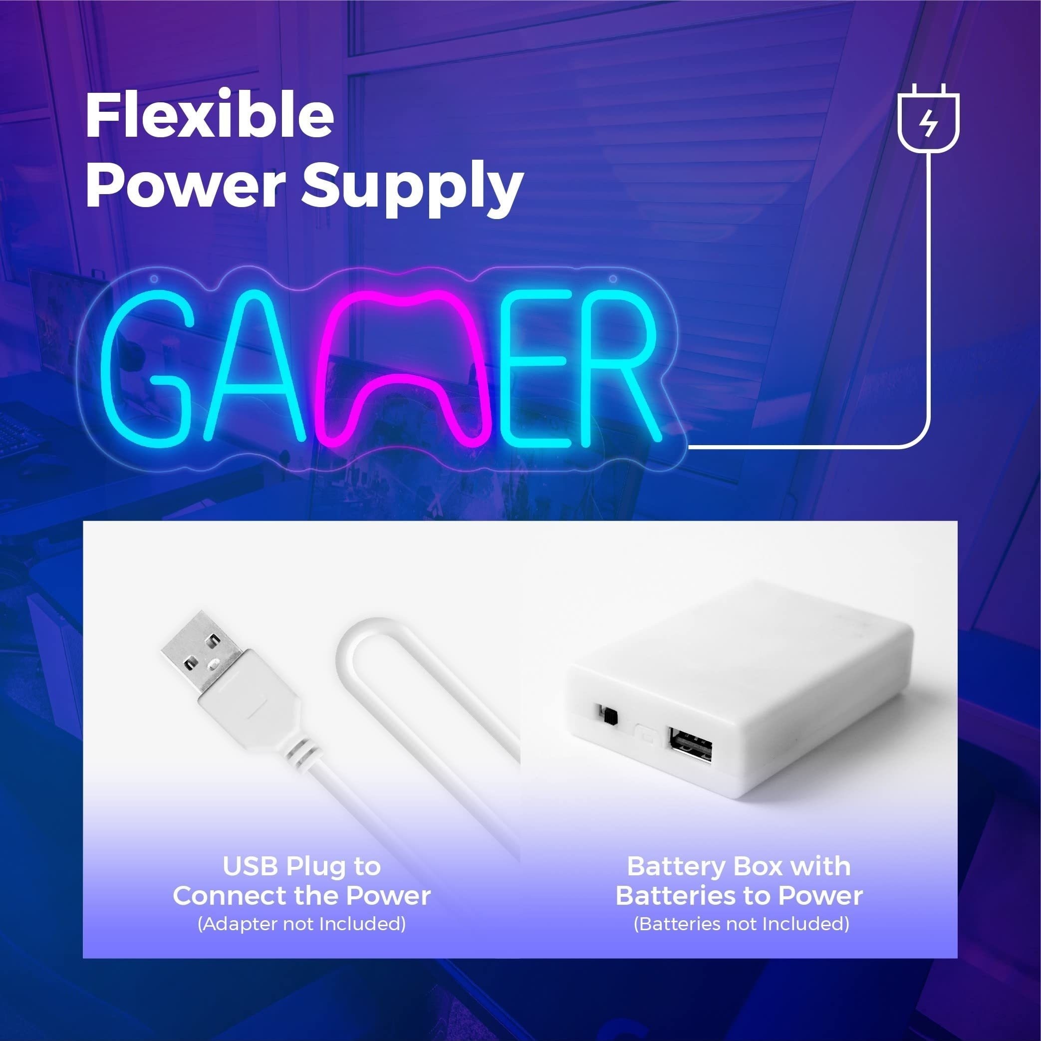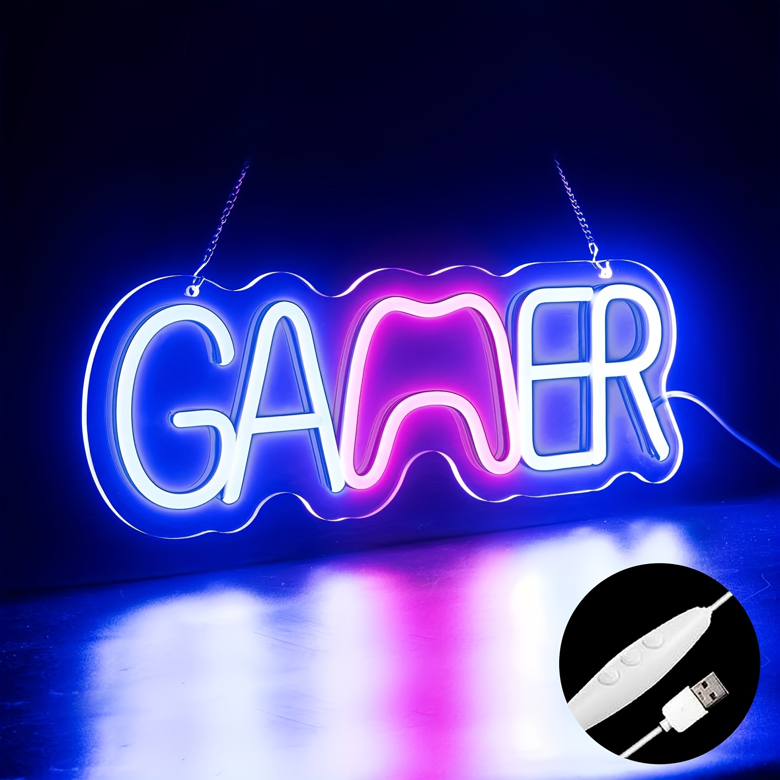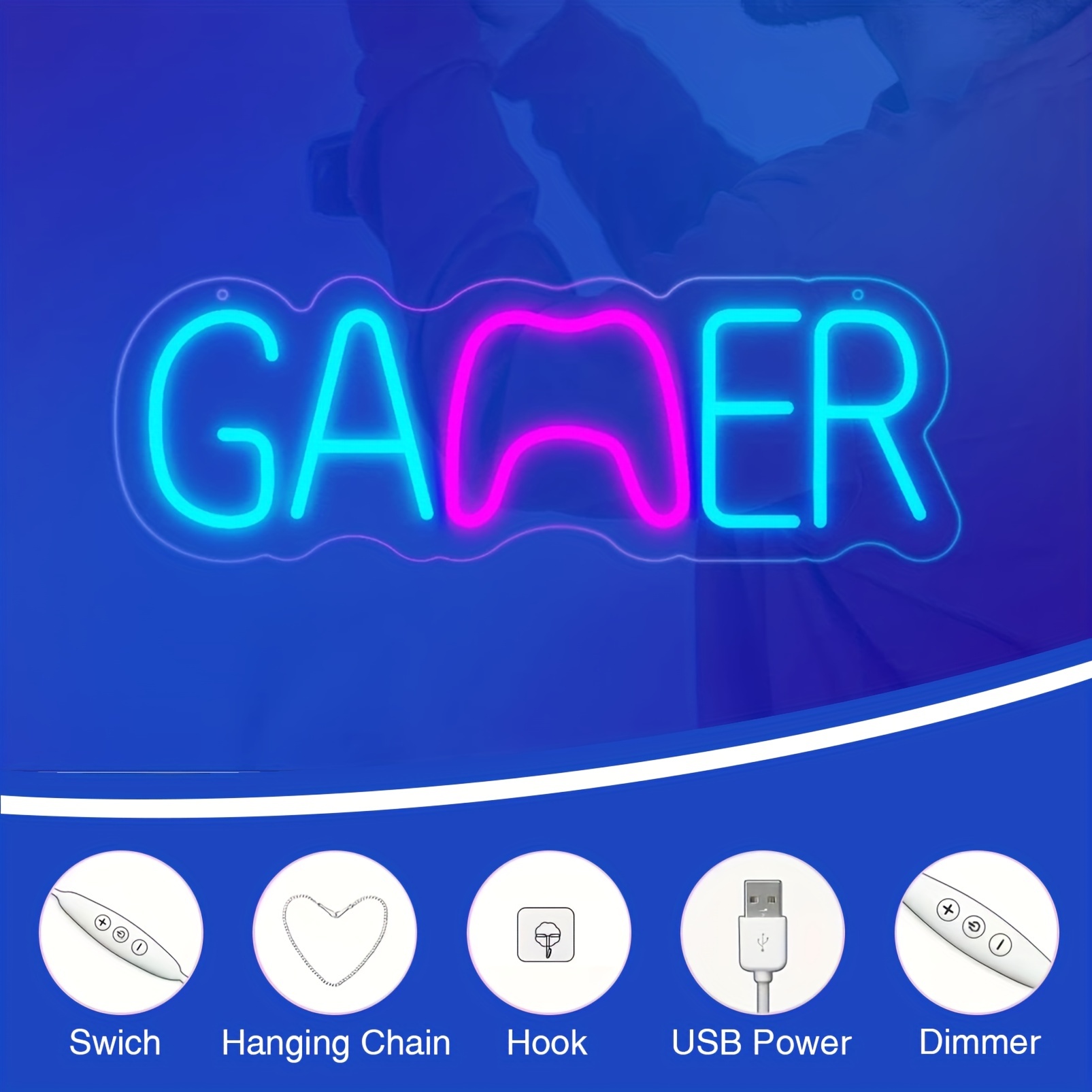 1 pc Gamer LED neon sign, ambient wall decoration neon sign for video game themed parties, game rooms, homes, clubs, living rooms, bars, bedrooms and home wall decorations, preferred as birthday and holiday gifts for friends and family, USB powered light up sign hanging device, 5V USB power supply