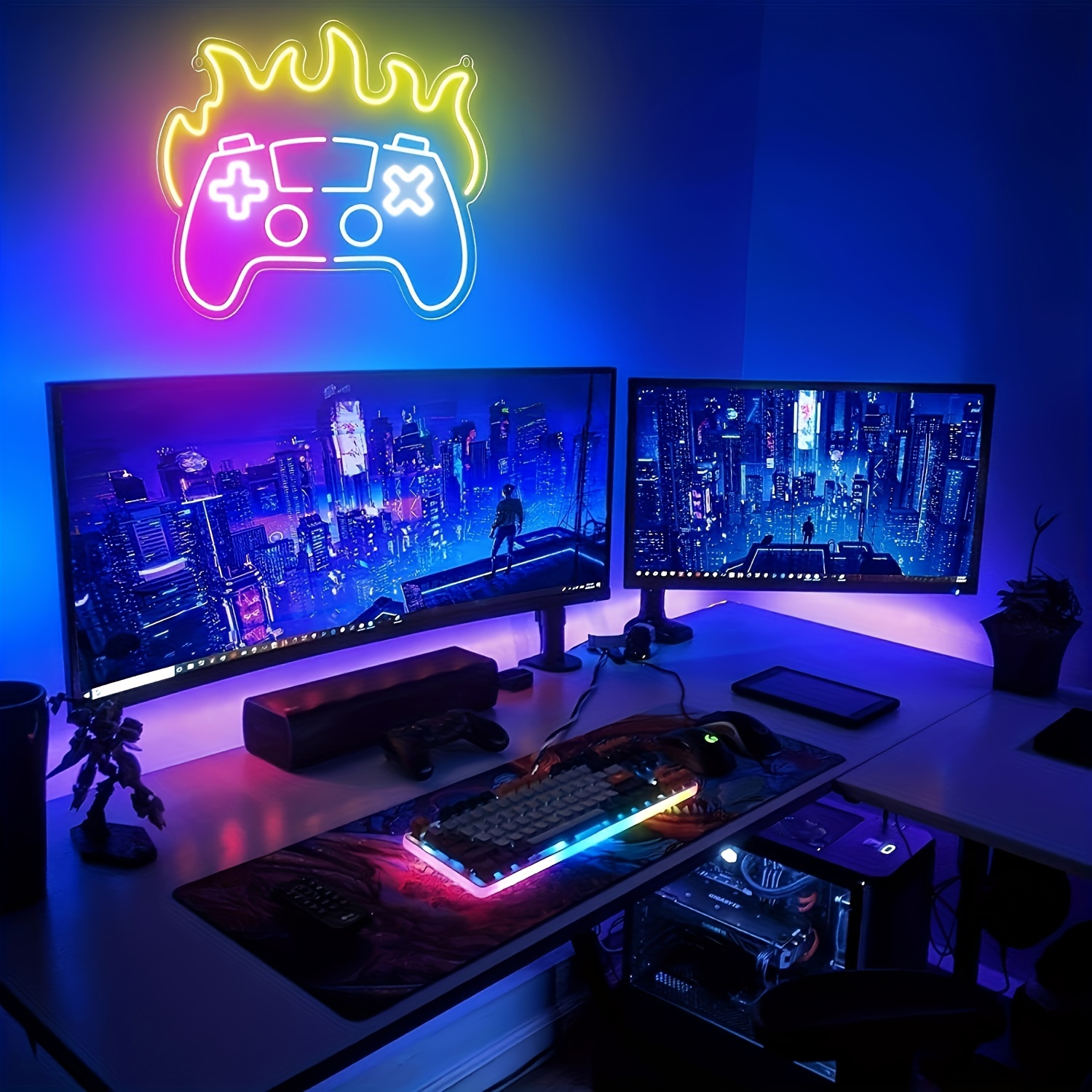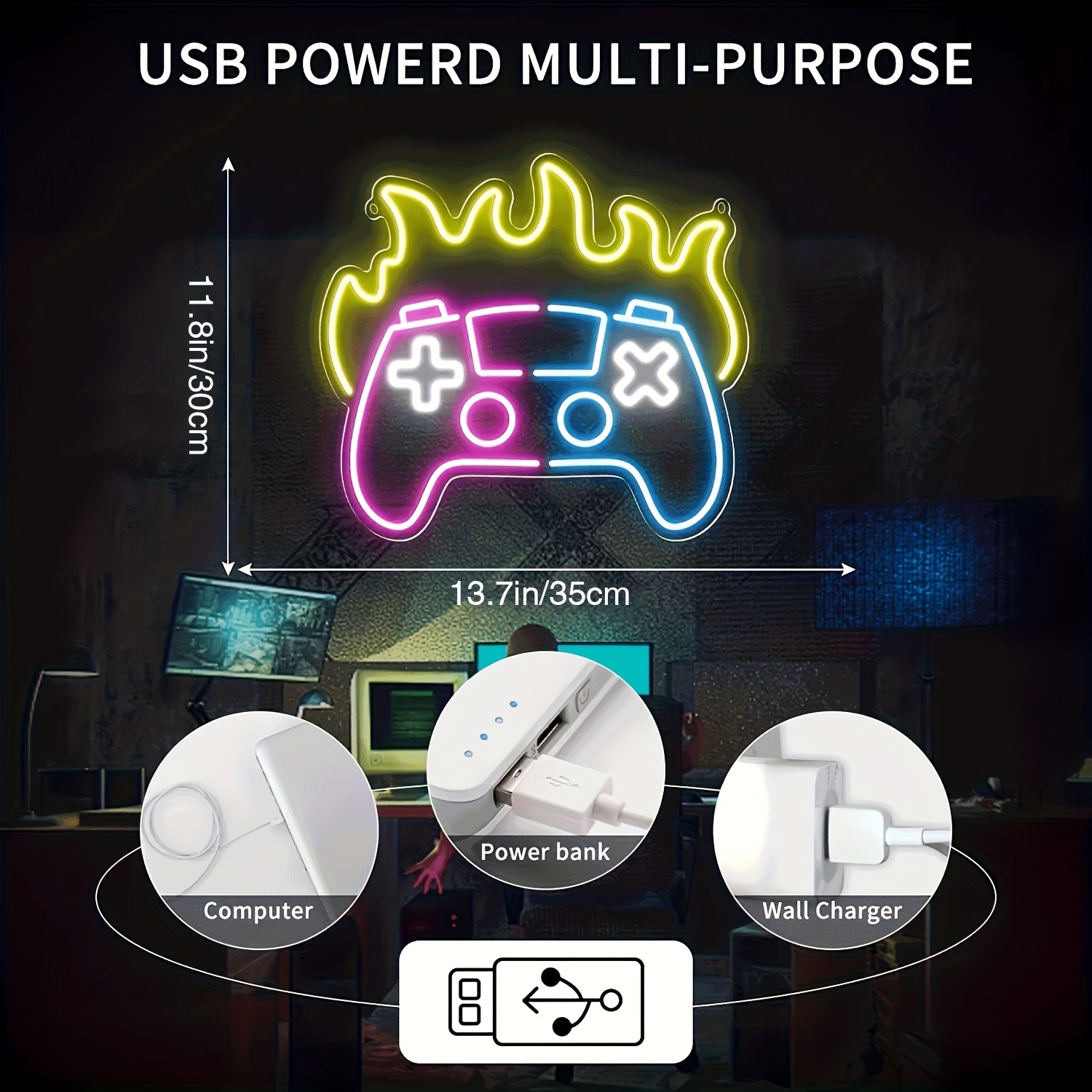 1 pc Gaming LED neon sign, ambient wall decor neon sign for game room, home, party, living room, office, bar, club, as birthday, holiday gift, bedroom and home wall decor neon sign, 5 V USB power supply