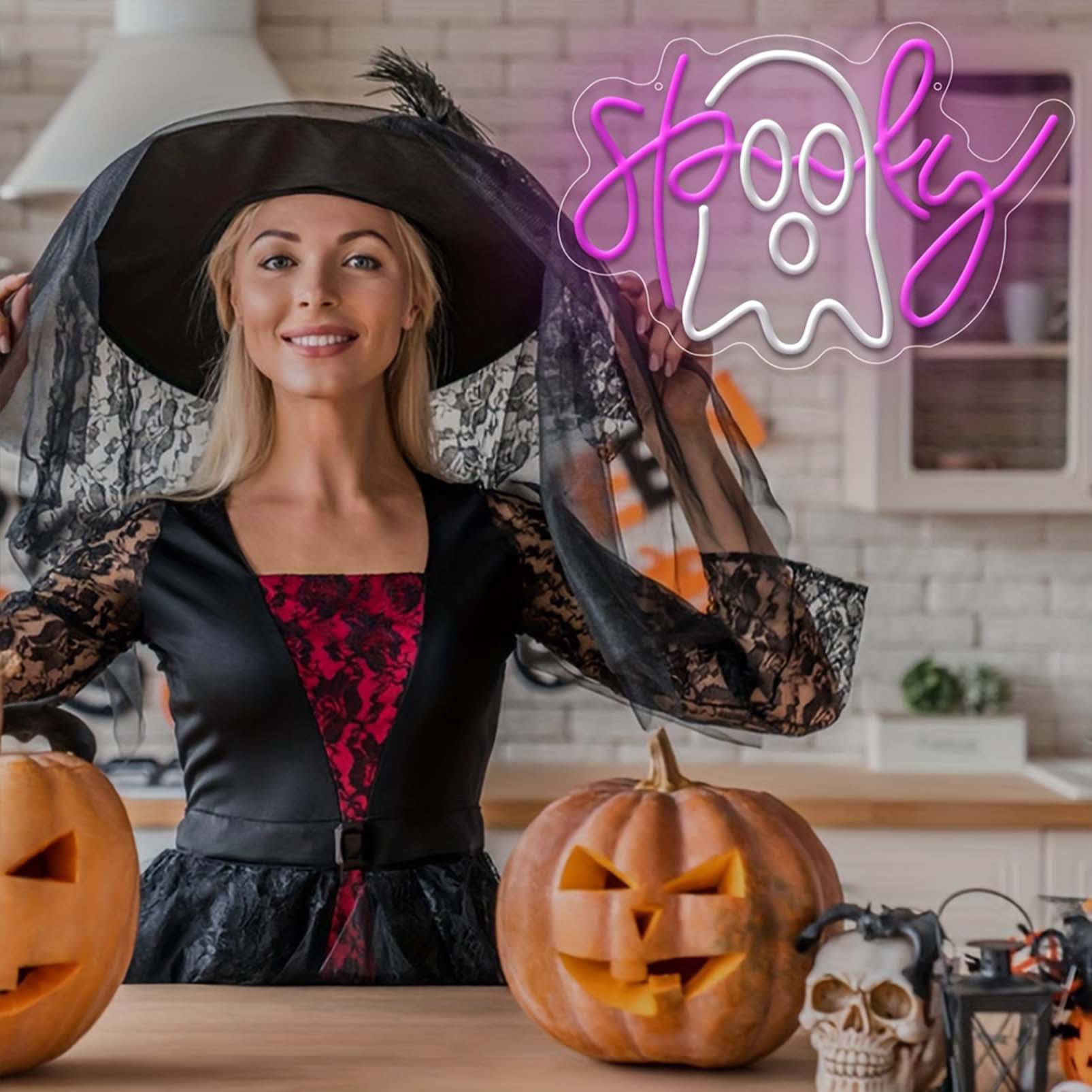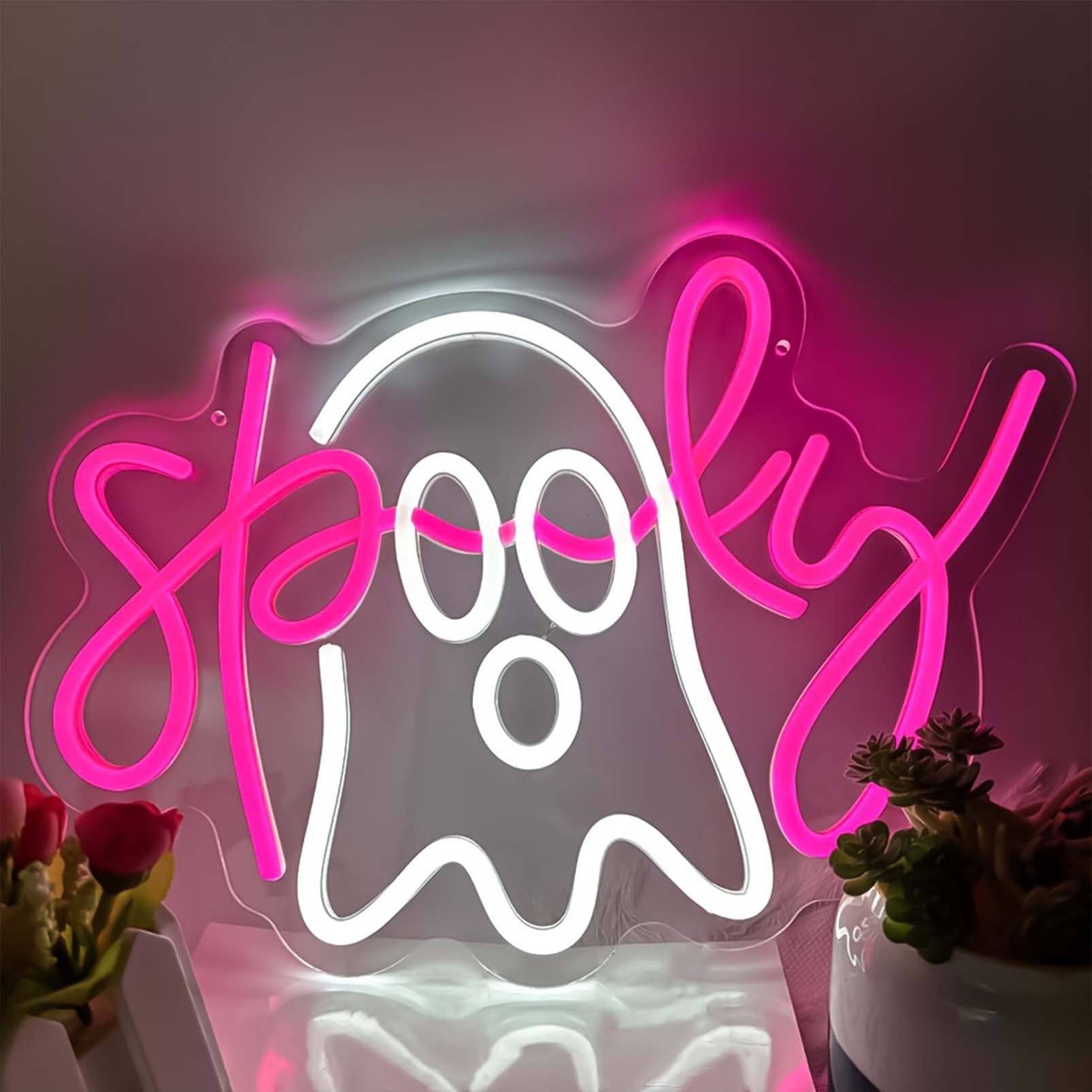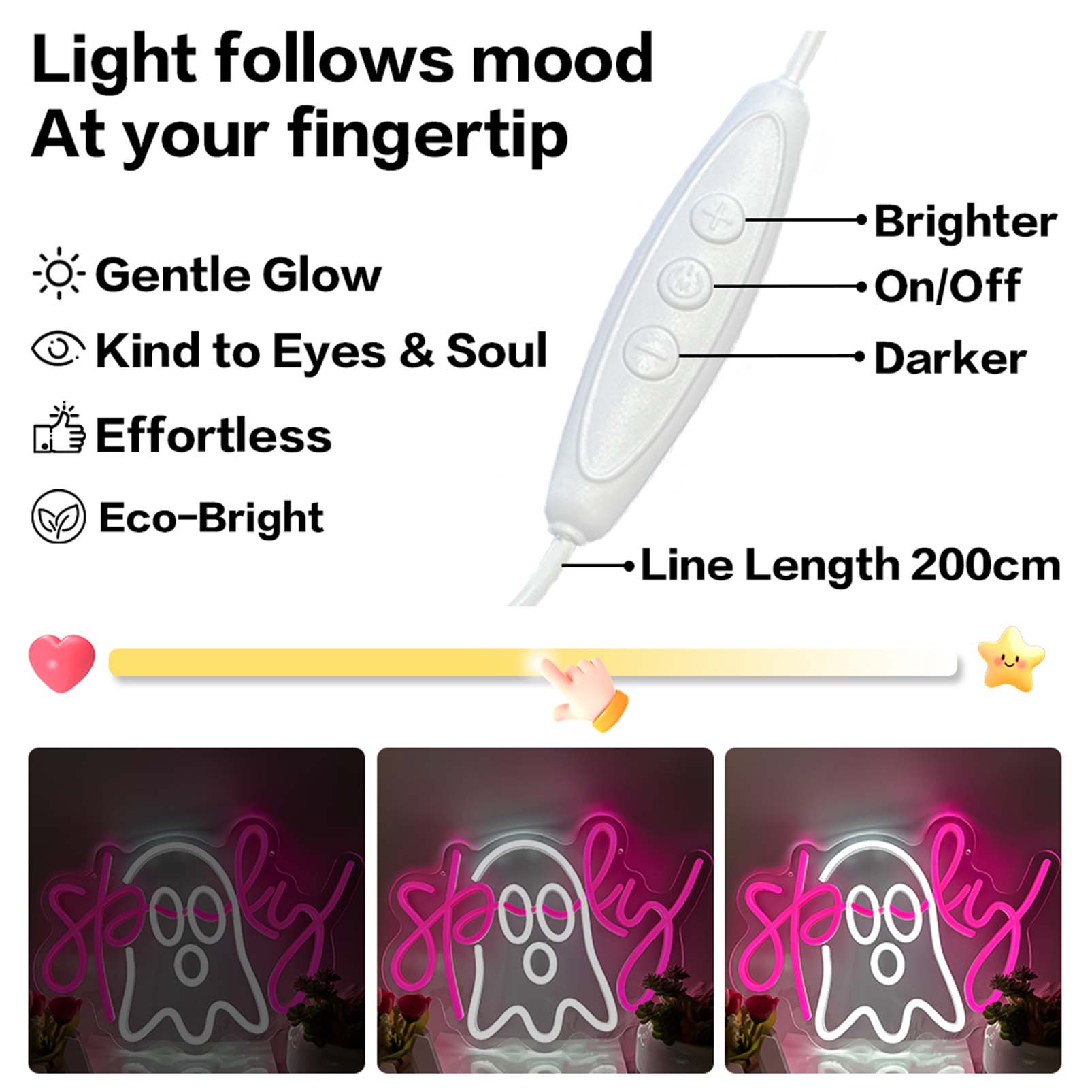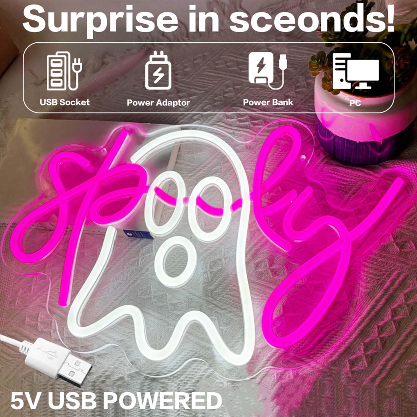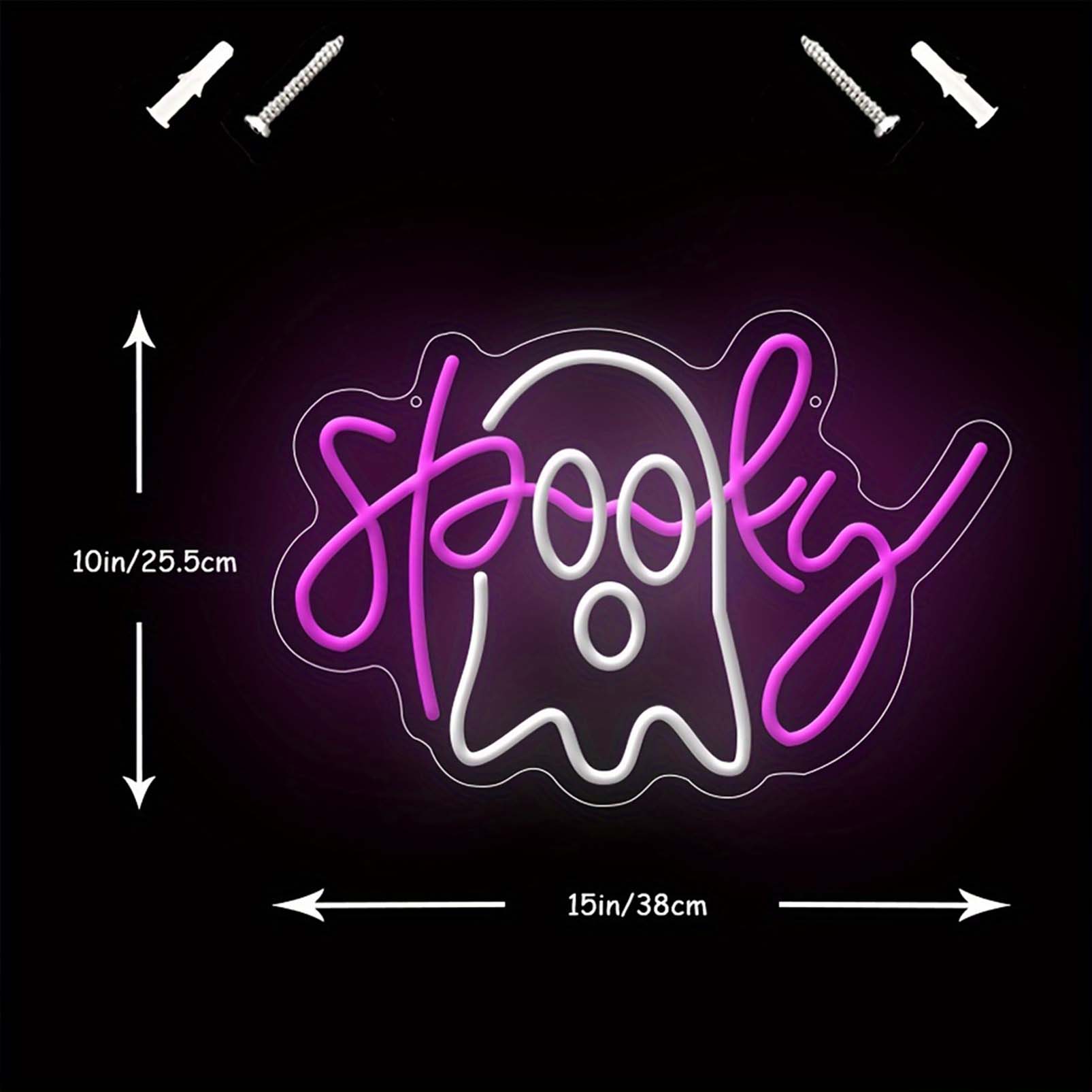 1 pc Ghost Boo Halloween Wall Neon Decoration, Dimmable LED Halloween Ambiance Wall Decoration Neon Sign, great for Halloween parties, bedrooms, birthday parties, bars, shops, game rooms, clubs, rooms, friends party wall decorations, as a first choice for friends and family birthday and Halloween gifts, USB powered illuminated sign hanging device, 5V USB power supply