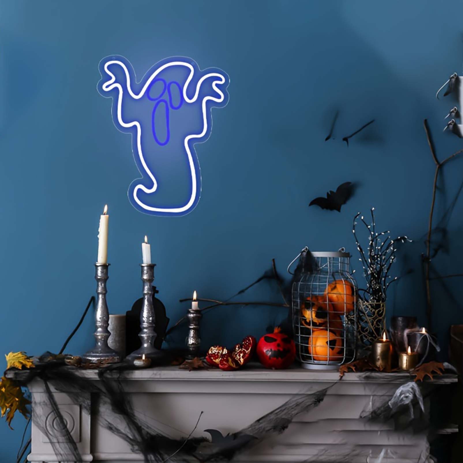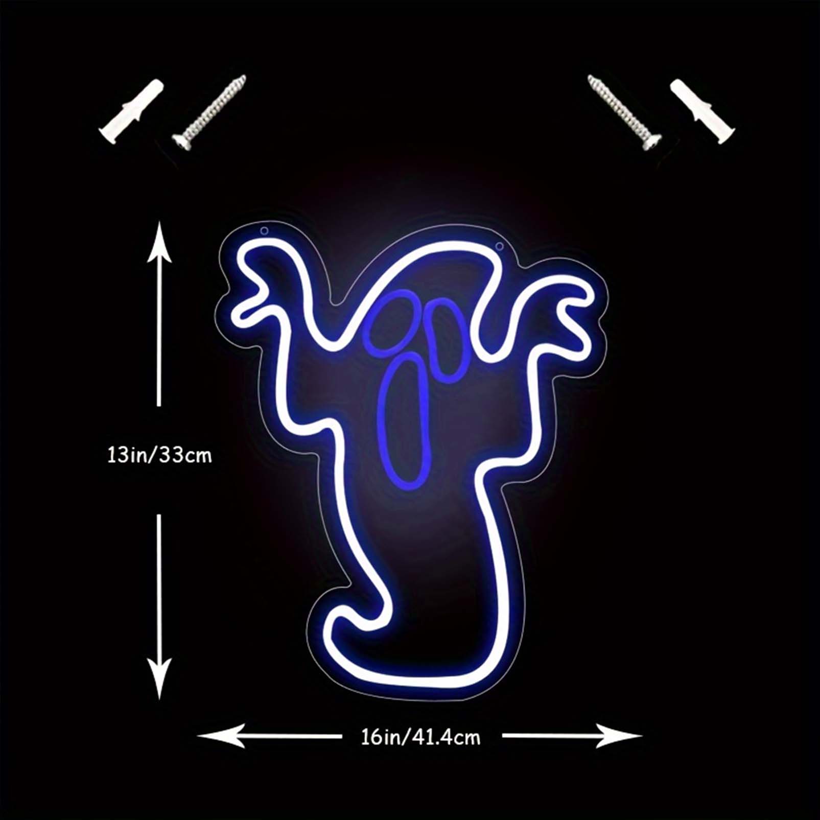 1 pc Ghost Halloween Wall Neon Decoration, Dimmable LED Halloween Ambiance Wall Decoration Neon Sign, great for Halloween parties, bedrooms, birthday parties, bars, shops, game rooms, clubs, rooms, friends party wall decorations, as a first choice for friends and family birthday and Halloween gifts, USB powered illuminated sign hanging device, 5V USB power supply