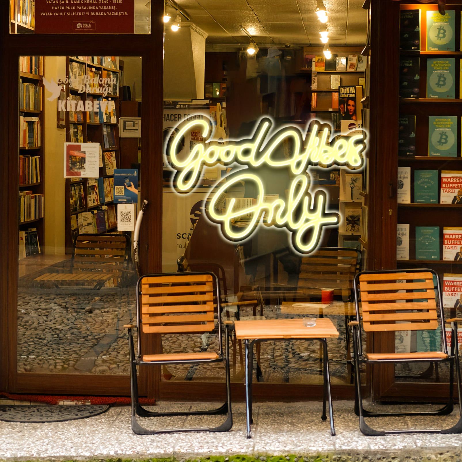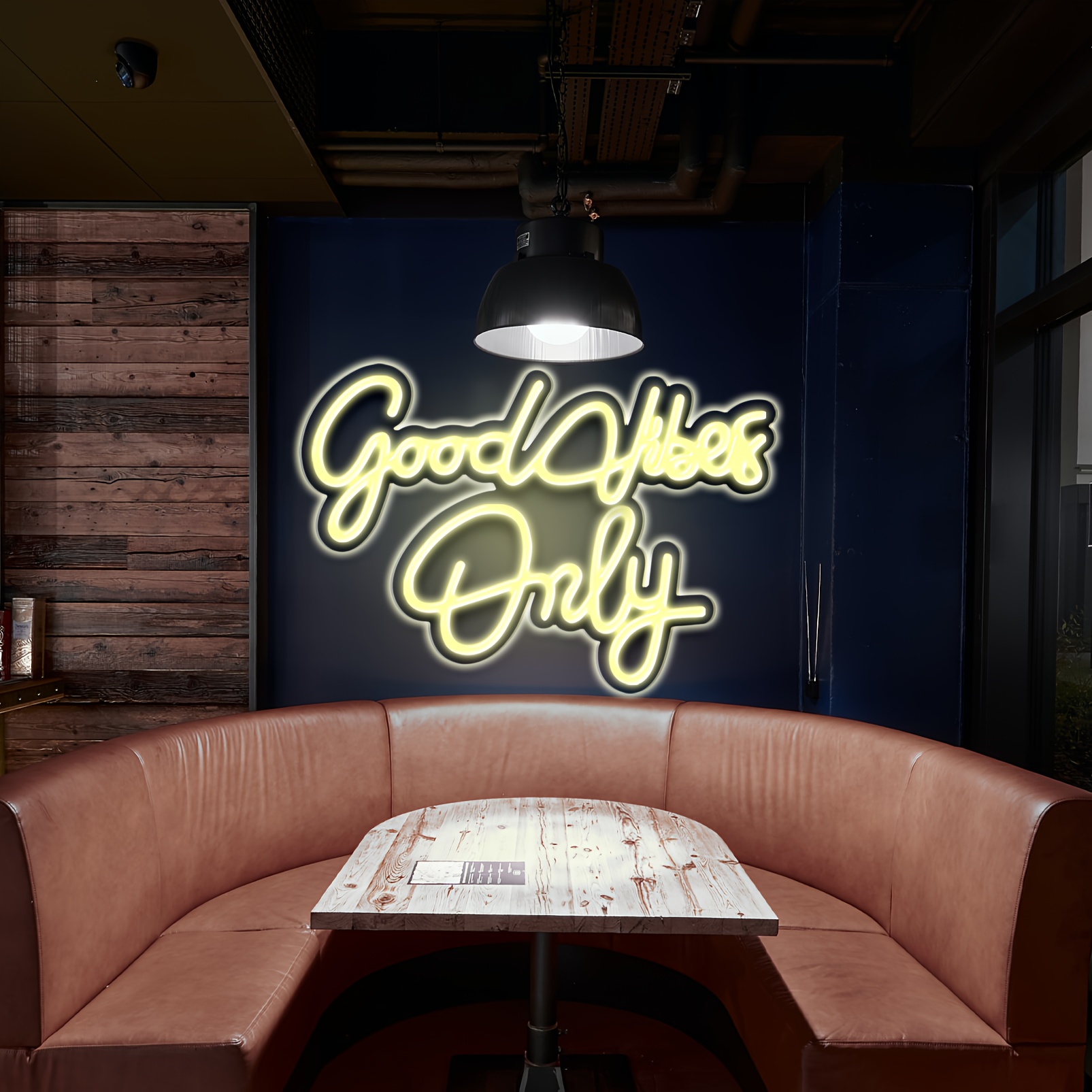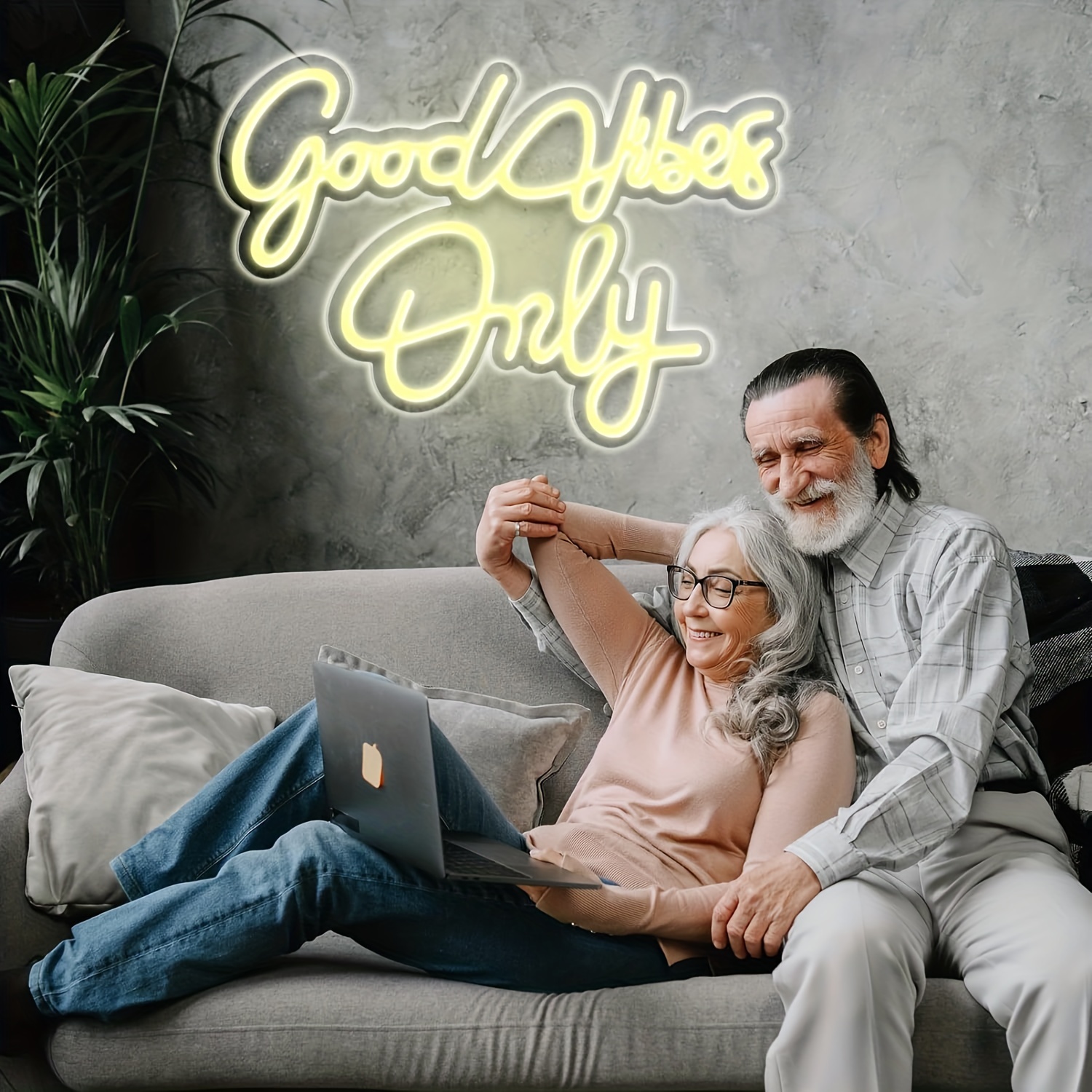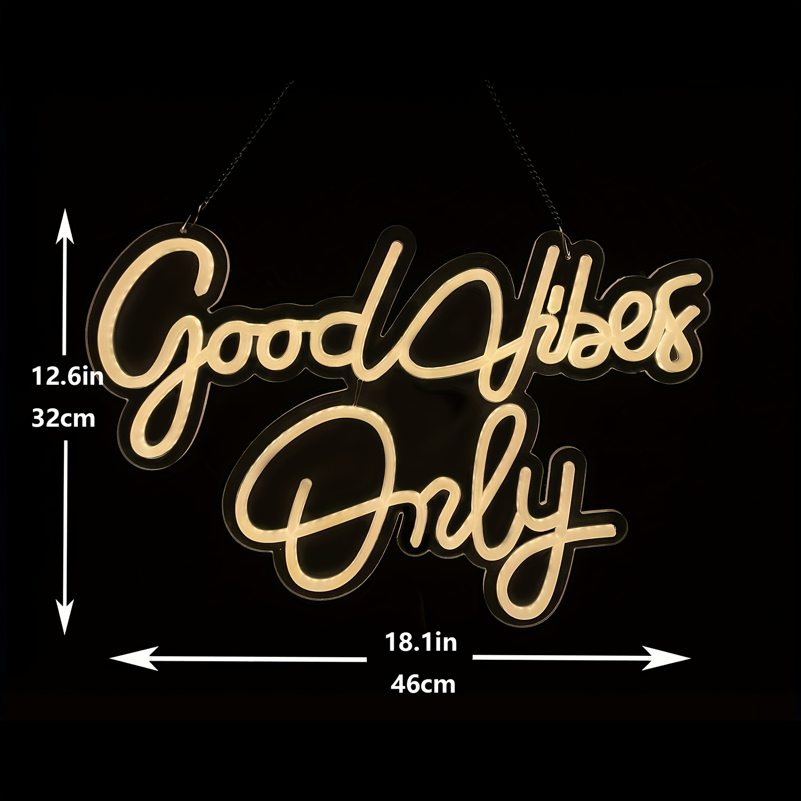 1 pc Good Vibes Only LED Neon Sign, Atmosphere Wall Decor Neon Sign, Suitable for Parties, Offices, Gyms, Game Rooms, Homes, Clubs, Living Rooms, Bars, Bedrooms, and Home Wall Decor.The Perfect Gift Choice for Friends’ and Family’s Birthdays and Holidays. USB-Powered Illuminated Sign Hanging Kit, 5V USB Power Supply.