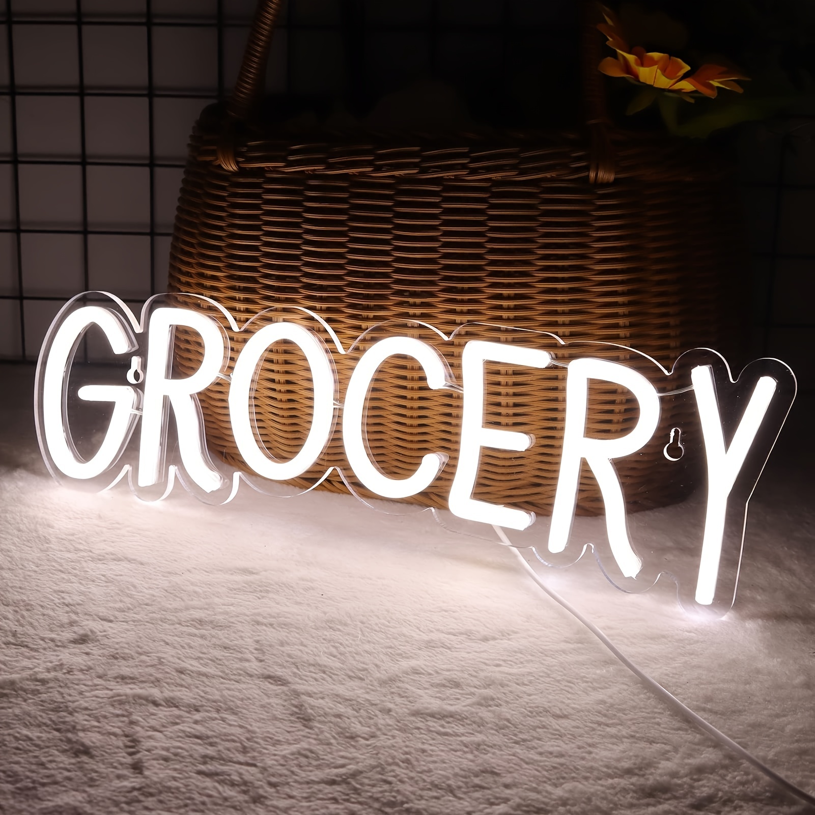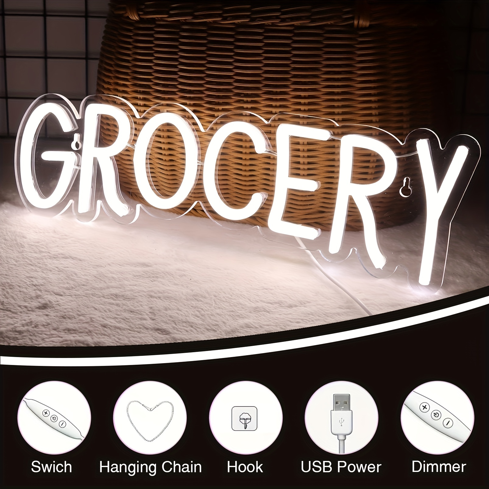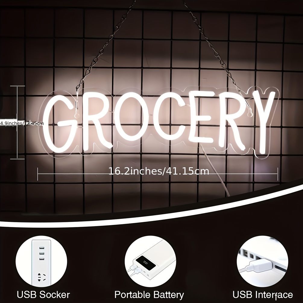 1 pc Grocery LED Neon Sign, Commercial Ambiance Wall Decor Neon Sign for Shops, Grocery Stores, Shops, Store and Home Wall Decor, Preferred as Gifts for Friends and Family, USB Powered Illuminated Sign Hanging Unit, 5V USB Power Supply
