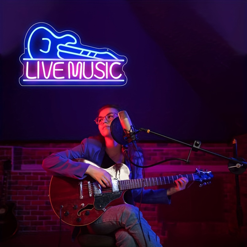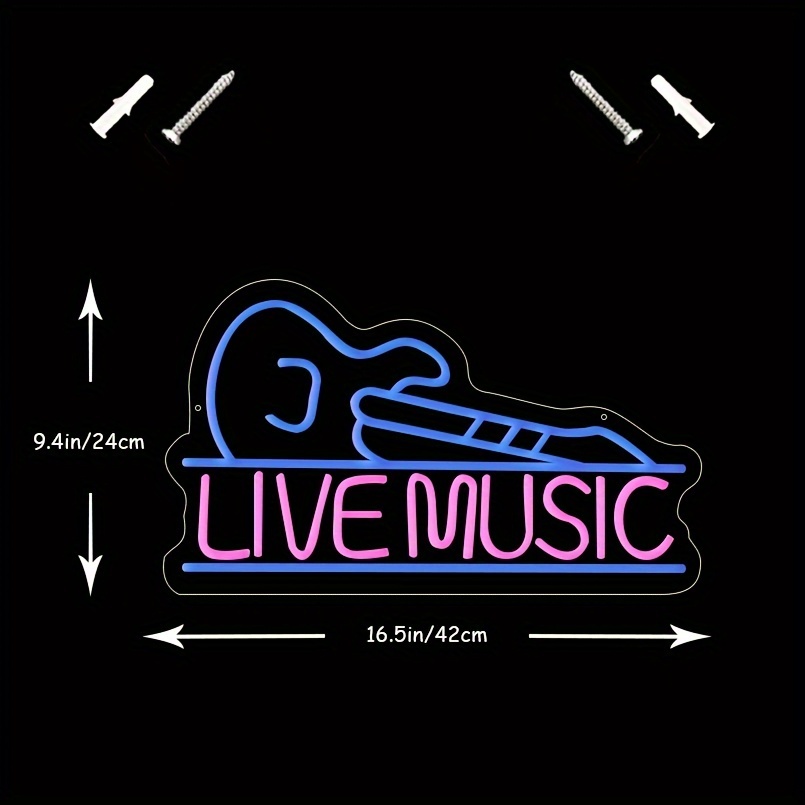 1 pc Guitar LED neon sign, commercial ambience wall decoration neon sign for shops, music parties, living rooms, pubs, clubs, hotels, games rooms, as birthday, music lover gifts, bedroom and home wall decoration, USB powered illuminated sign hanging unit, 5V USB power supply