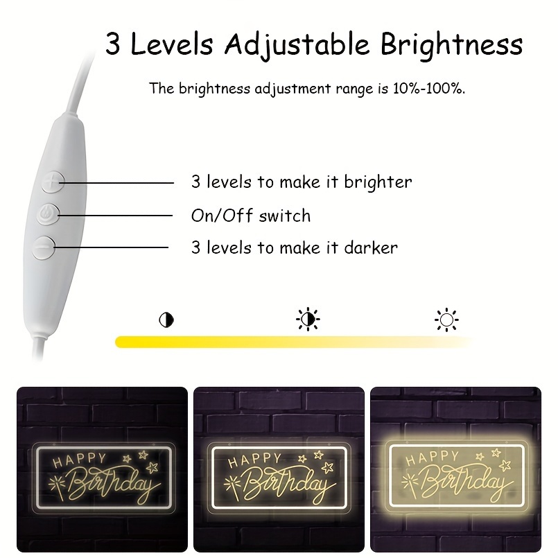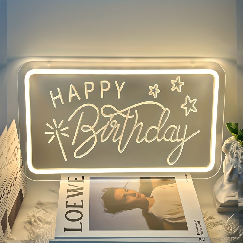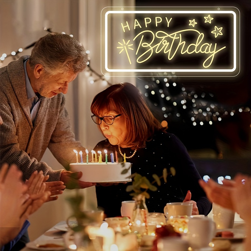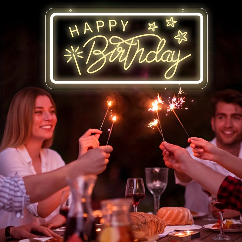 1 pc Happy Birthday LED neon sign, 3D engraved ambient wall decorative neon sign for birthday party, office, game room, home, club, living room, bar, bedroom and home wall decorations, as a first choice for friends’ and family’s birthday and holiday gifts, USB powered illuminated sign hanging device, 5V USB power supply