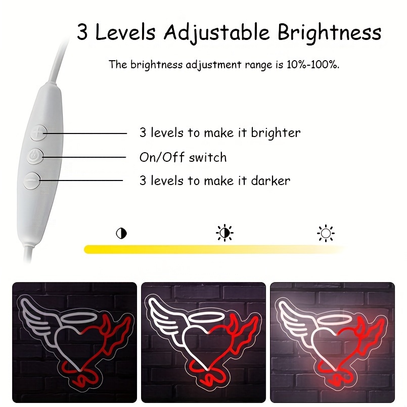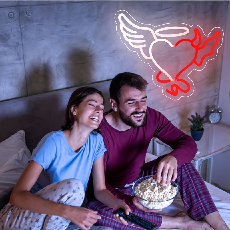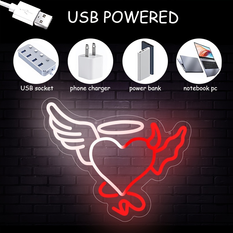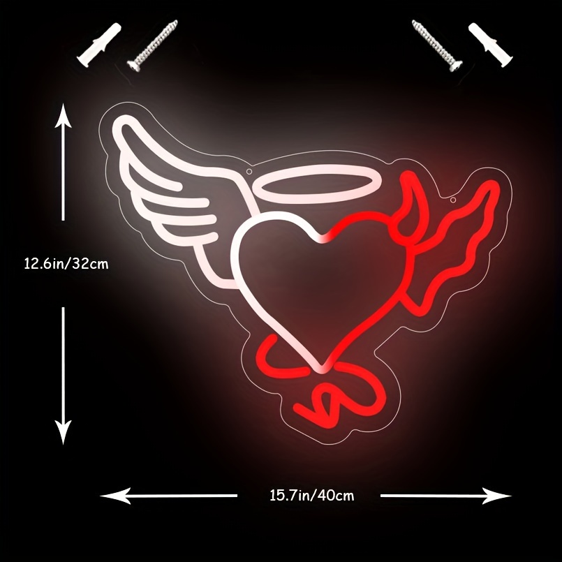 1 pc Heart Angel Devil LED neon sign, ambient wall decoration neon sign for home, party, living room, bar, club, game room, as a birthday, holiday gift, bedroom and home wall decoration, USB powered illuminated sign hanging unit, 5V USB power supply