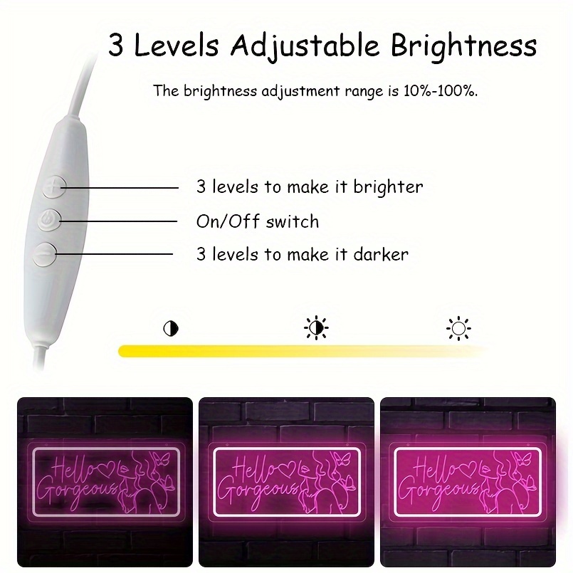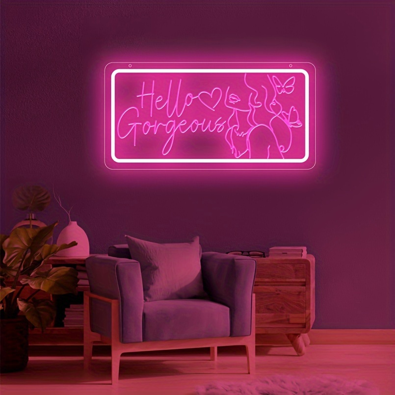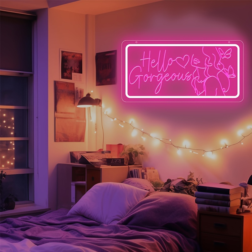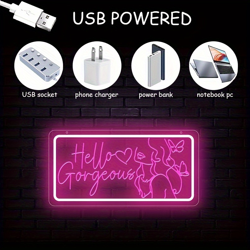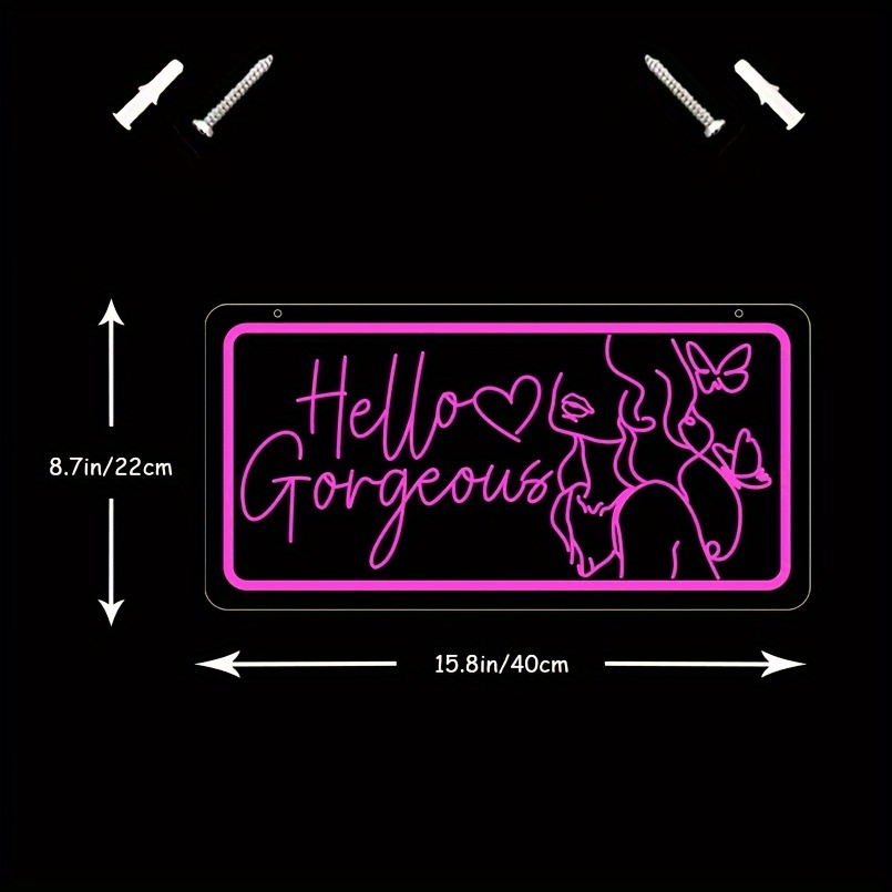 1 pc Hello Gorgeous LED neon sign, 3D engraving, ambient wall decoration neon sign for dressing room, wedding, bachelorette party, office, home, club, living room, bedroom and home wall decoration, preferred choice for friends and family birthday and holiday gifts, USB powered light up sign hanging device, 5V USB power supply