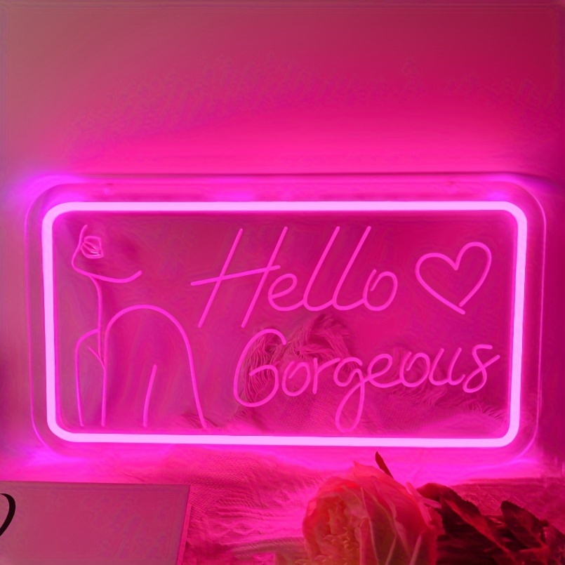 1 pc Hello Gorgeous LED Neon Sign, 3D Engraving, Ambient Wall Decoration Neon Sign for Wedding, Bar, Theme Party, Office, Home, Club, Living Room, Bedroom and Home Wall Decoration, Preferred as Birthday and Holiday Gift for Friends and Family, USB Powered Illuminated Sign Hanging Unit, 5V USB Power Supply