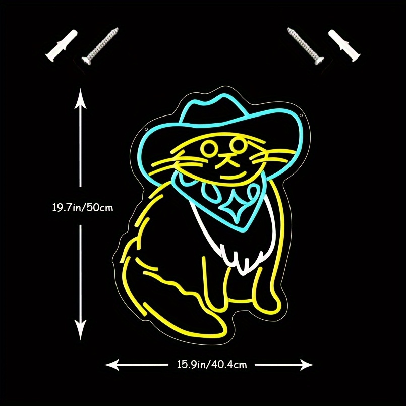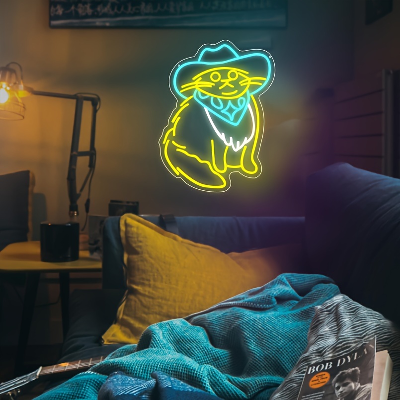 1 pc Ice Blue Cowboy Cat LED Neon Sign, Wall Decorative Neon Sign for Home, Party, Living Room, Game Room, Children’s Living Room, Birthday Christmas Gift, Bedroom and Home Wall Decorative Neon Sign, 5 V USB Power Supply