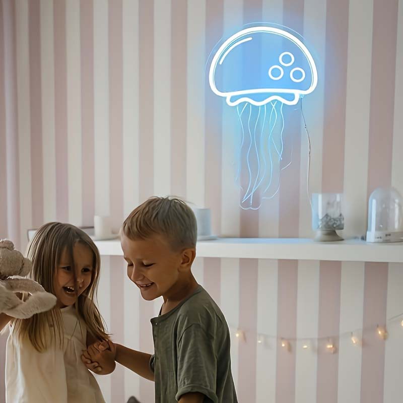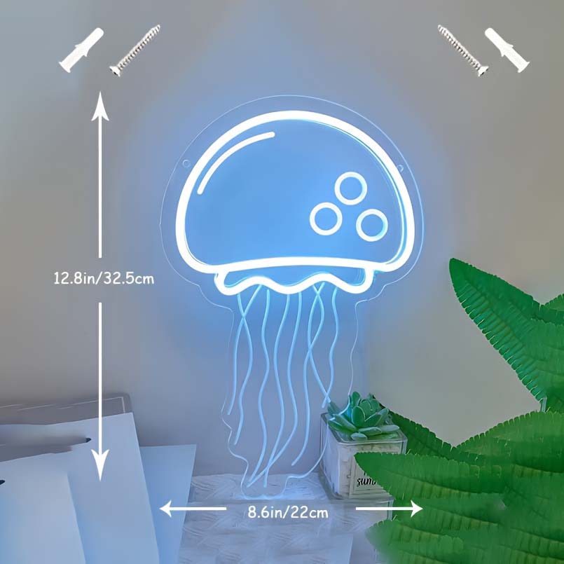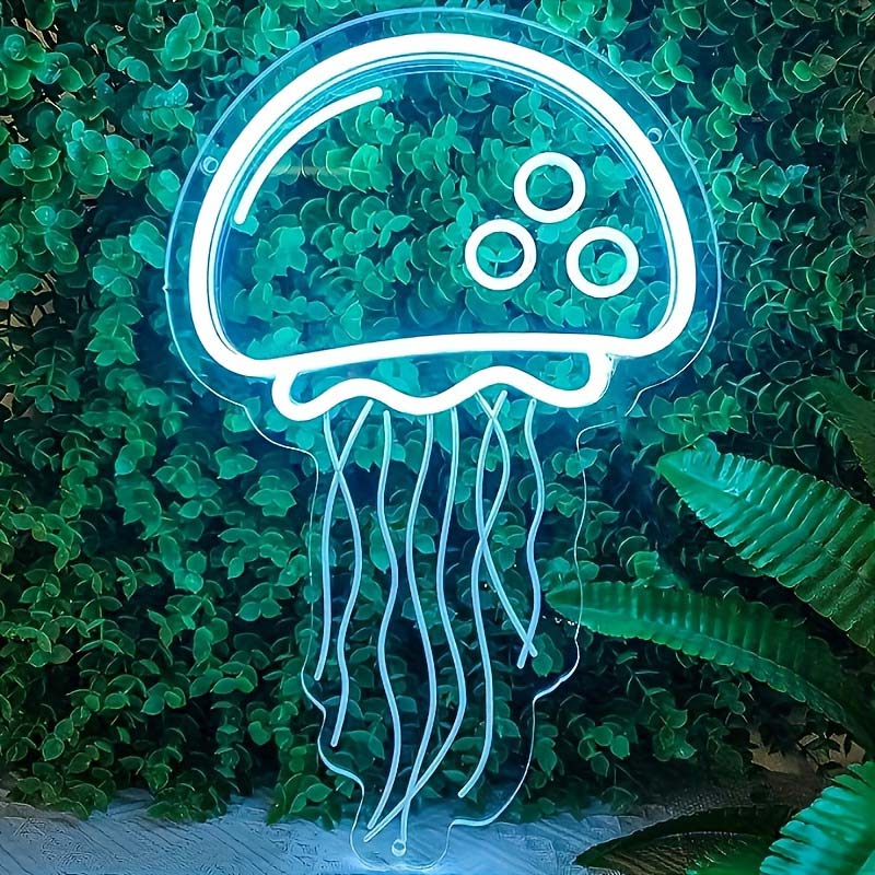 1 pc Ice Blue Jellyfish LED Neon Sign, 3D Engraving, Ambient Wall Decoration Neon Sign for Bars, Ocean Themed Parties, Offices, Homes, Clubs, Living Rooms, Bedrooms and Home Wall Decorations, Preferred as Birthday and Holiday Gifts for Friends and Family, USB Powered Illuminated Sign Hanging Unit, 5V USB Power Supply