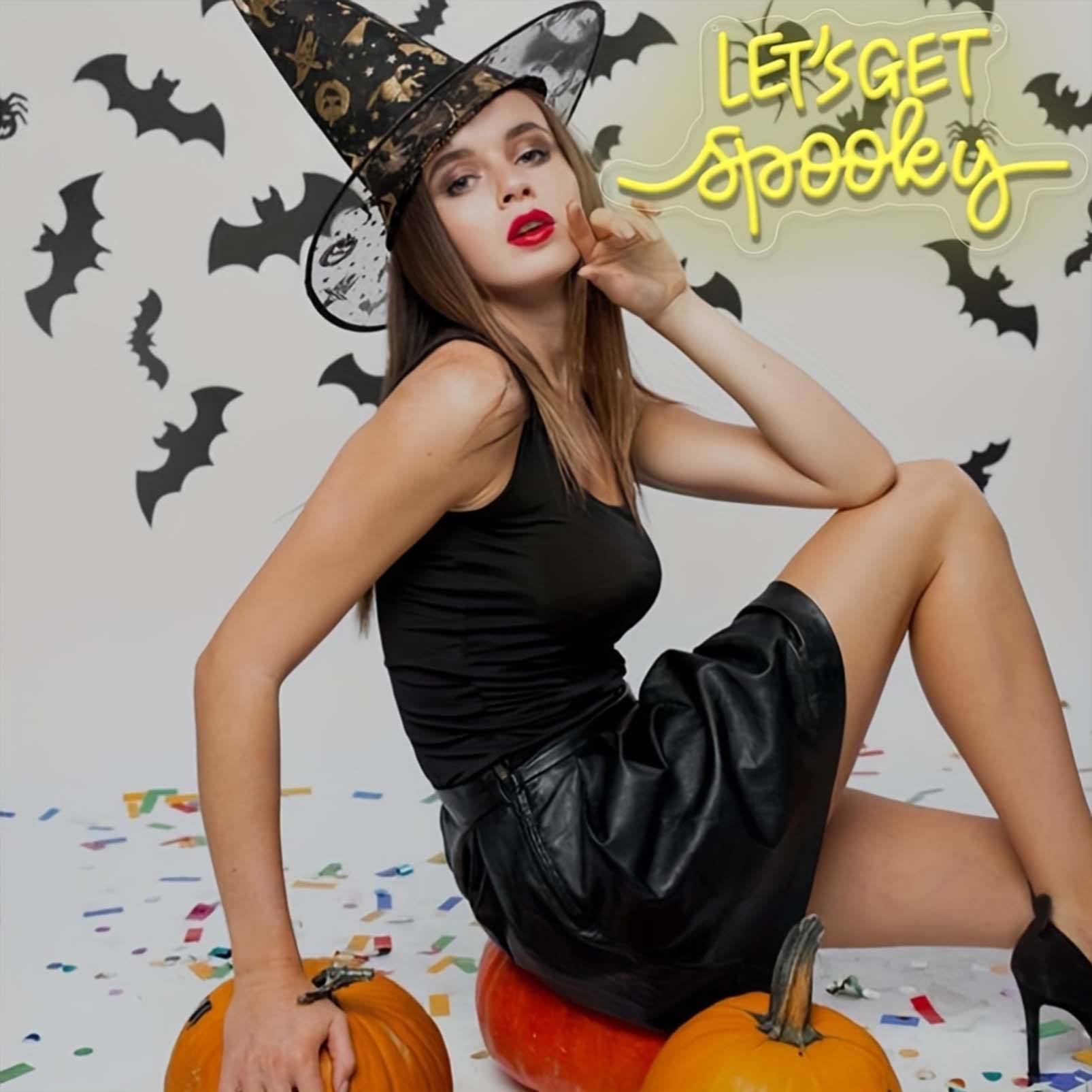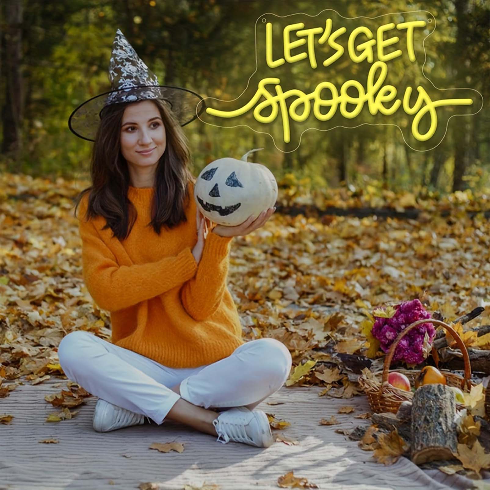 1 pc Let’s Get Spooky Witch Hat Halloween Wall Neon Decoration, Dimmable LED Halloween Ambiance Wall Decoration Neon Sign, Perfect for Halloween Party, Bedroom, Birthday Party, Bar, Shop, Game Room, Club, Room, Friends Gathering Wall Decorations, Preferred for Friends and Family’s Birthdays and Halloween Gifts, USB Powered Illuminated Sign Hanging Unit, 5V USB Power Supply