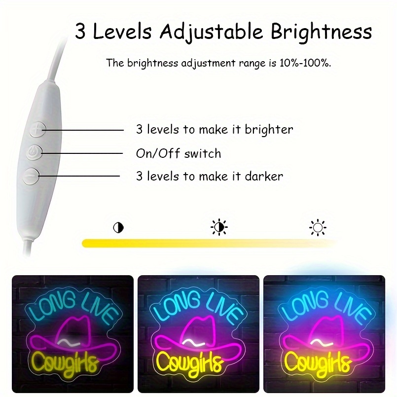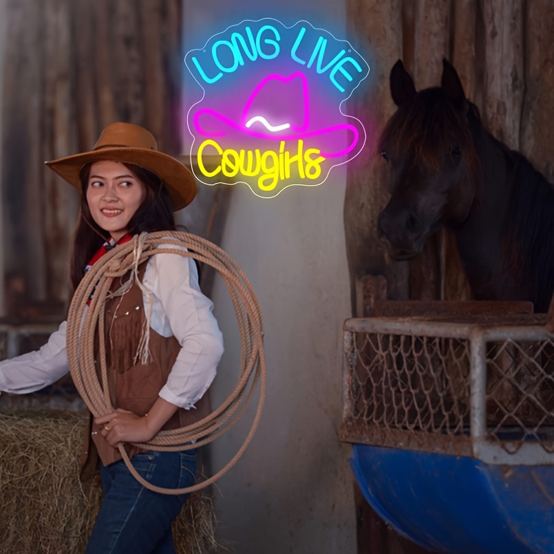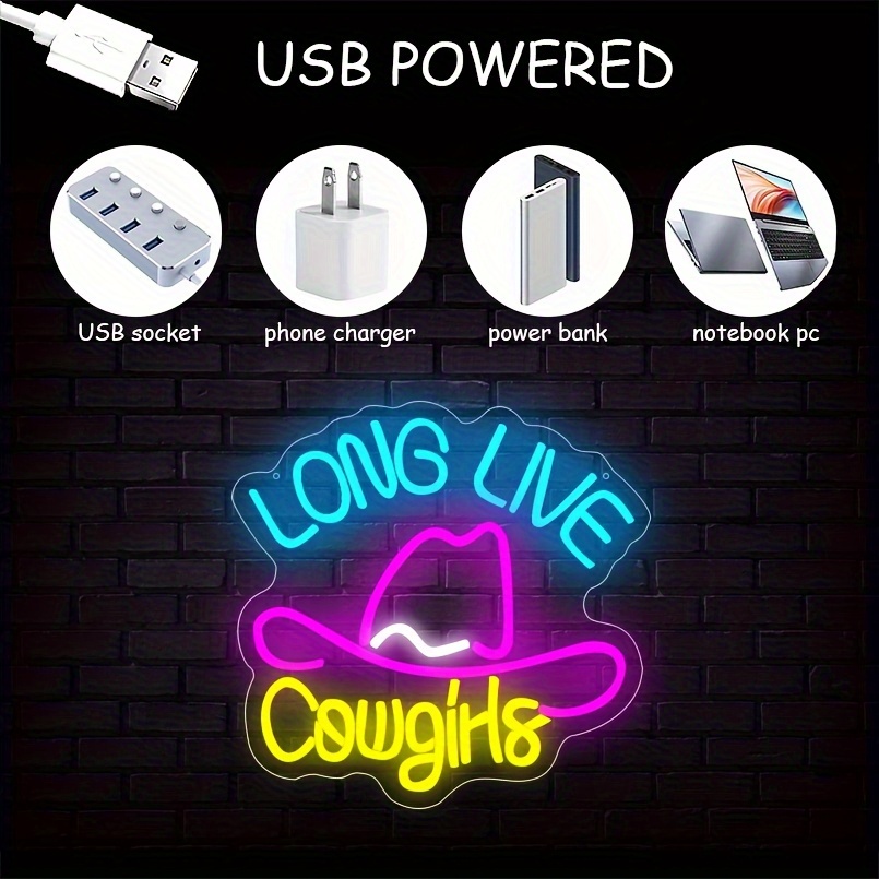 1 pc Long Live Cowgirls LED Neon Sign, Ambient Wall Decoration Neon Sign for Theme Parties, Offices, Game Rooms, Restaurants, Families, Clubs, Living Rooms, Bars, Bedrooms and Home Wall Decorations, Preferred as Birthday and Holiday Gifts for Friends and Family, USB Powered Illuminated Sign Hanging Unit, 5V USB Power Supply