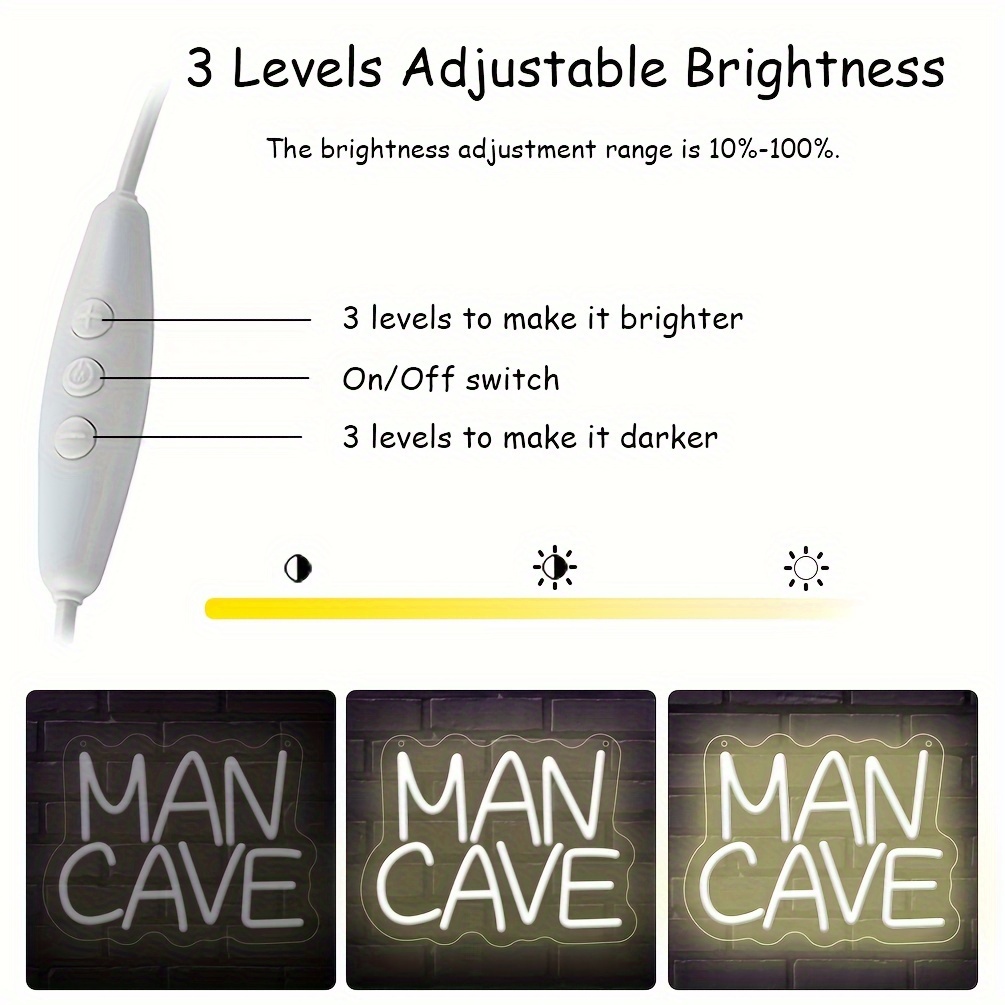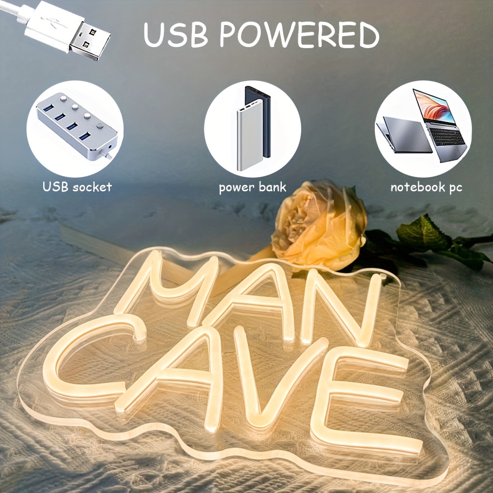 1 pc Man Cave Neon Sign Warm White Neon Dimmable LED Sign, Great for Birthday Parties, Bedrooms, Beauty, Game Rooms, Bars, Shops, Rooms, Friends Gatherings Aesthetically Pleasing Neon Illuminated Wall Decor, 5V USB Power Supply