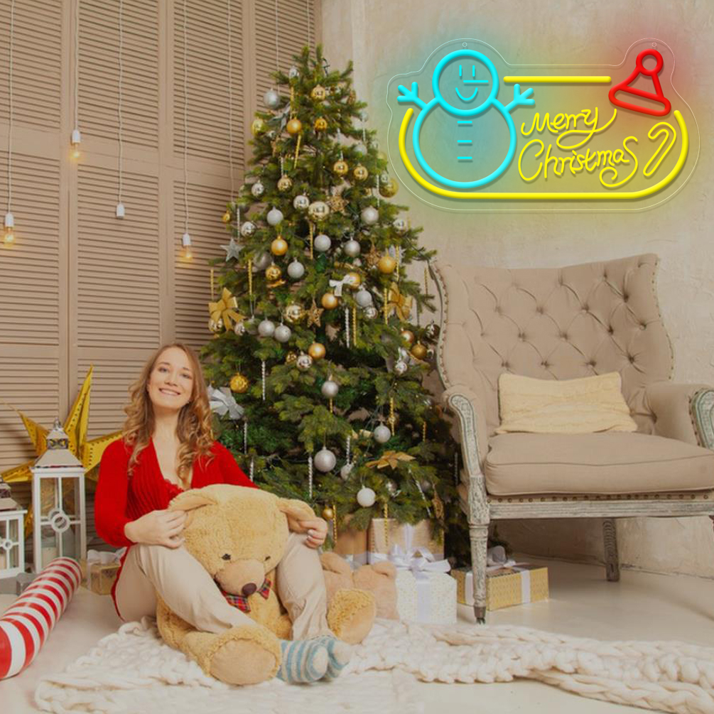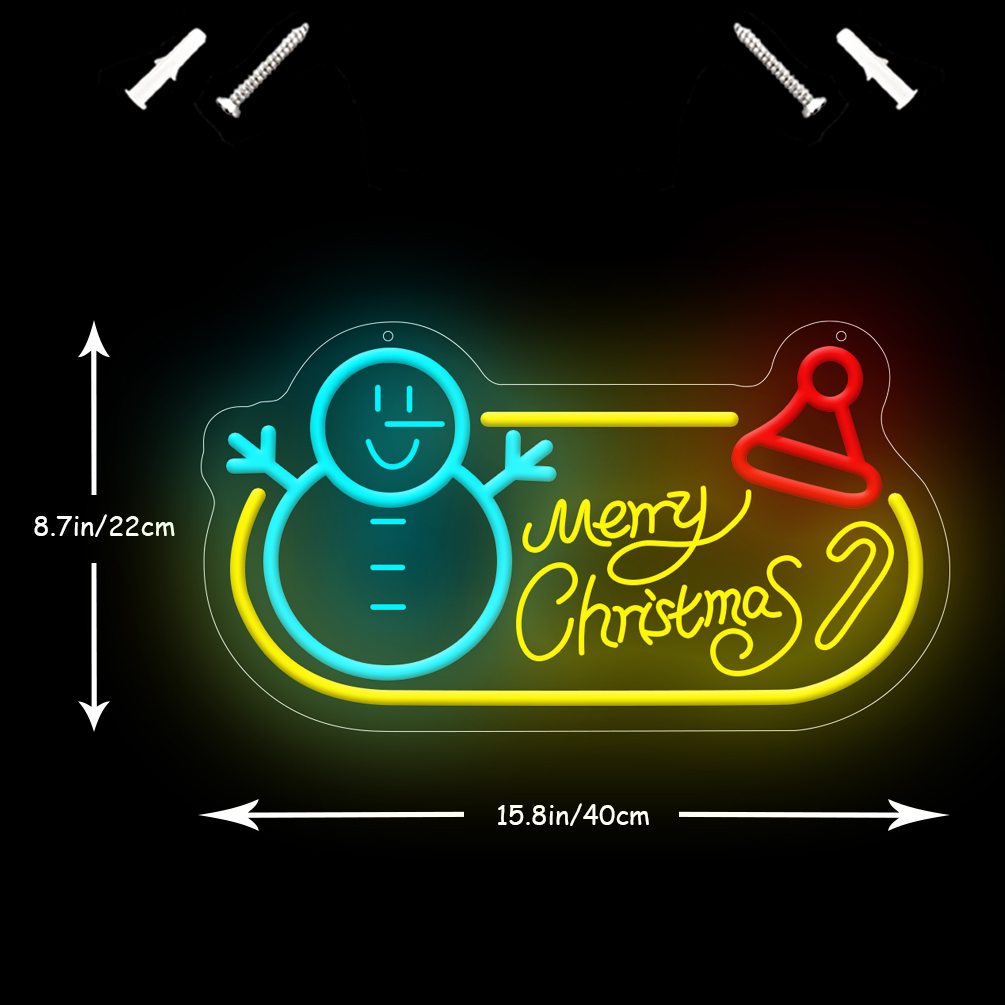 1 pc Merry Christmas Christmas Wall Neon Decoration, 3D Engraving, Snowman and Christmas Hat Dimmable LED Christmas Ambience Wall Decoration Neon Sign, perfect for Christmas parties, bedrooms, birthday parties, pubs, shops, games rooms, clubs, rooms, friends’ party wall decorations, as a friend’s family birthday, Christmas gift preferred, USB powered light up Sign hanging device, 5V USB power supply