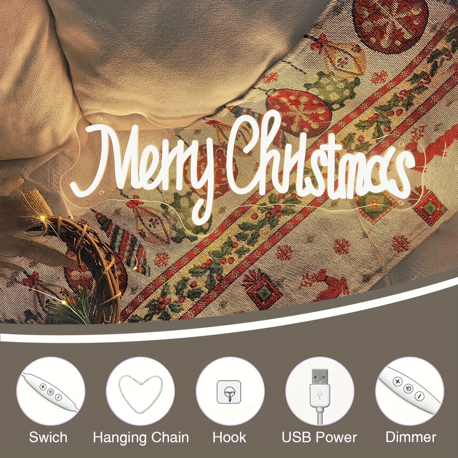 1 pc Merry Christmas Wall Neon Decoration, Dimmable LED Christmas Ambiance Wall Decoration Neon Sign, perfect for Christmas parties, bedrooms, birthday parties, pubs, shops, games rooms, clubs, rooms, friends party wall decorations, as a friend’s family birthday, Christmas gift preferred, USB powered light up sign hanging unit, 5V USB power supply